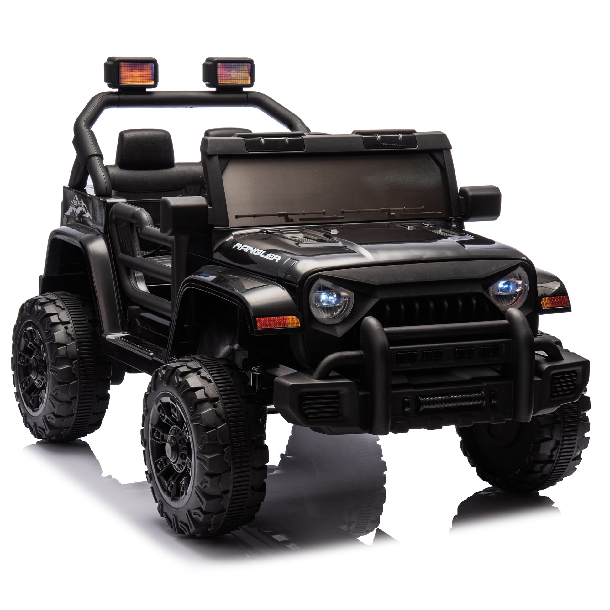 12V Kids Ride On Electric Car W Parents Control,Dual Drive, Four Wheel Suspension,With Music,Bluetooth,Mp3,Usb,With Headlights, Steering Wheel Quick Release,Slow Start For Kids Aged 3 4. Black 50 99 Lbs Polypropylene