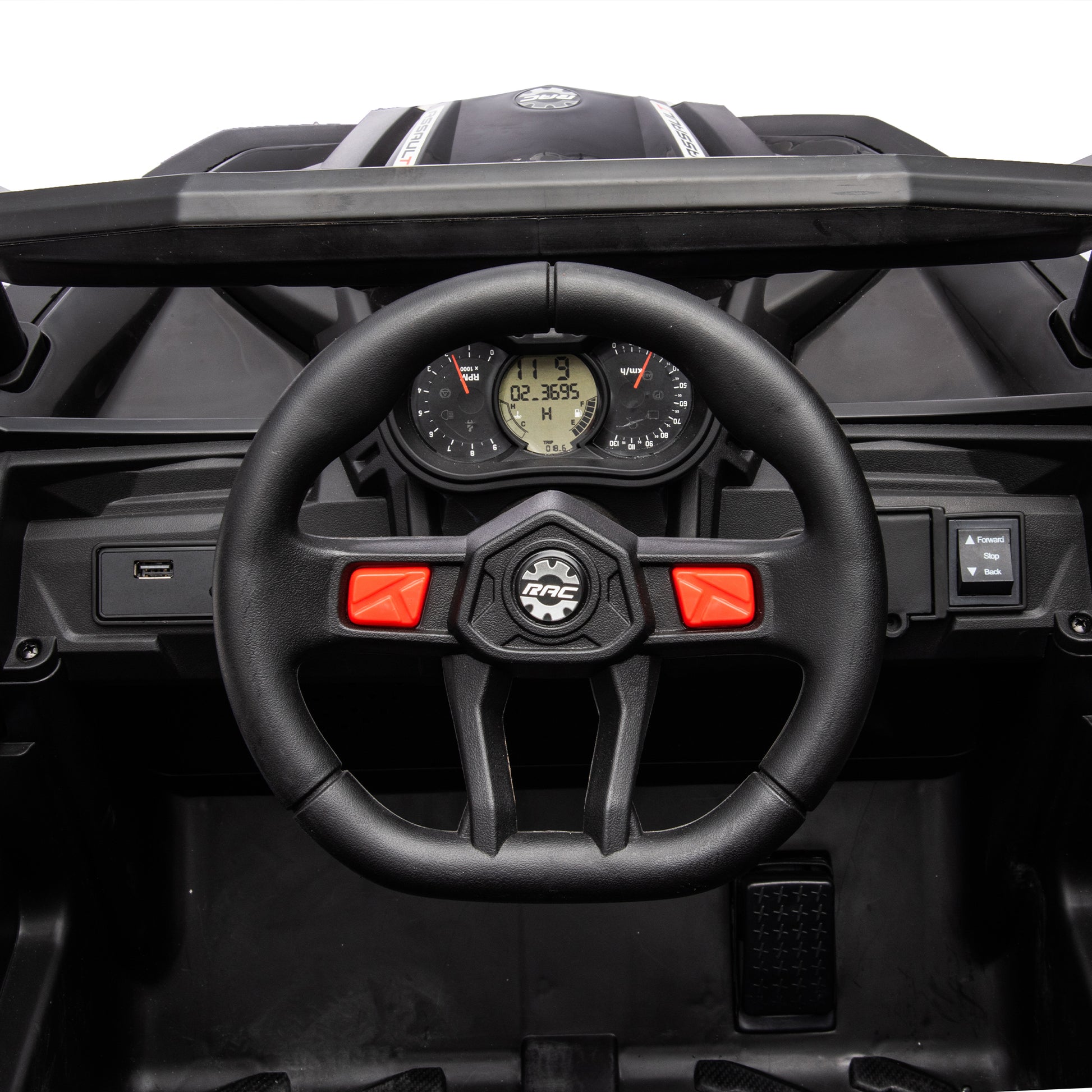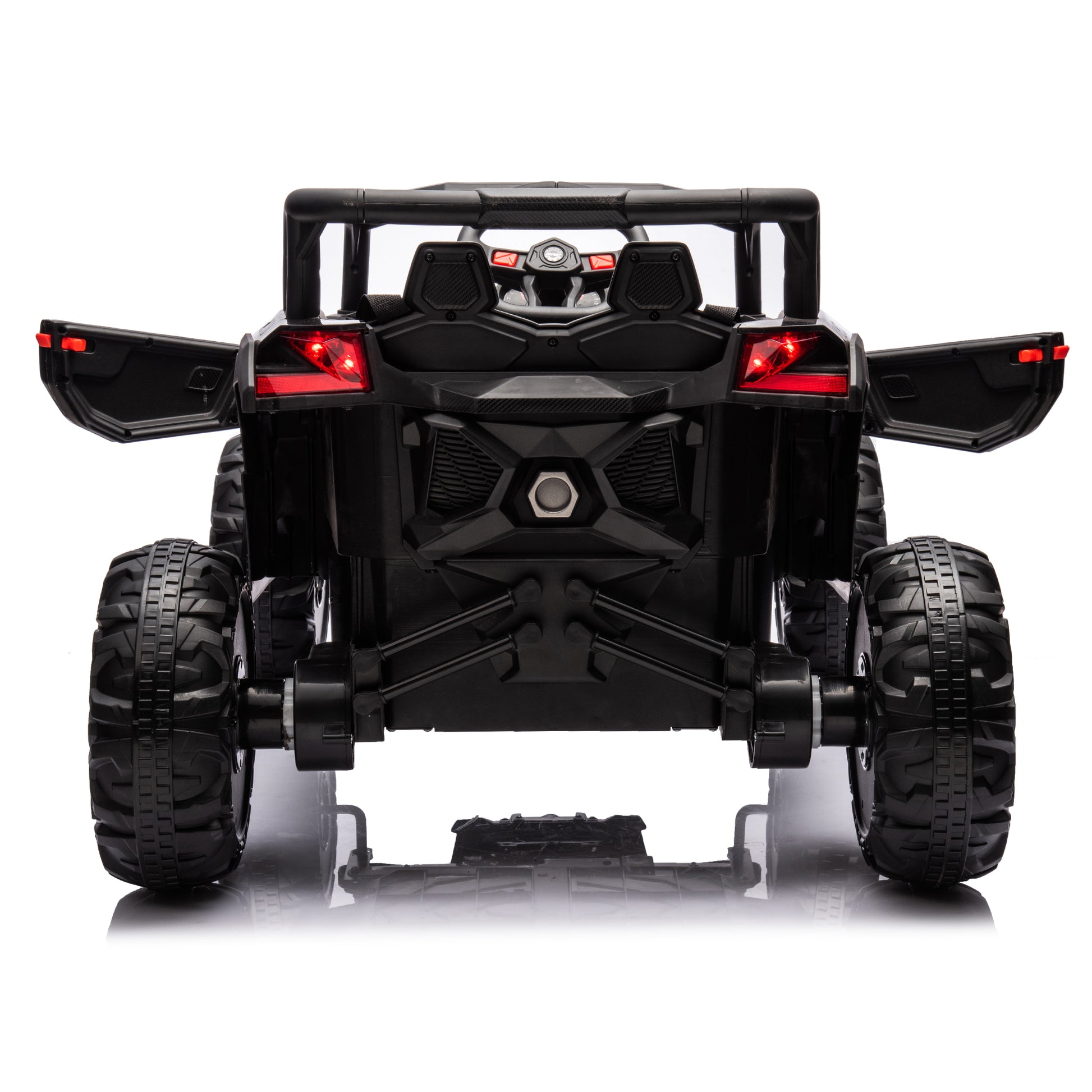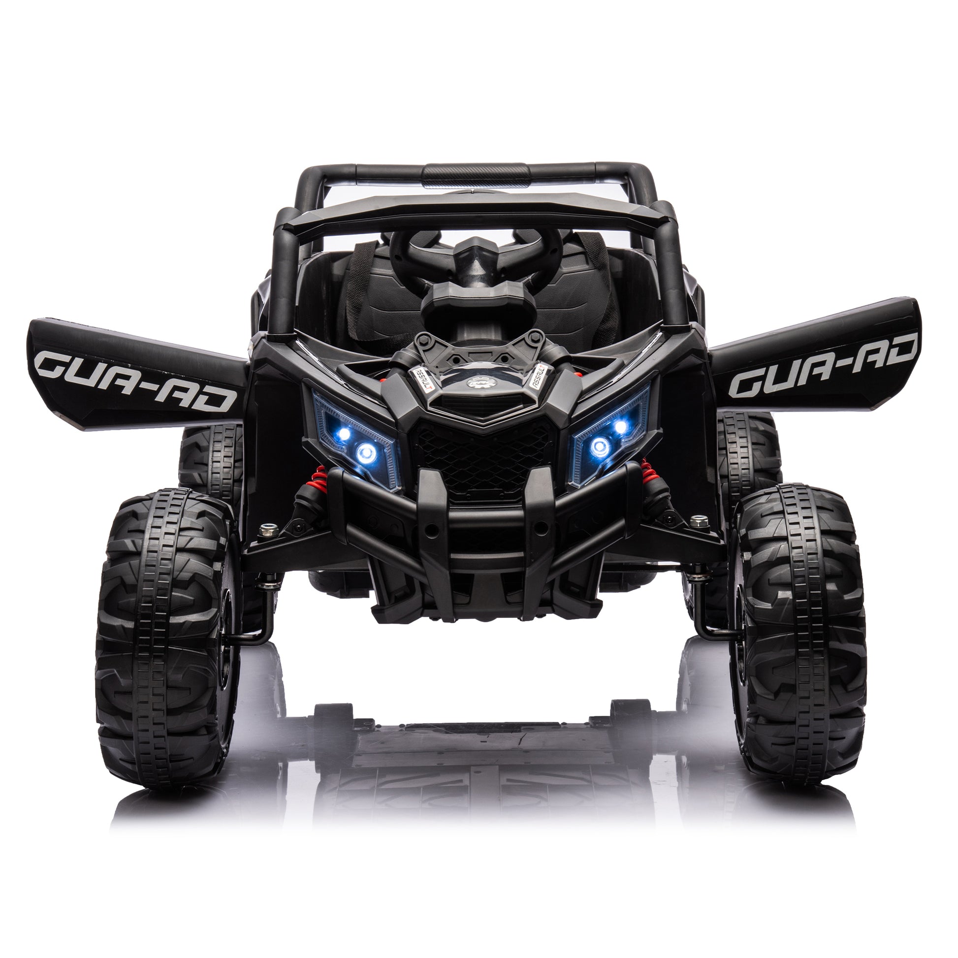 12V Ride On Car With Remote Control,Utv Ride On For Kid,3 Point Safety Harness, Music Player Usb Port Volume Knob Battery Indicator , Led Lights, High Low Speed Switch Off Road Adventure For Kids Black Polypropylene