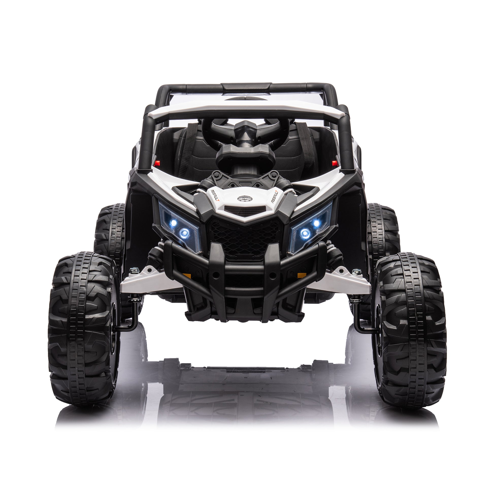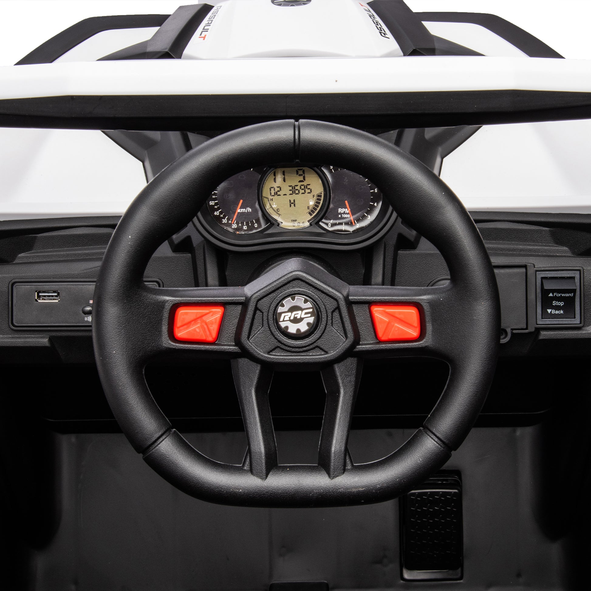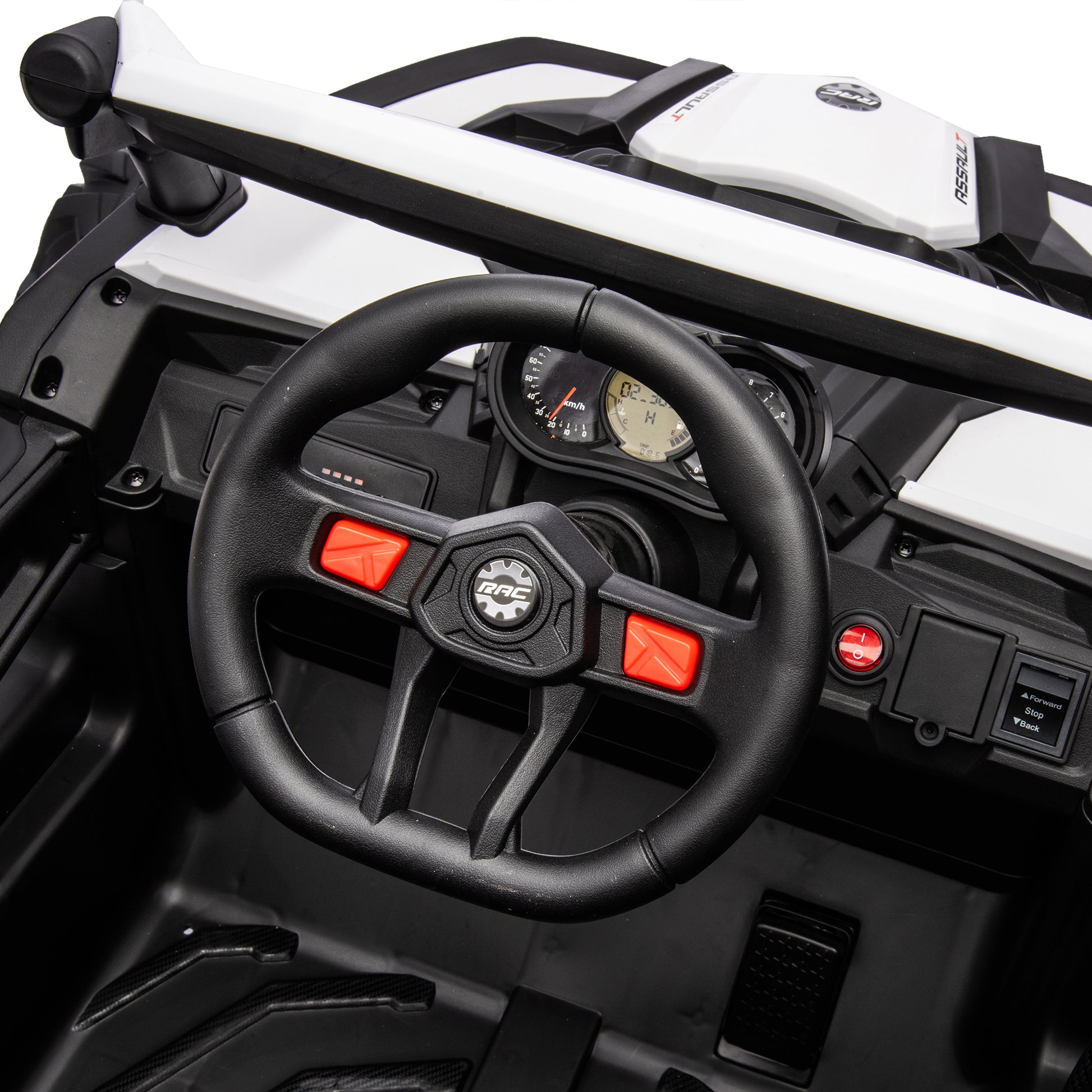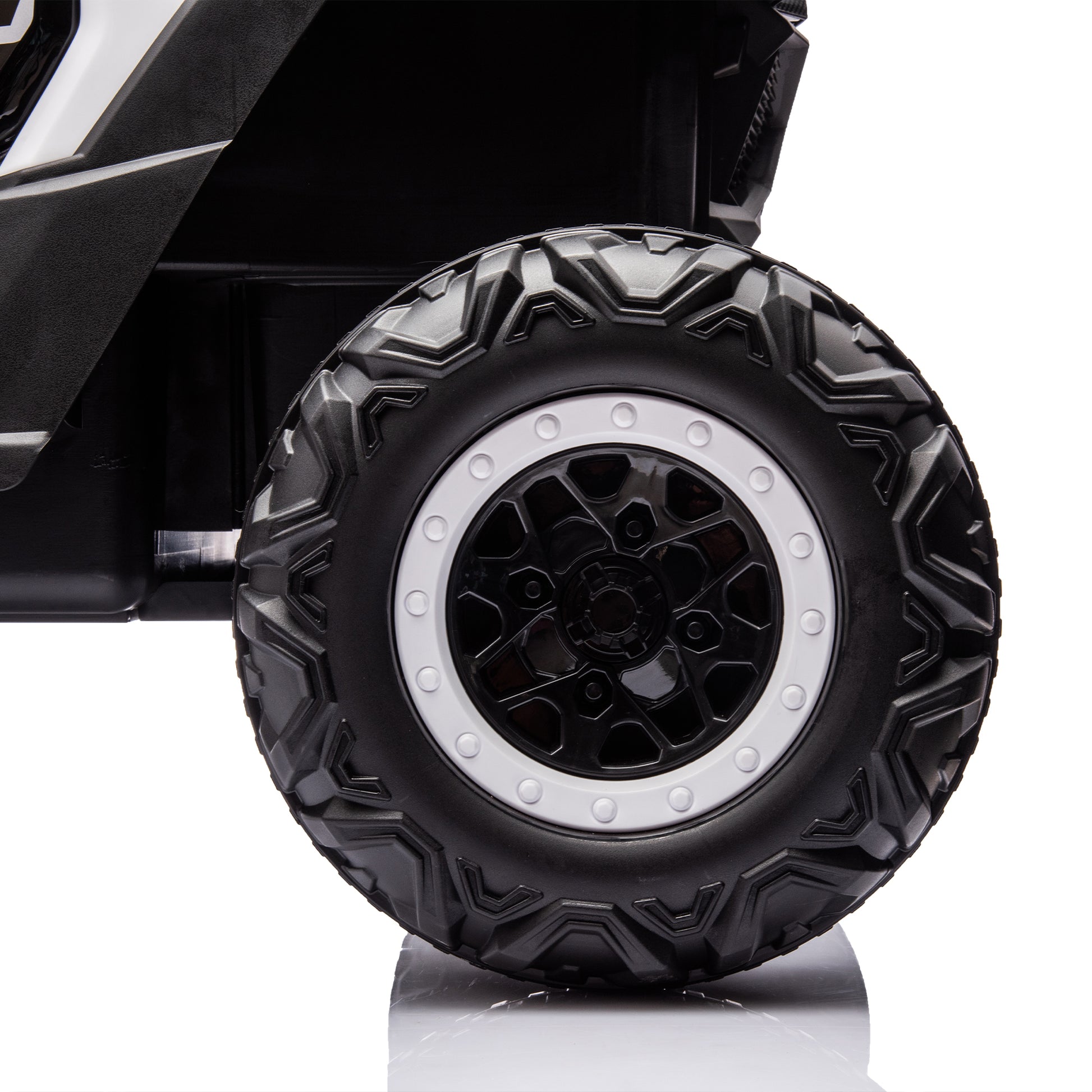 12V Ride On Car With Remote Control,Utv Ride On For Kid,3 Point Safety Harness, Music Player Usb Port Volume Knob Battery Indicator , Led Lights, High Low Speed Switch Off Road Adventure For Kids White Polypropylene