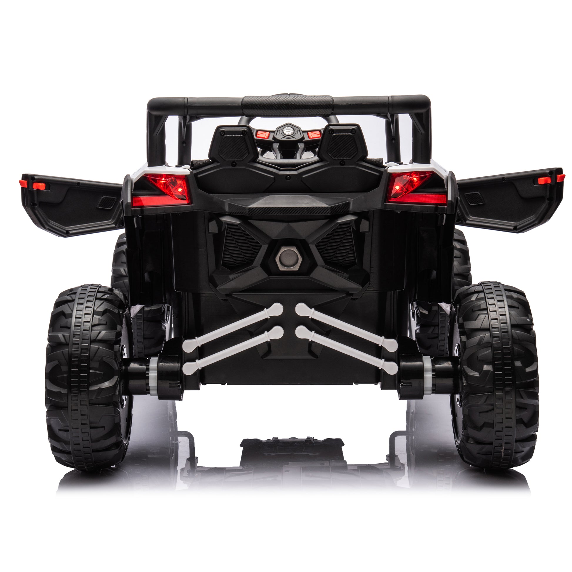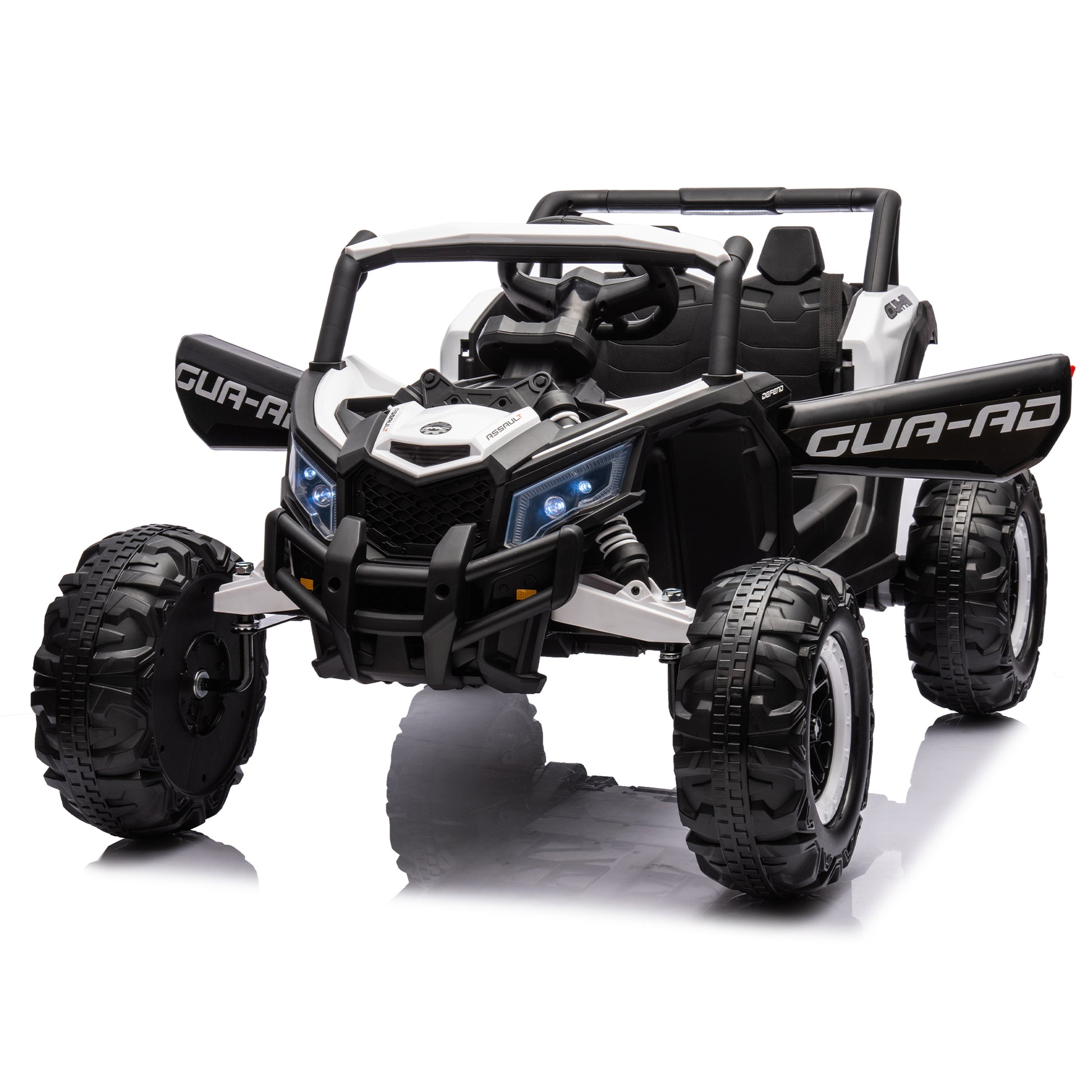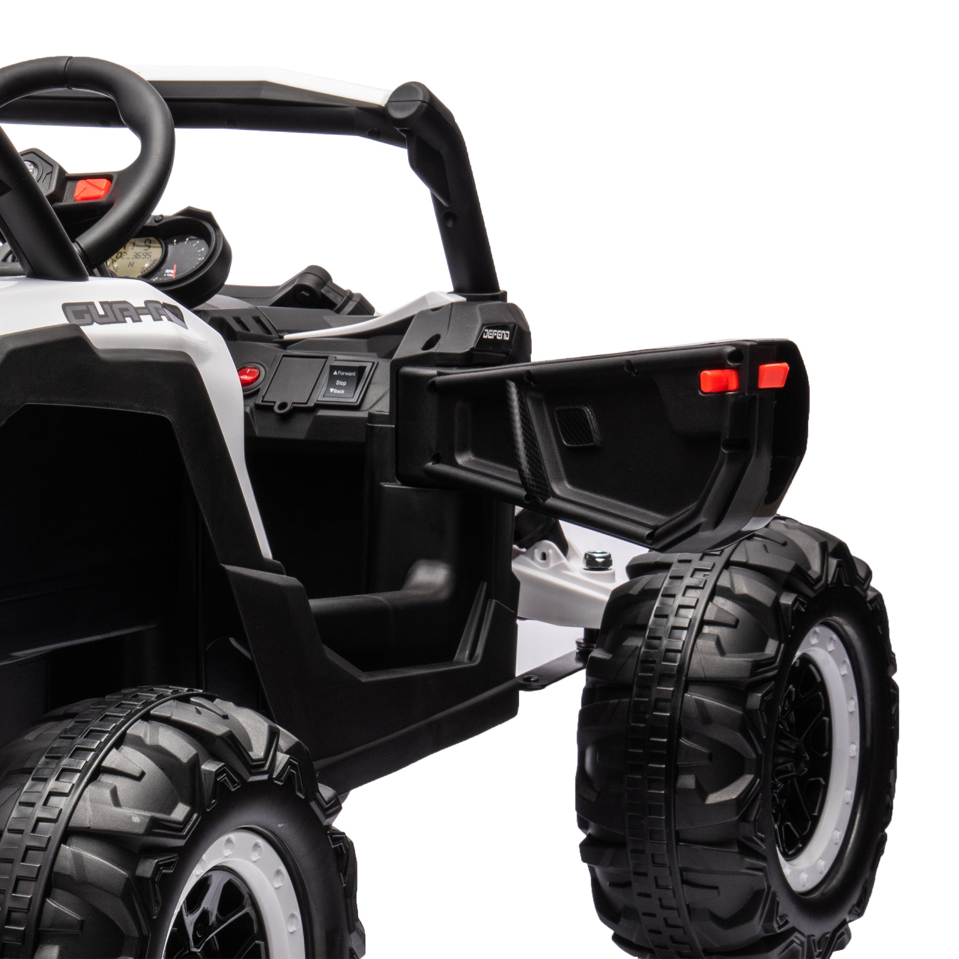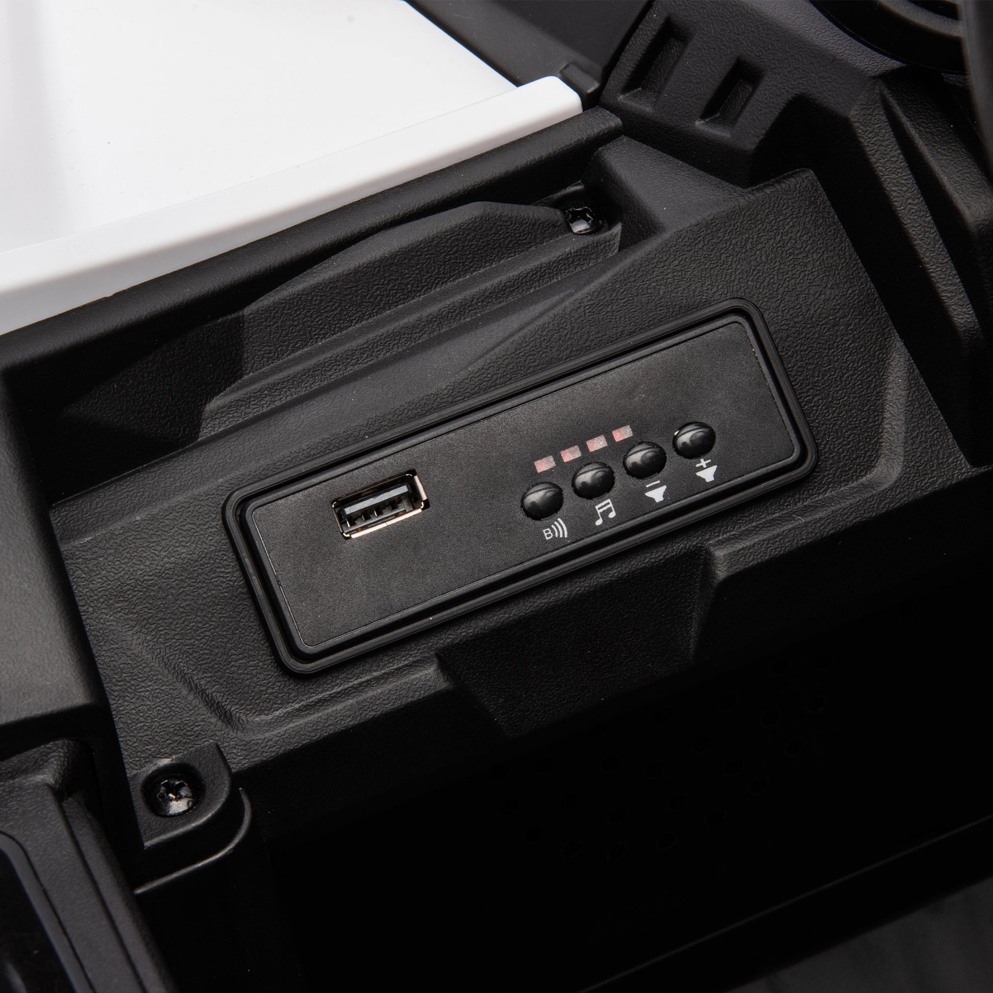 12V Ride On Car With Remote Control,Utv Ride On For Kid,3 Point Safety Harness, Music Player Usb Port Volume Knob Battery Indicator , Led Lights, High Low Speed Switch Off Road Adventure For Kids White Polypropylene