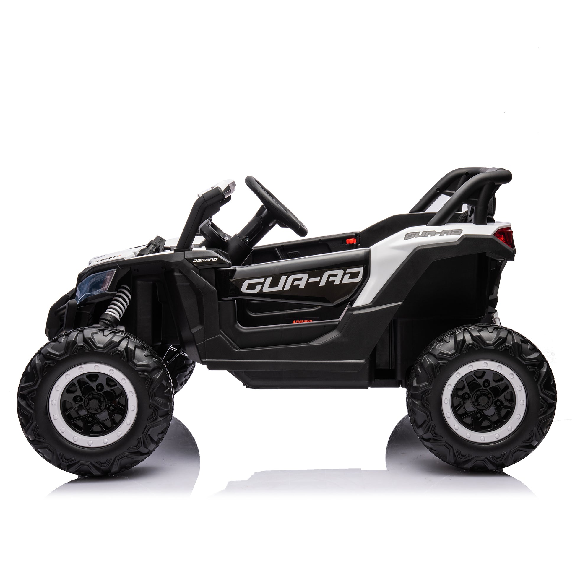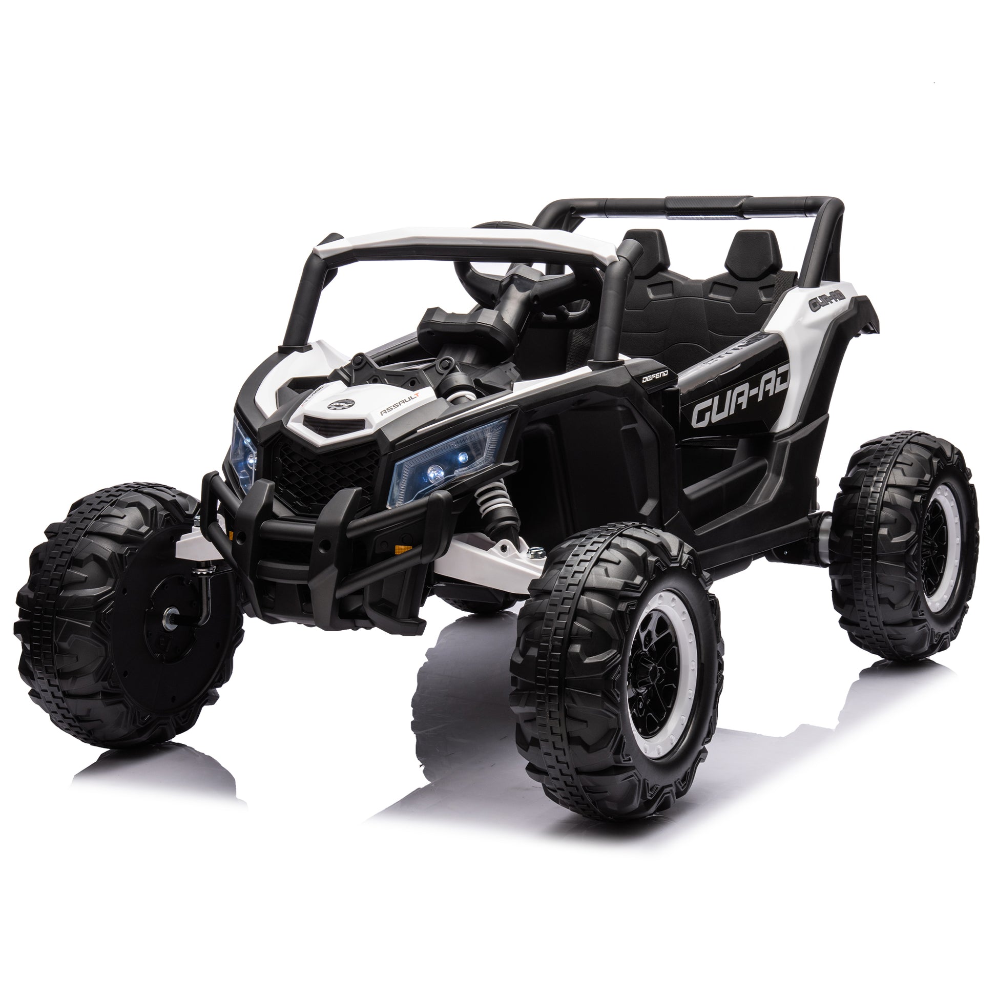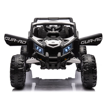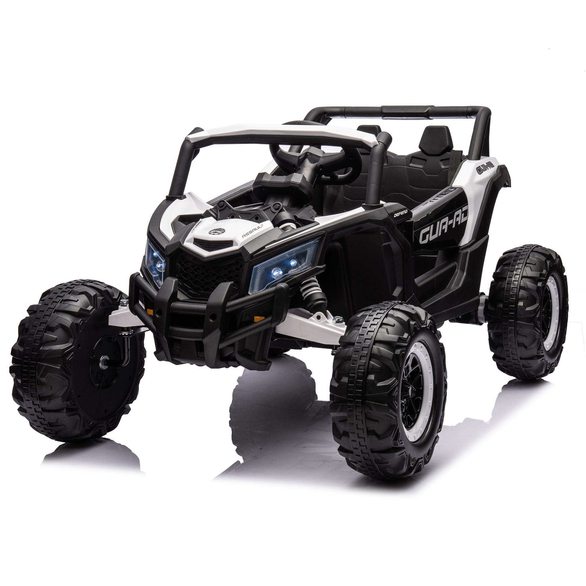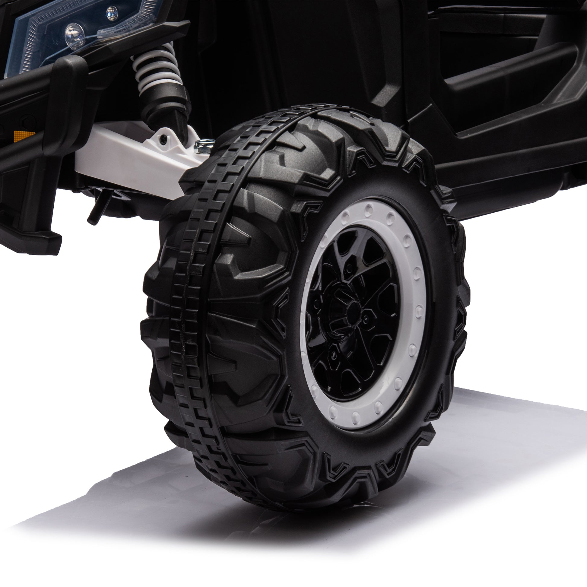 12V Ride On Car With Remote Control,Utv Ride On For Kid,3 Point Safety Harness, Music Player Usb Port Volume Knob Battery Indicator , Led Lights, High Low Speed Switch Off Road Adventure For Kids White Polypropylene