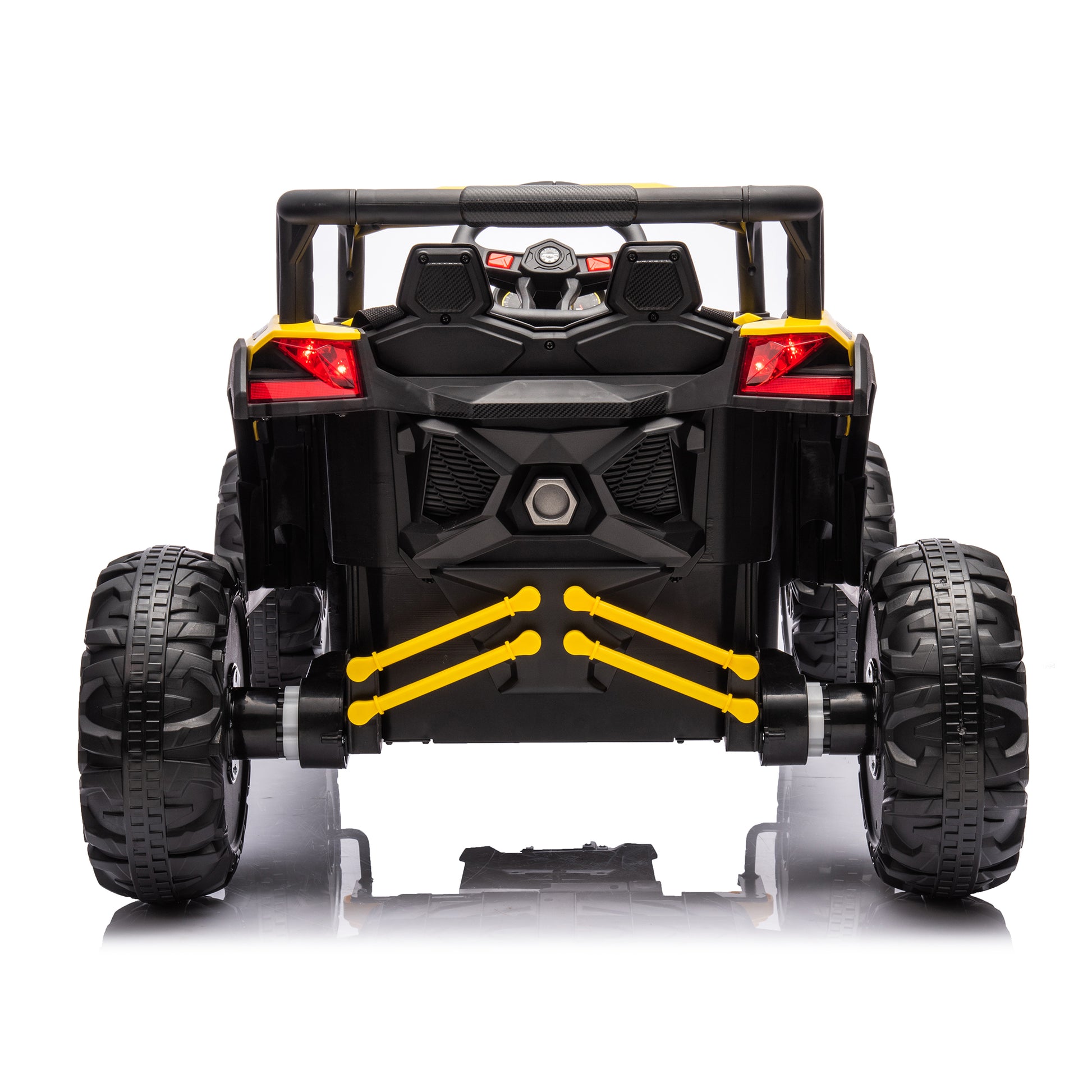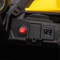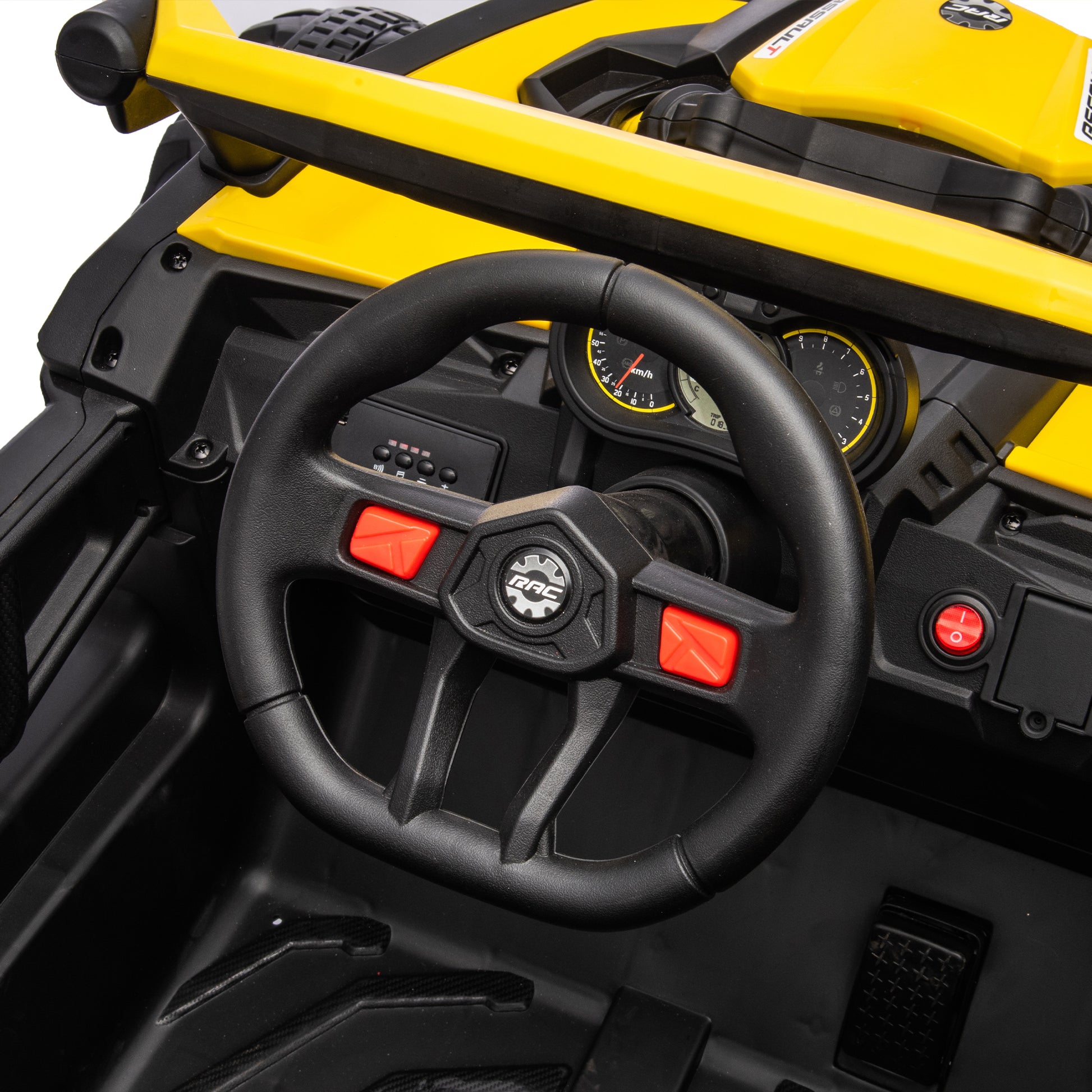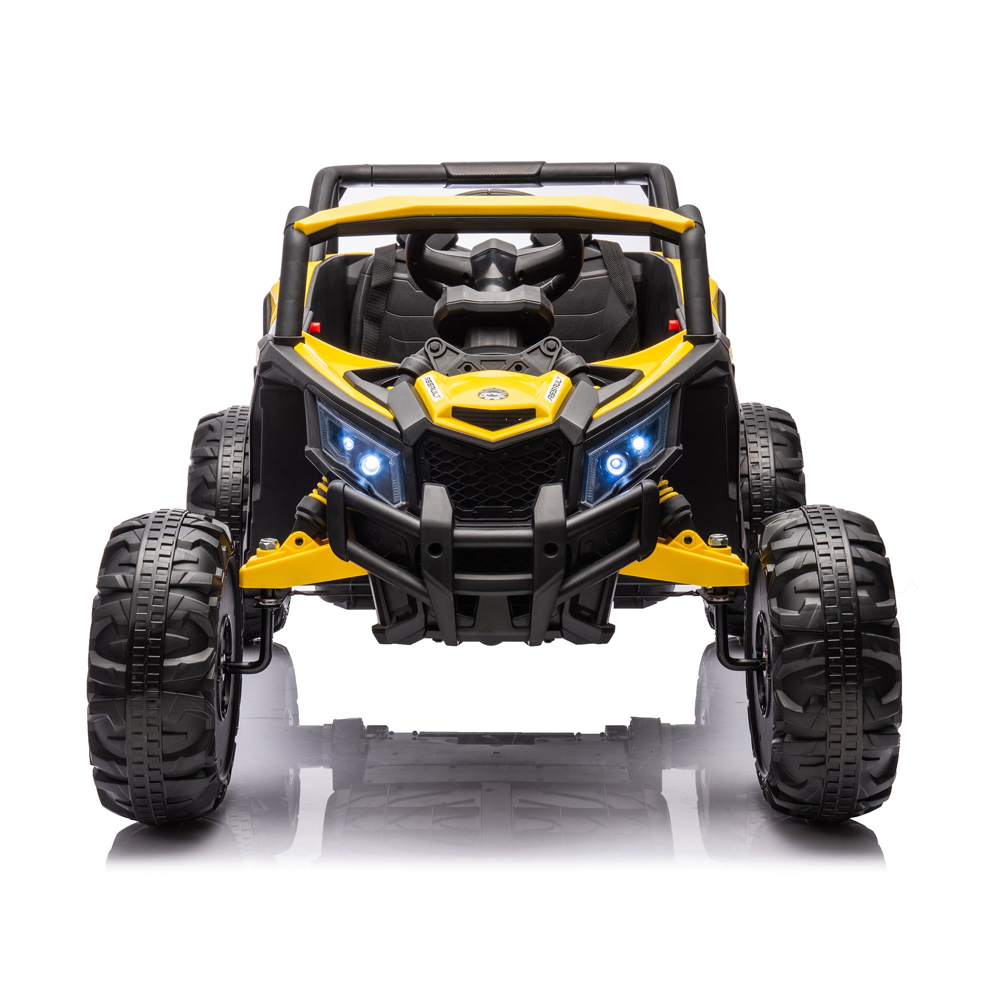 12V Ride On Car With Remote Control,Utv Ride On For Kid,3 Point Safety Harness, Music Player Usb Port Volume Knob Battery Indicator , Led Lights, High Low Speed Switch Off Road Adventure For Kids Yellow Polypropylene
