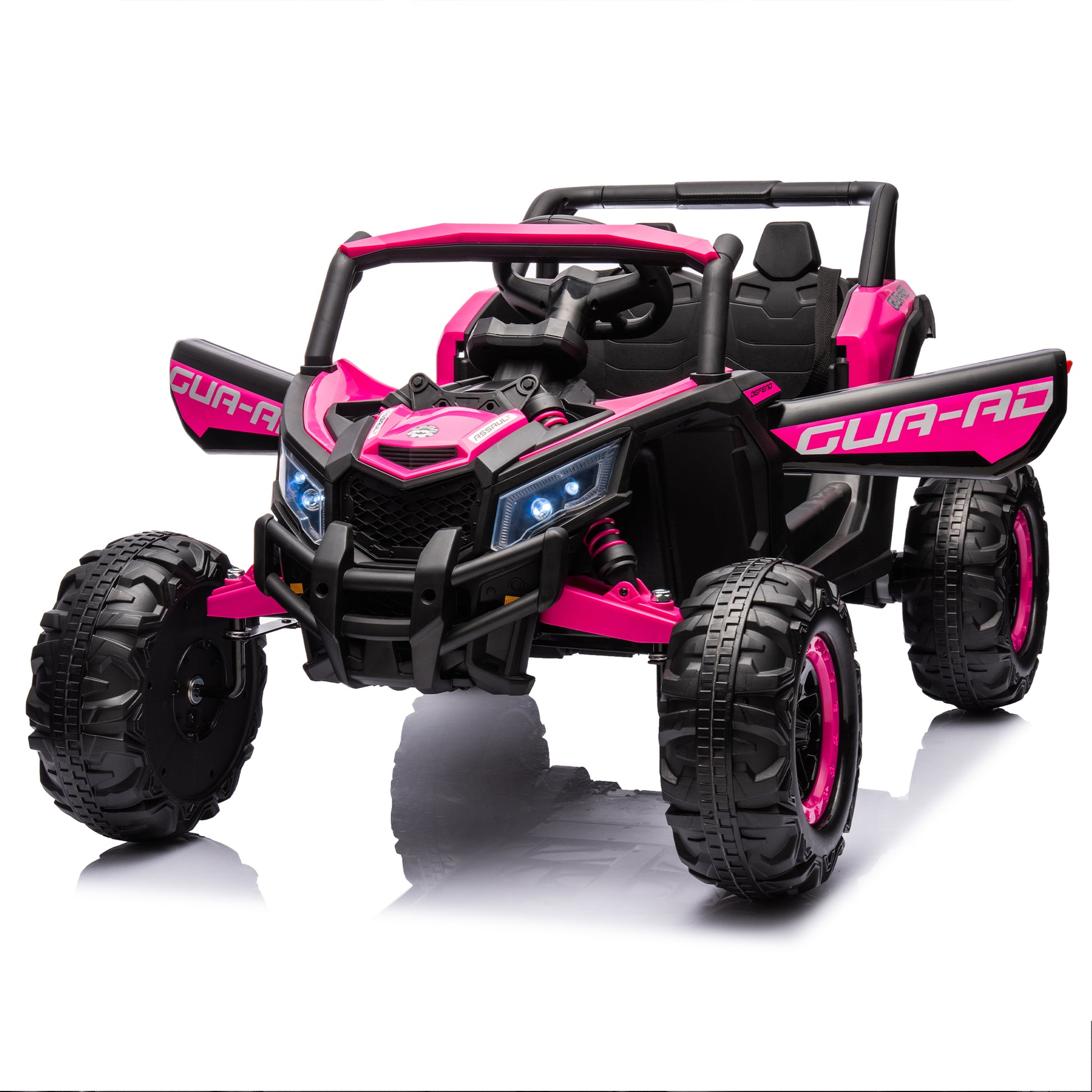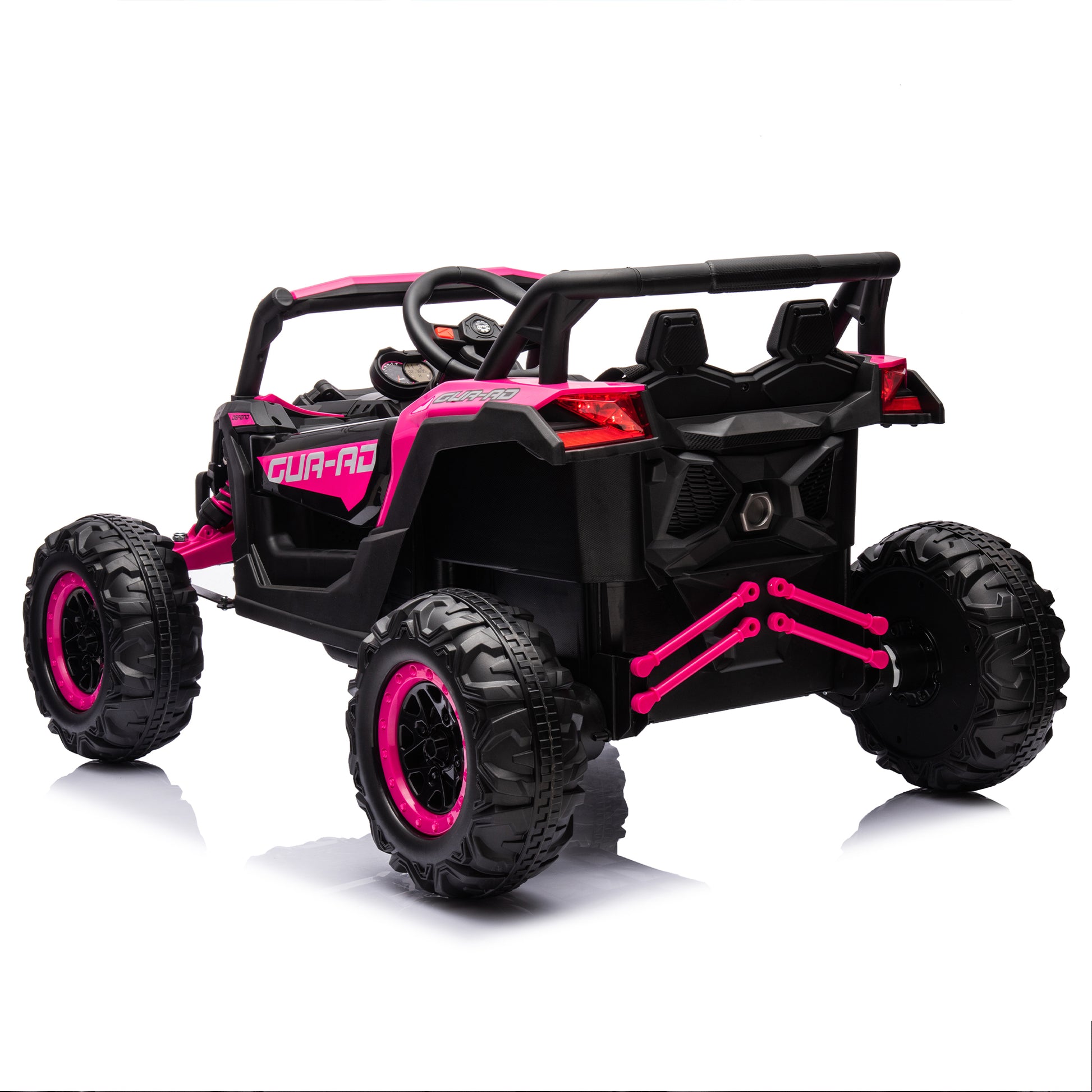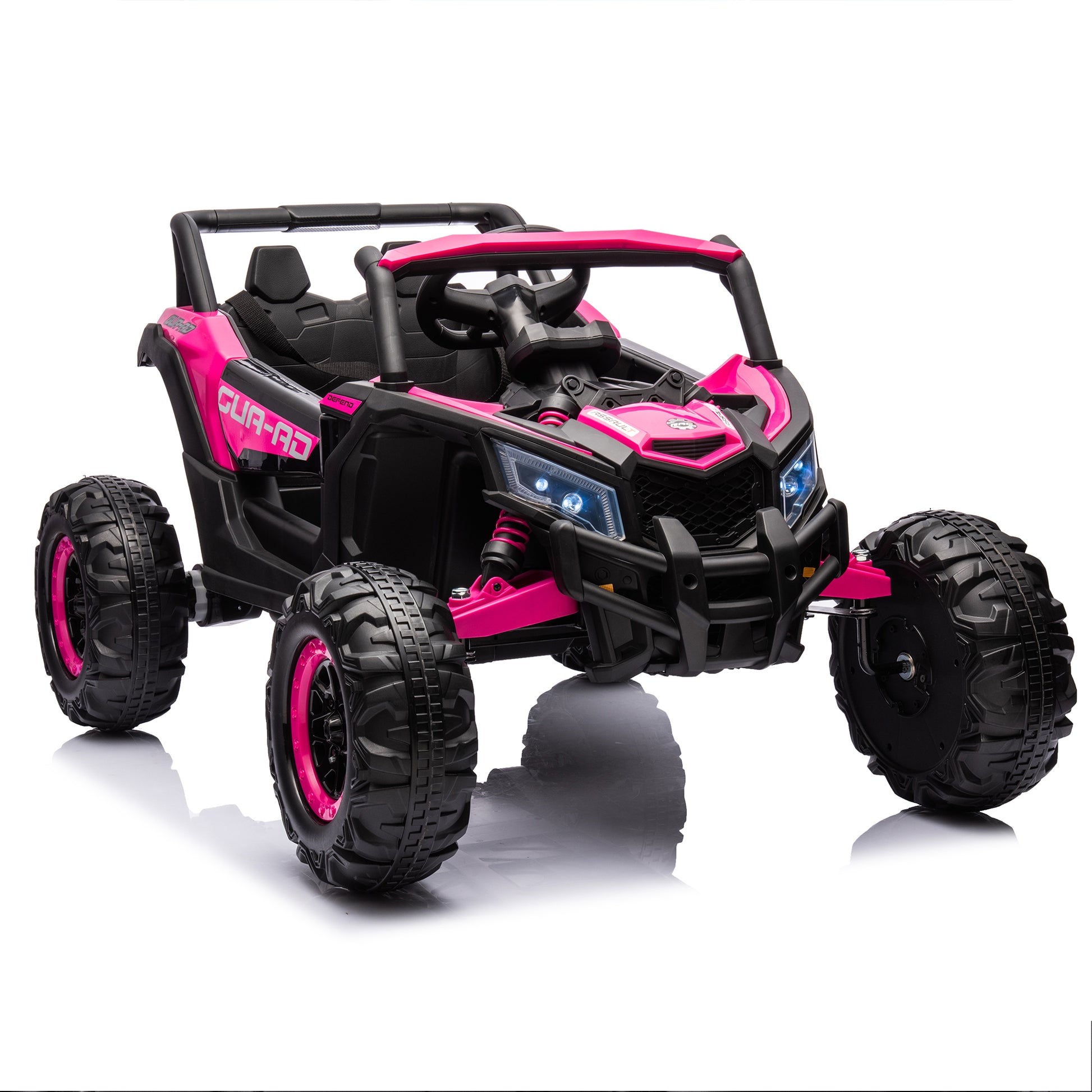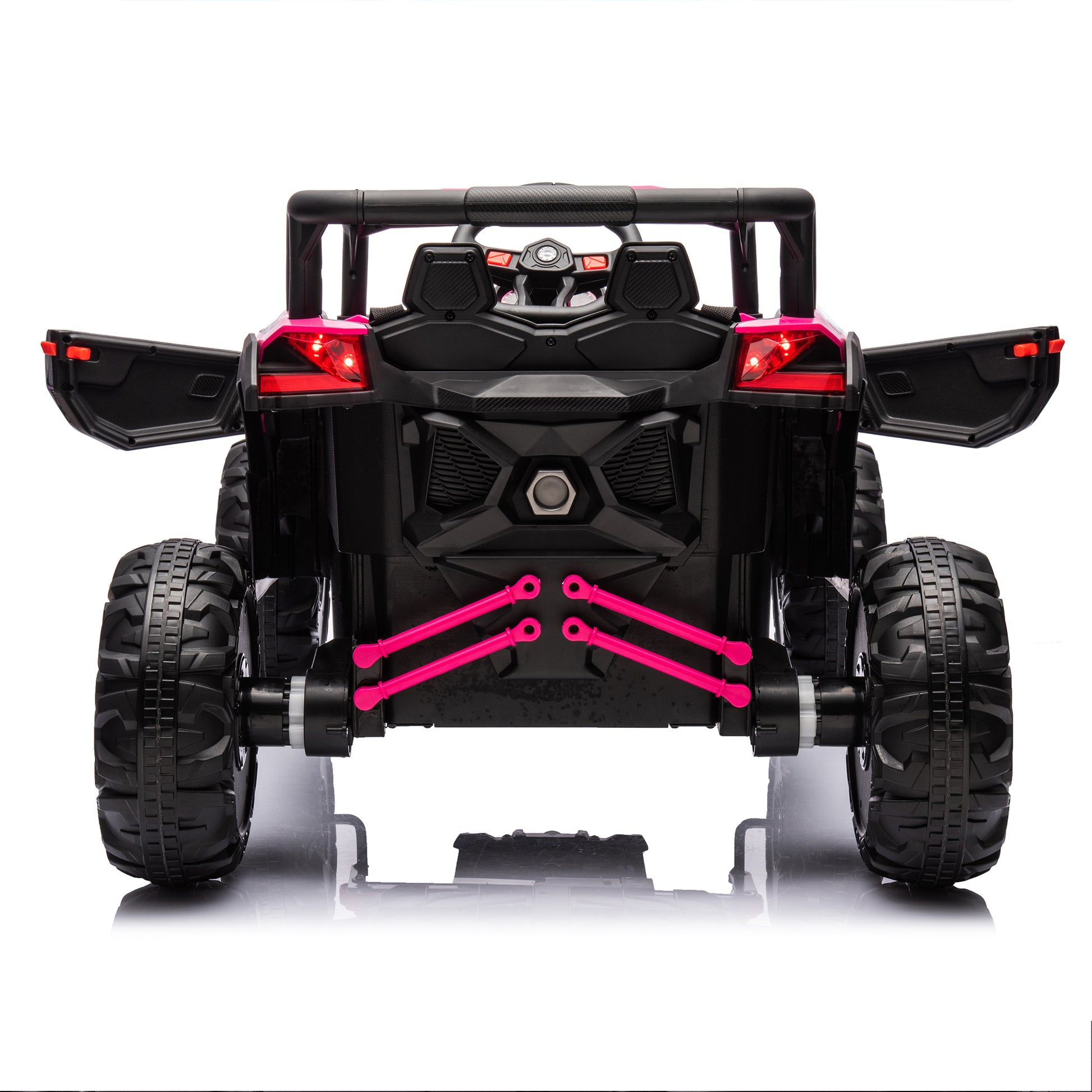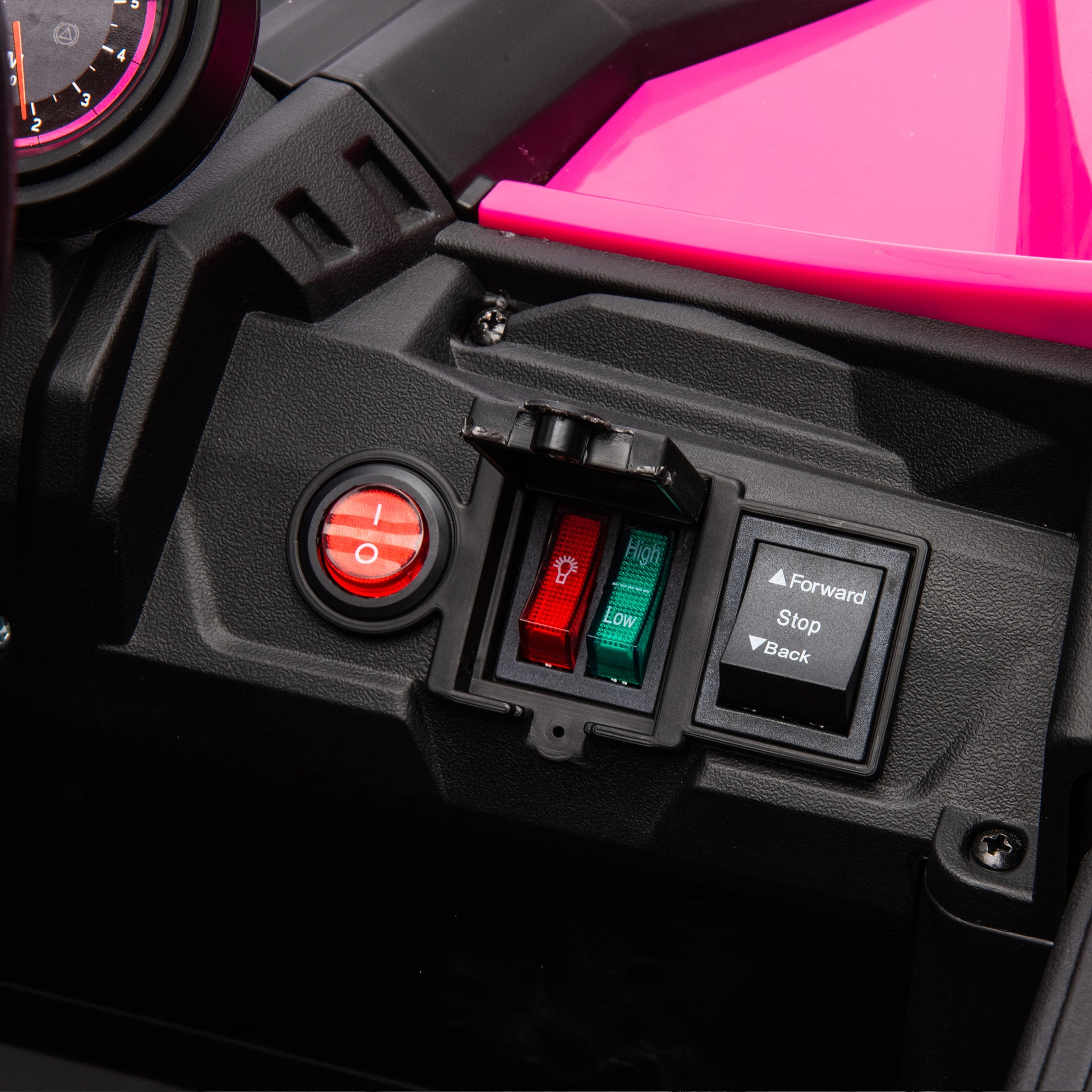 12V Ride On Car With Remote Control,Utv Ride On For Kid,3 Point Safety Harness, Music Player Usb Port Volume Knob Battery Indicator , Led Lights, High Low Speed Switch Off Road Adventure For Kids Pink Polypropylene