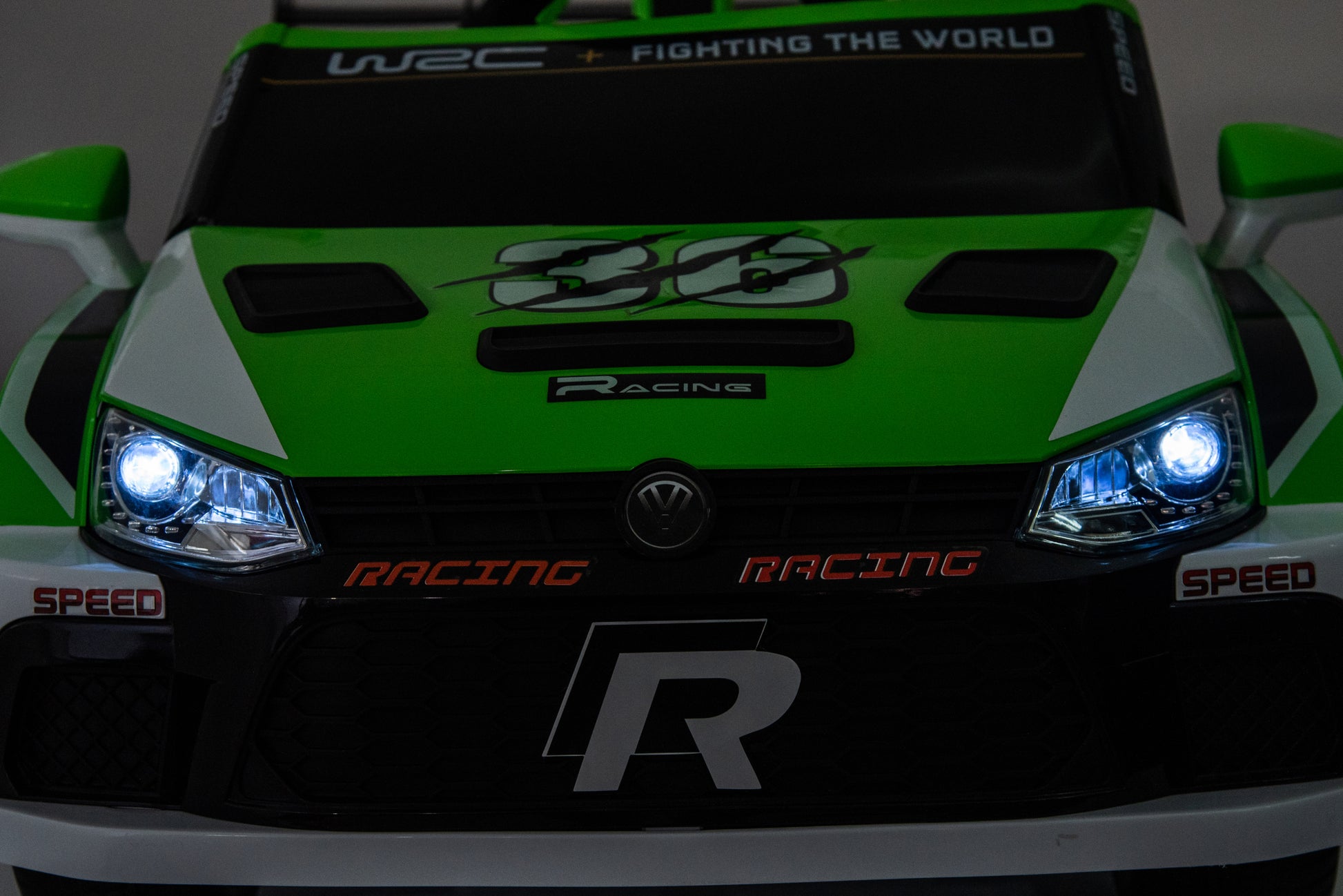 12V4A 20W*2 One Button Start, Forward And Backward, High And Low Speed, Music, Front Light, Power Display, Two Doors Can Open, 2.4G R C, Seat Belt Four Wheel Absorber Kids Ride On Car Green 50 99 Lbs 5 To 8 Years Iron Plastic Outdoor