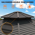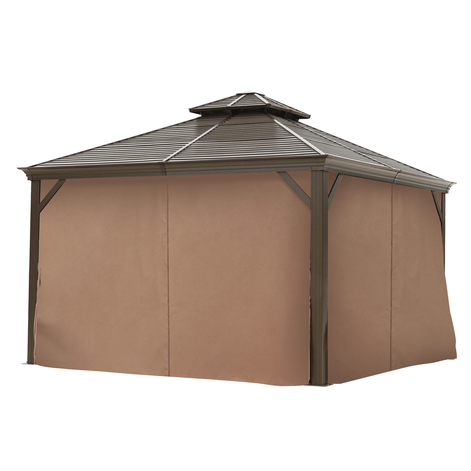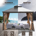 12X12Ft Galvanized Steel Gazebos With Netting & Curtains Brown Square Garden & Outdoor Uv Resistant Gazebos Anchored Aluminium Alloy