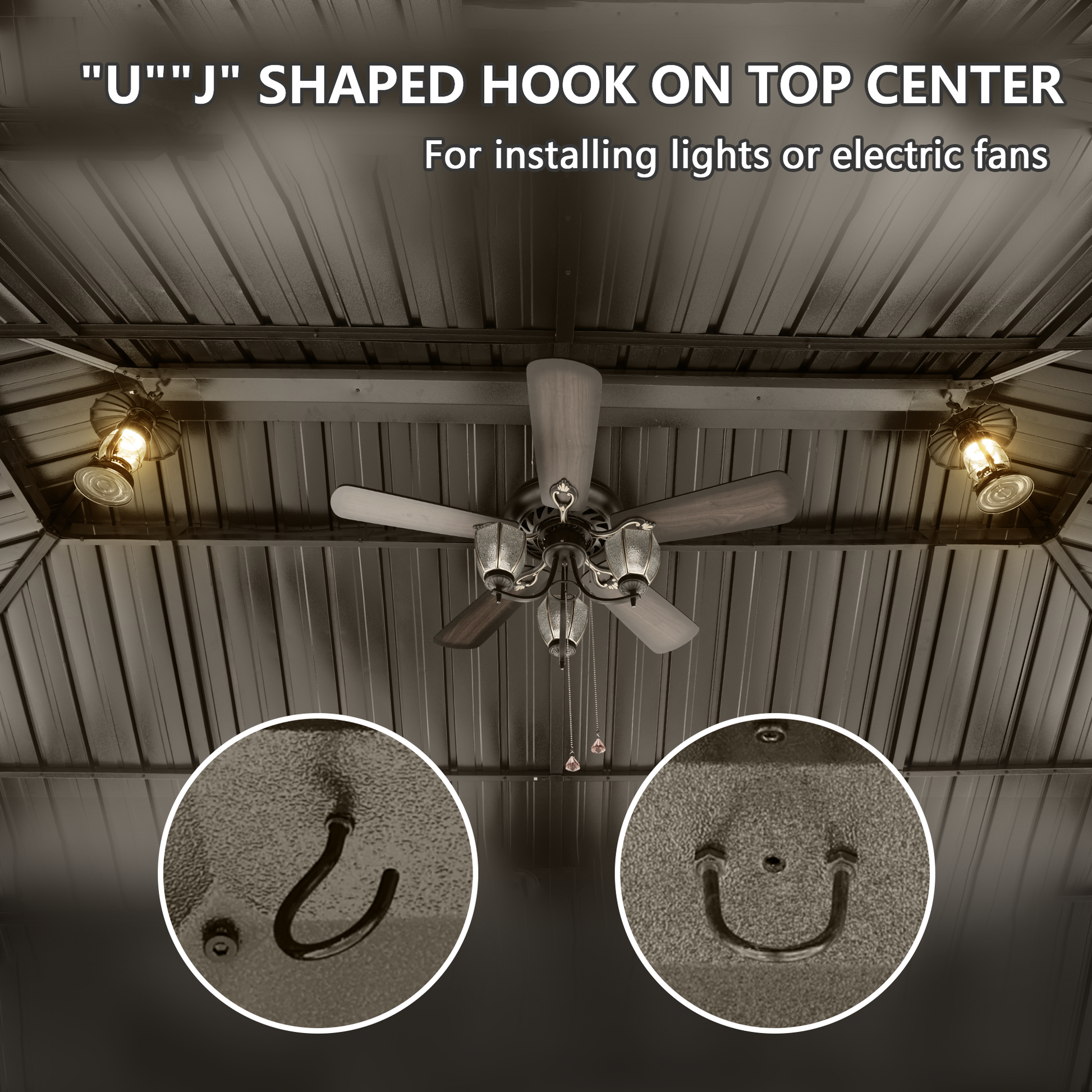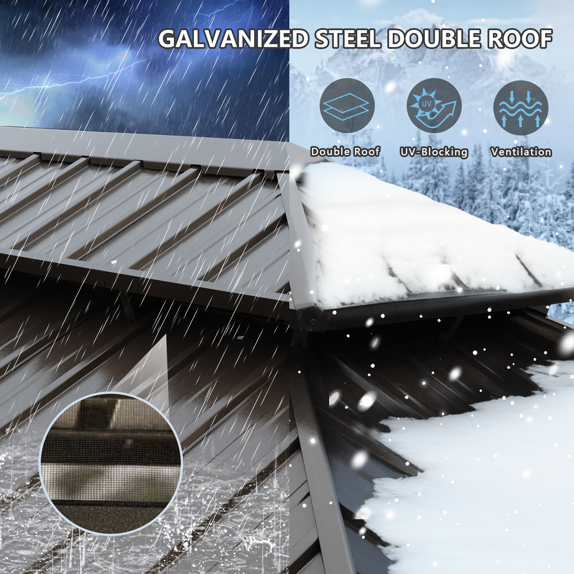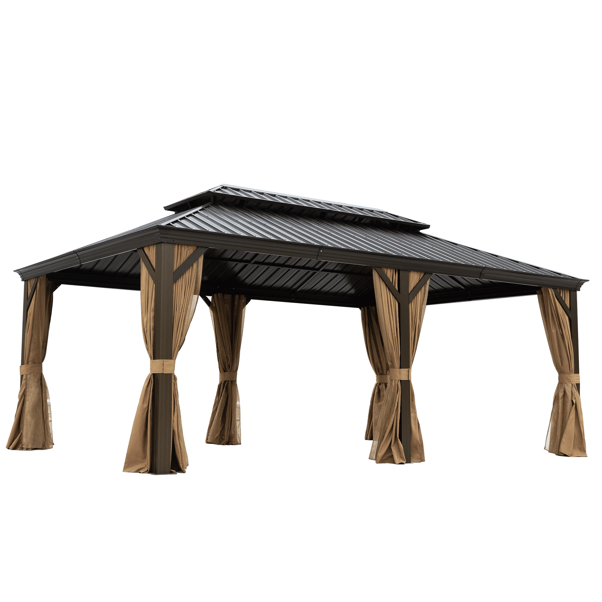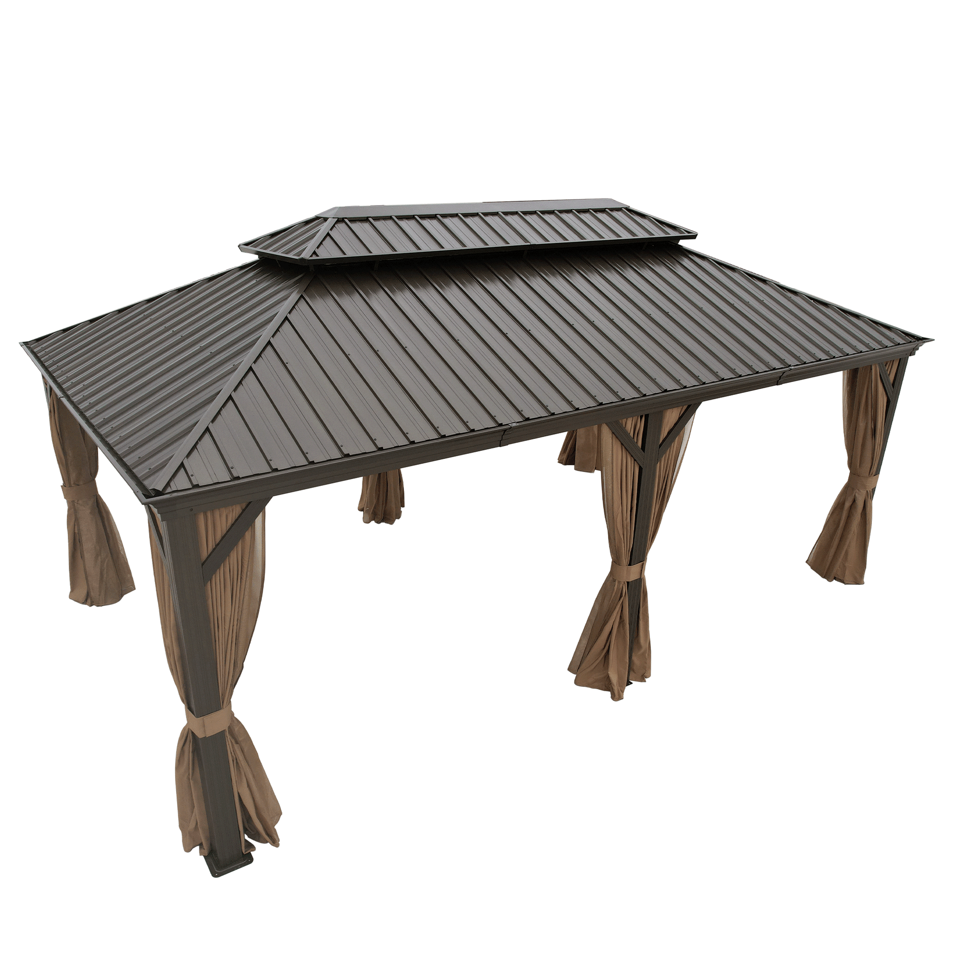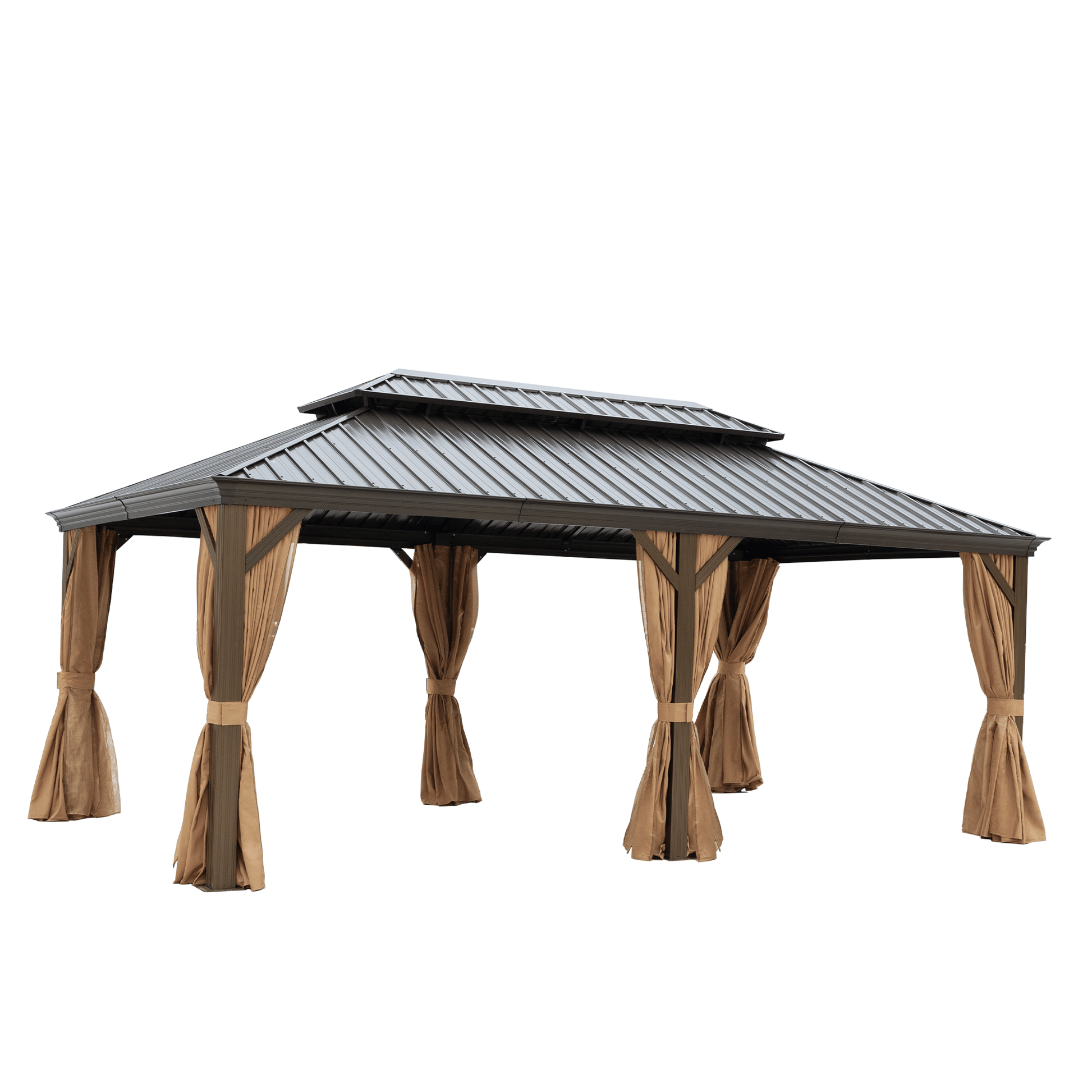 12X20Ft Galvanized Steel Gazebos With Netting & Curtains Brown Rectangular Garden & Outdoor Uv Resistant Gazebos Anchored Aluminium Alloy
