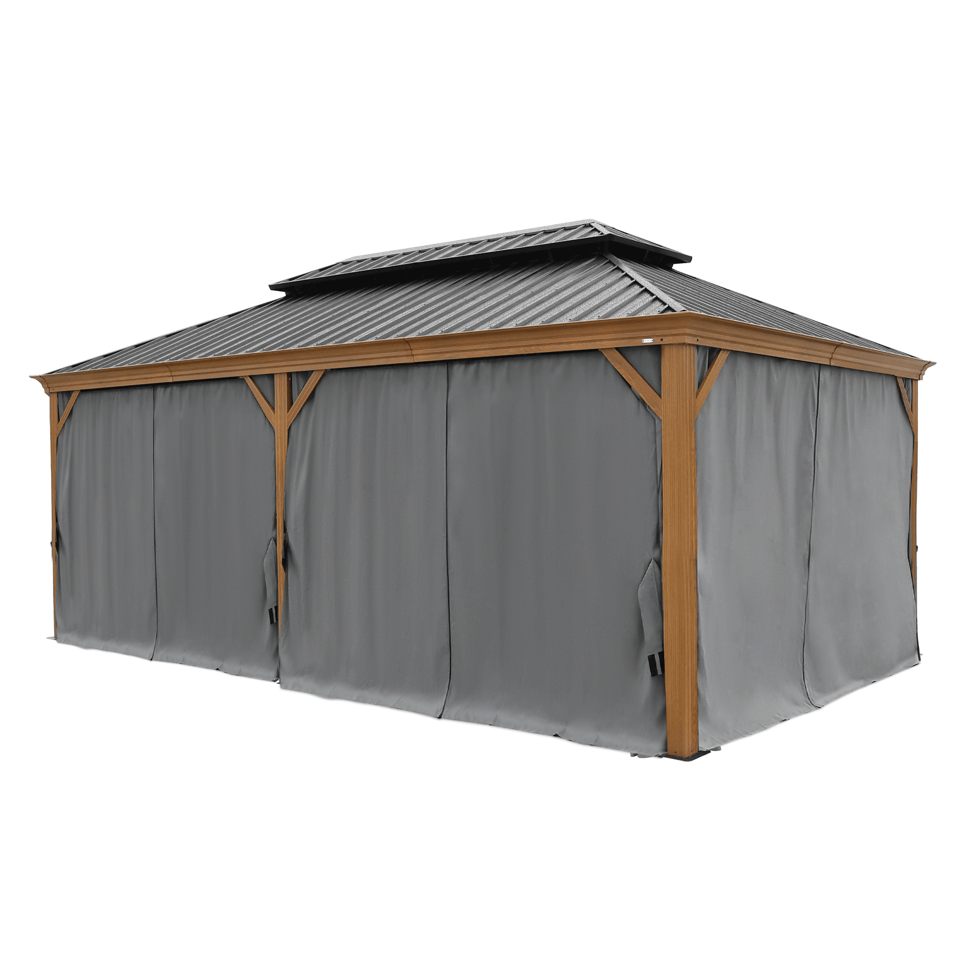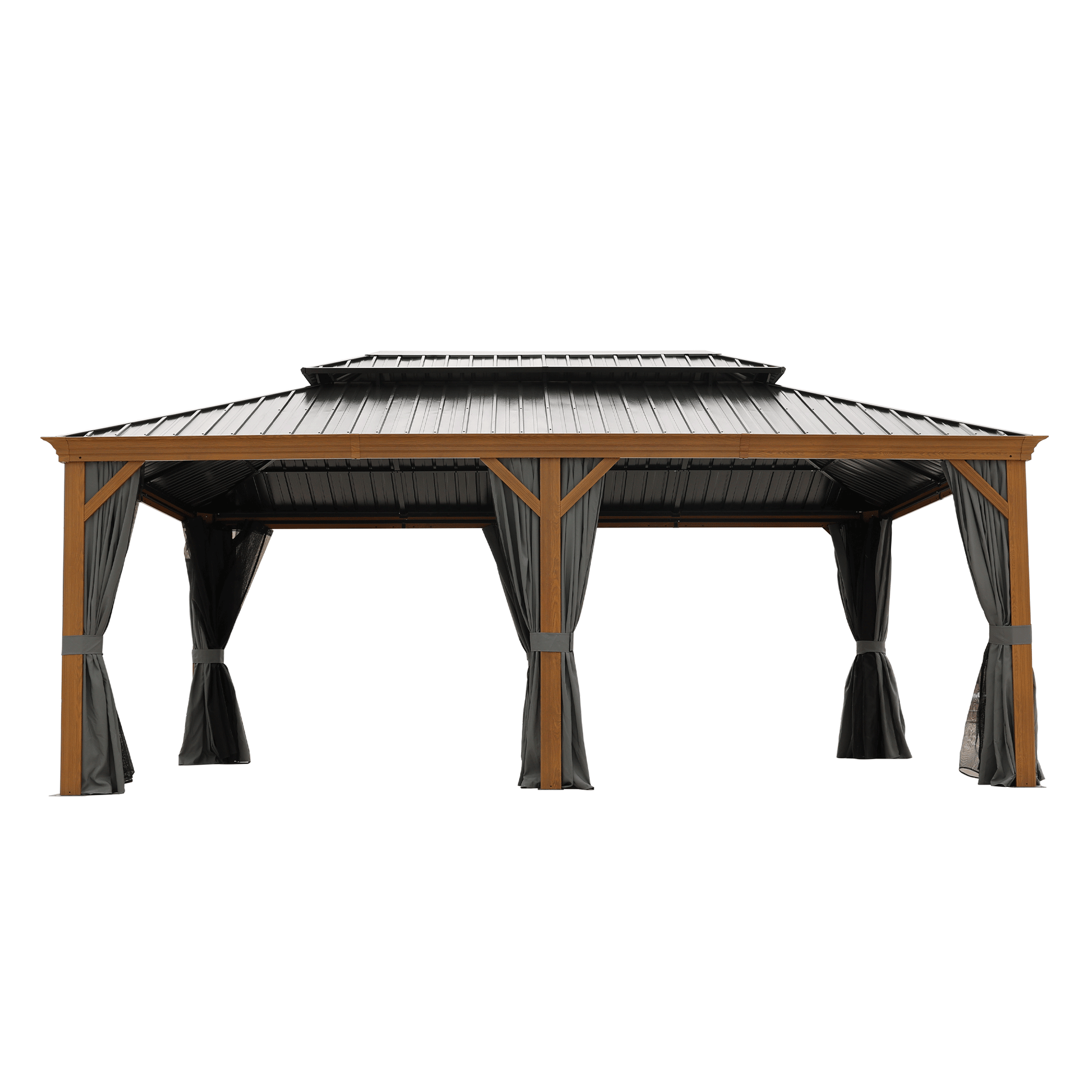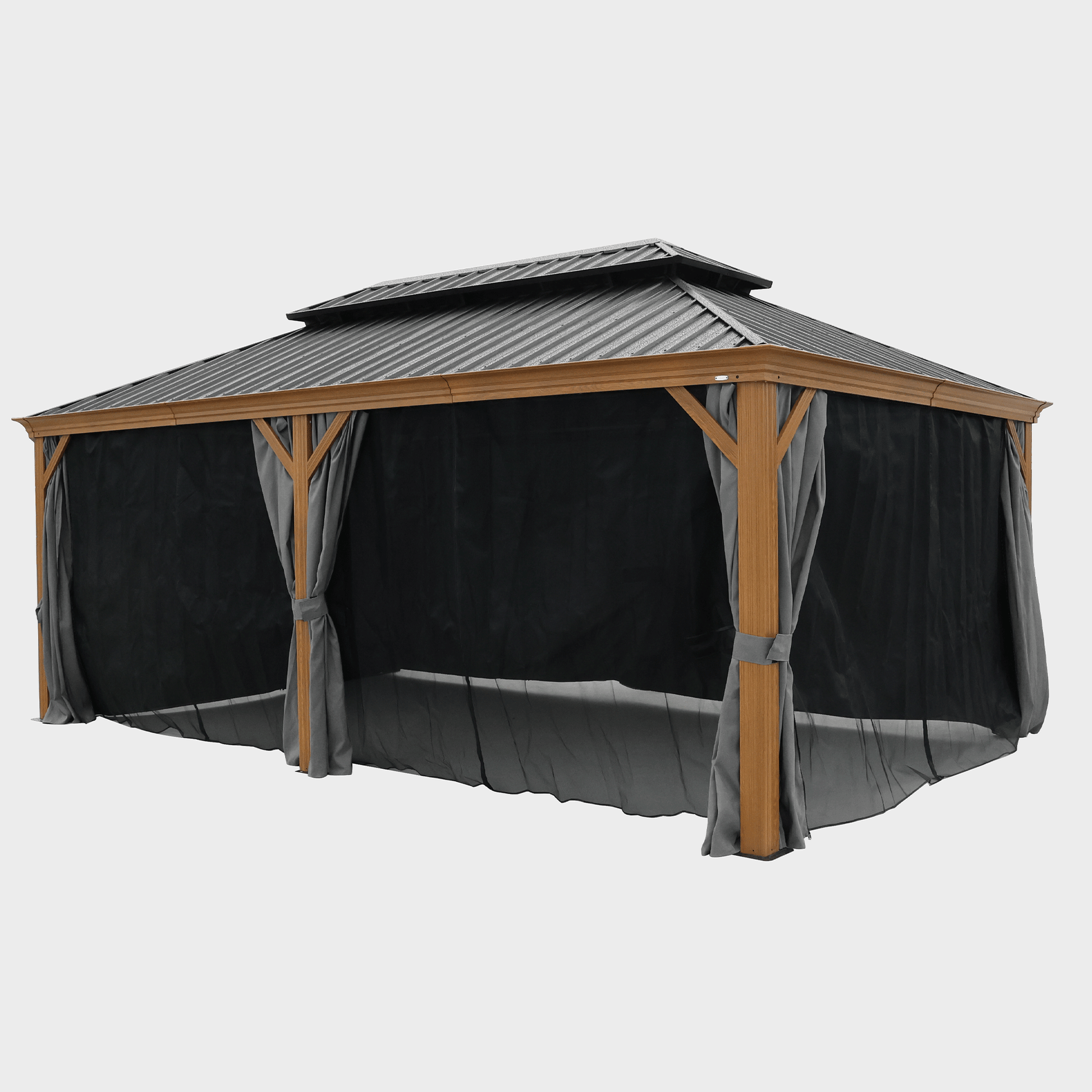 12X20Ft Galvanized Steel Gazebos With Netting & Curtains Black Brown Grey Rectangular Garden & Outdoor Uv Resistant Gazebos Anchored Aluminium Alloy
