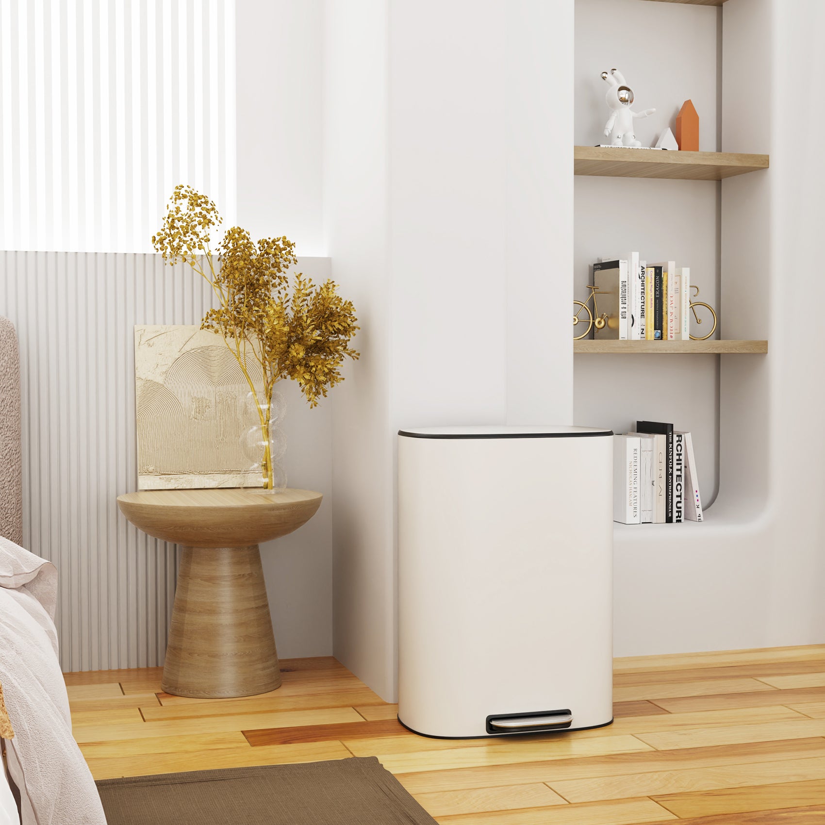 13 Gallon 50L Kitchen Foot Pedal Operated Soft Close Trash Can Stainless Steel Ellipse Bustbin White White Steel