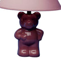13" Tall Ceramic Table Lamp, Teddy Bear Design With Pink Finish, Linen Shade Pink Ceramic