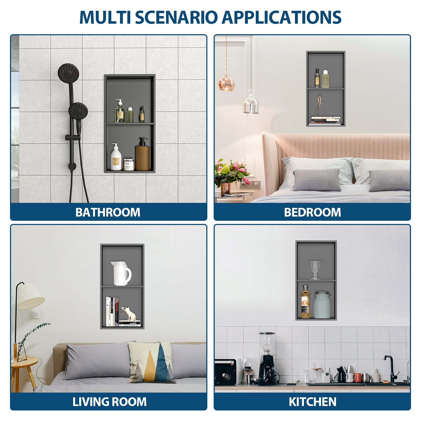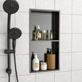 13" X 25" Stainless Steel Shower Niche Double Shelf, Gunmetal Black Gunmetal Black Stainless Steel