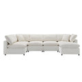 130*65" Modern Modular Cloud Sofa Bed, 6 Seat Chenille Sectional Couch Set With Ottoman,Free Combination,Convertible U Shaped Sleeper Sofa For Living Room, Apartment, 3 Colors Beige Chenille 6 Seat