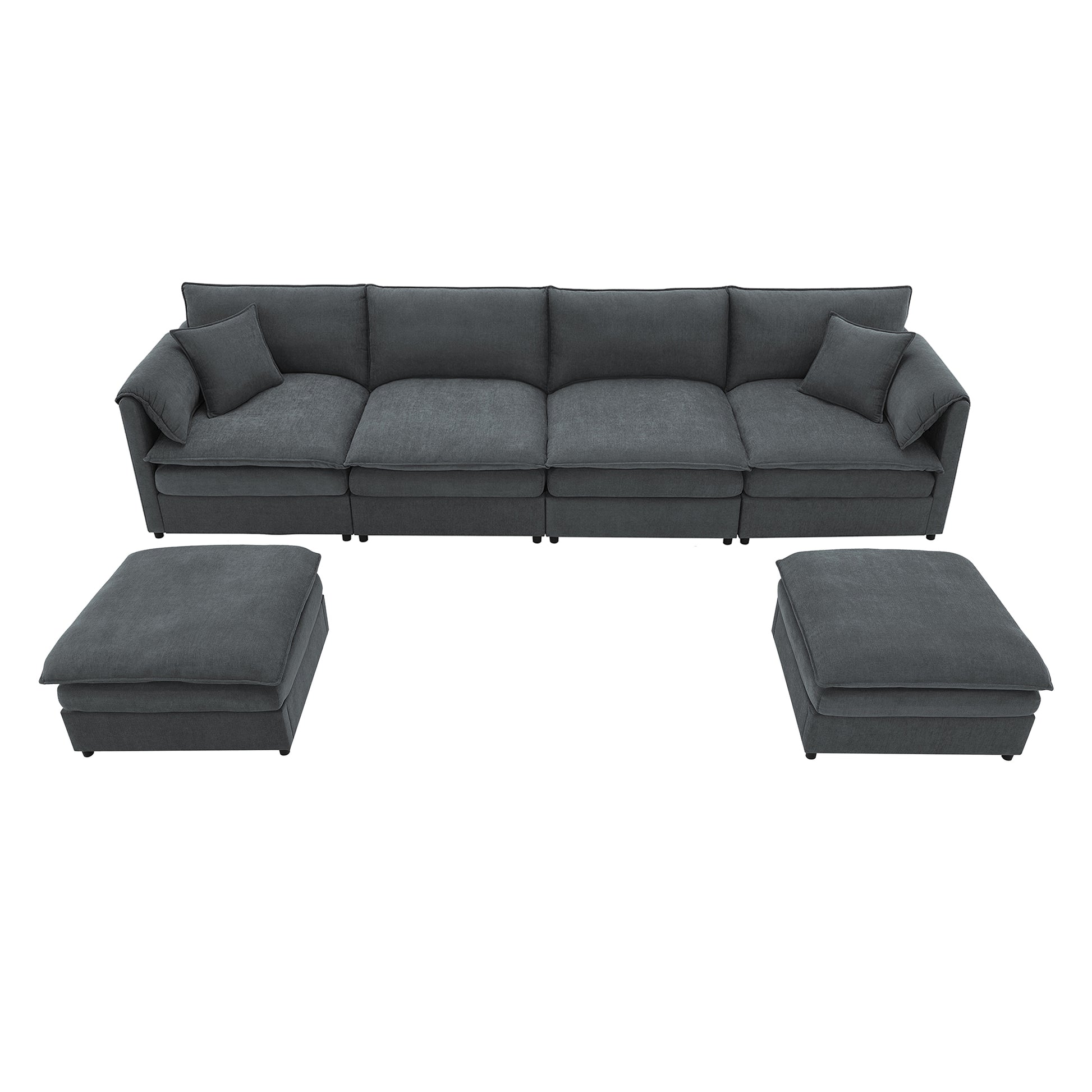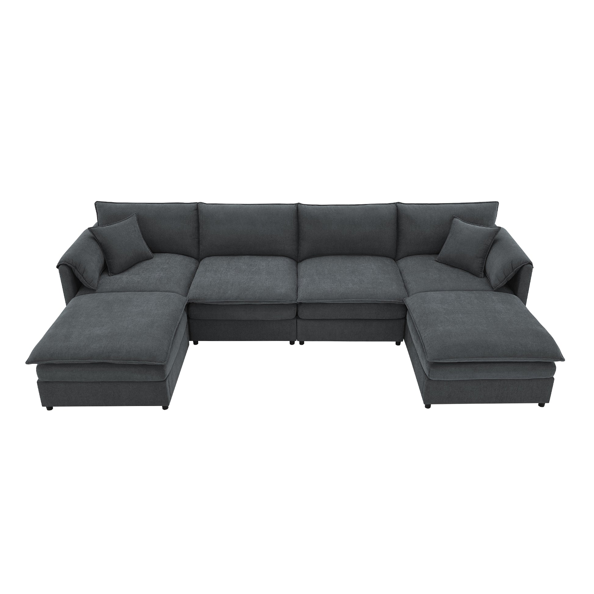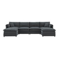 134*66" Chenille Modular Sectional Sofa,U Shaped Cloud Couch Set With Double Cushions ,6 Seat Sleeper Sofa Bed With Ottomans,Oversized Indoor Furniture For Living Room, 3 Colors Dark Gray Chenille 6