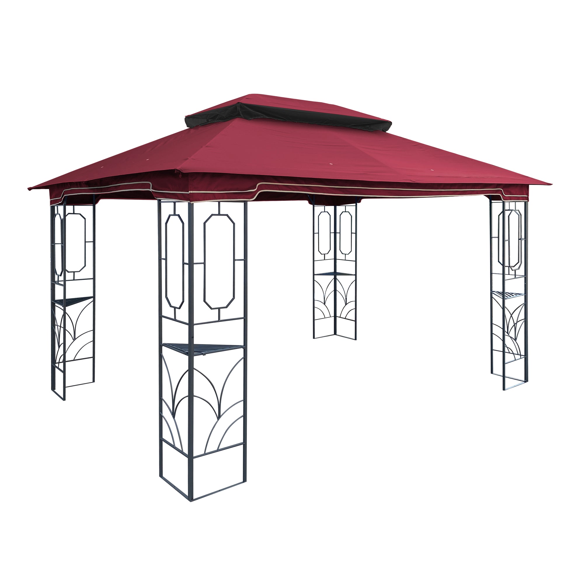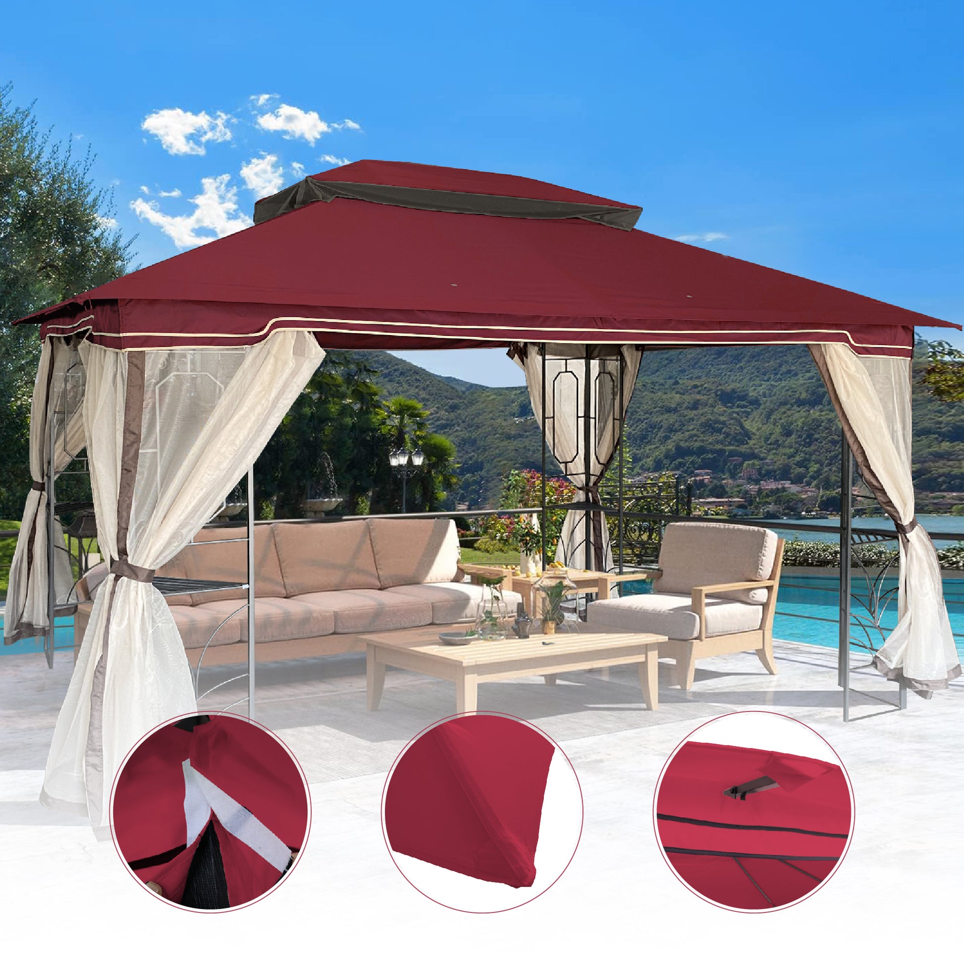13X10 Ft Patio Double Roof Gazebo Replacement Canopy Top Fabric,Wine Red. Red Polyester