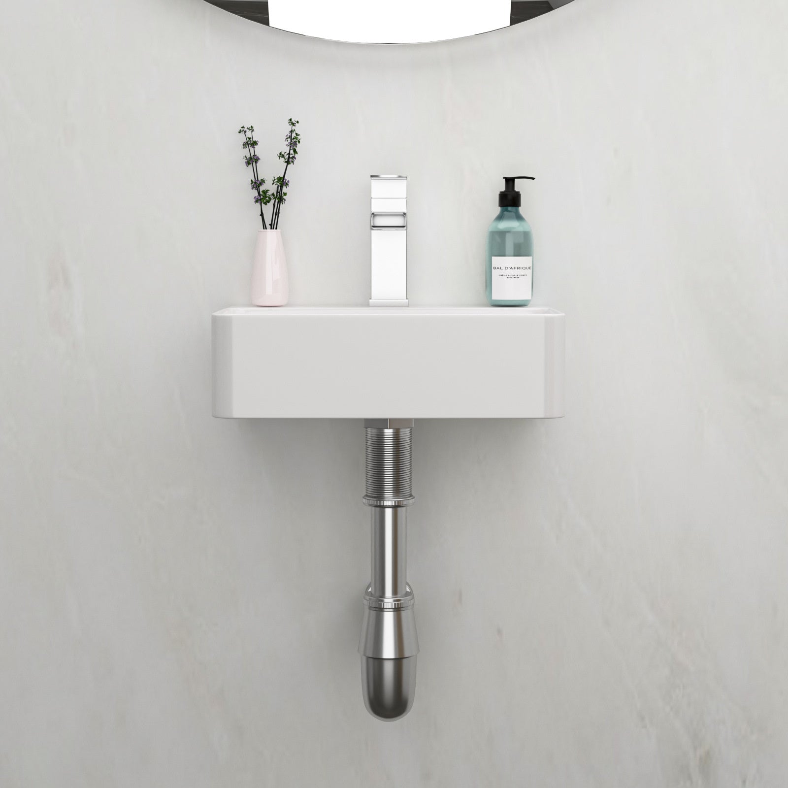 14.5X10 Inch White Ceramic Rectangle Wall Mount Bathroom Sink With Single Faucet Hole White Ceramic