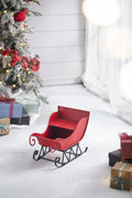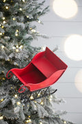 14.5X10X11"H Iron Red Black Sleigh Small, Distressed Christmas Santa Sleigh Holiday Tabletop Hanging Decoration Black Red Iron