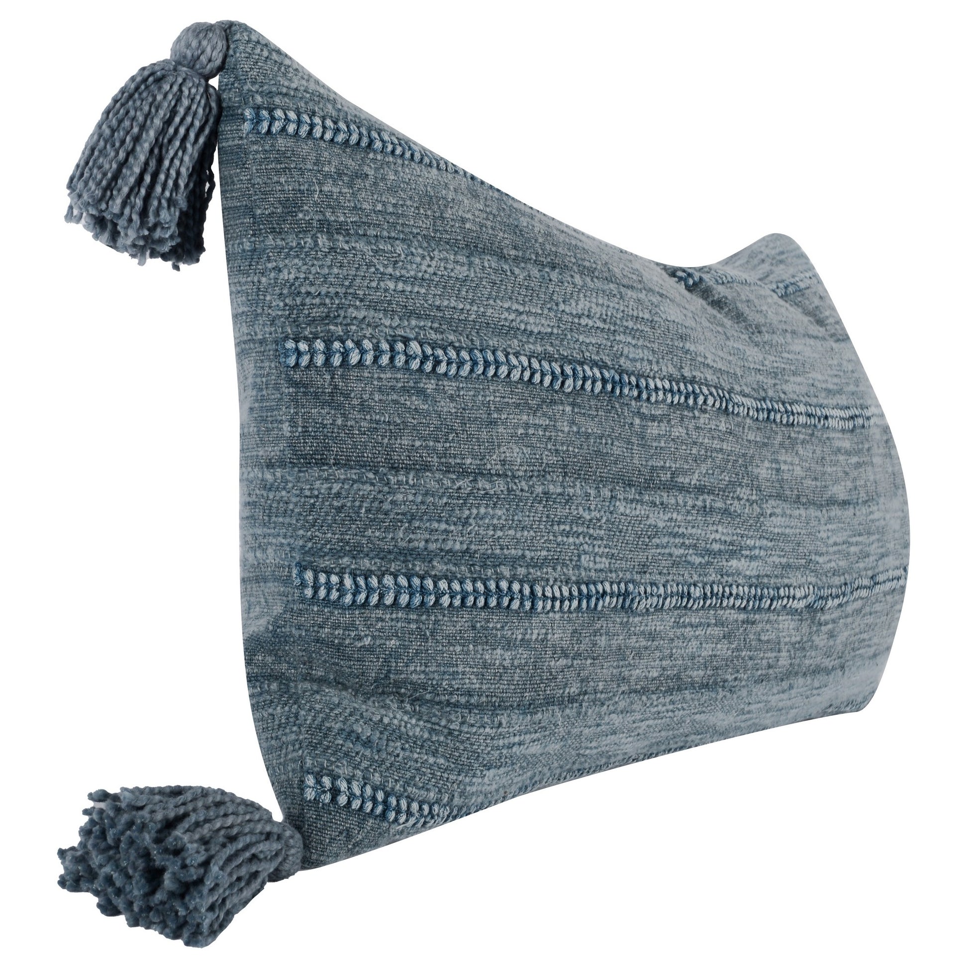 14 X 26 Lumbar Throw Pillow, Handwoven Stripes, Cotton Linen, Tassels, Blue Blue Polyester Blend