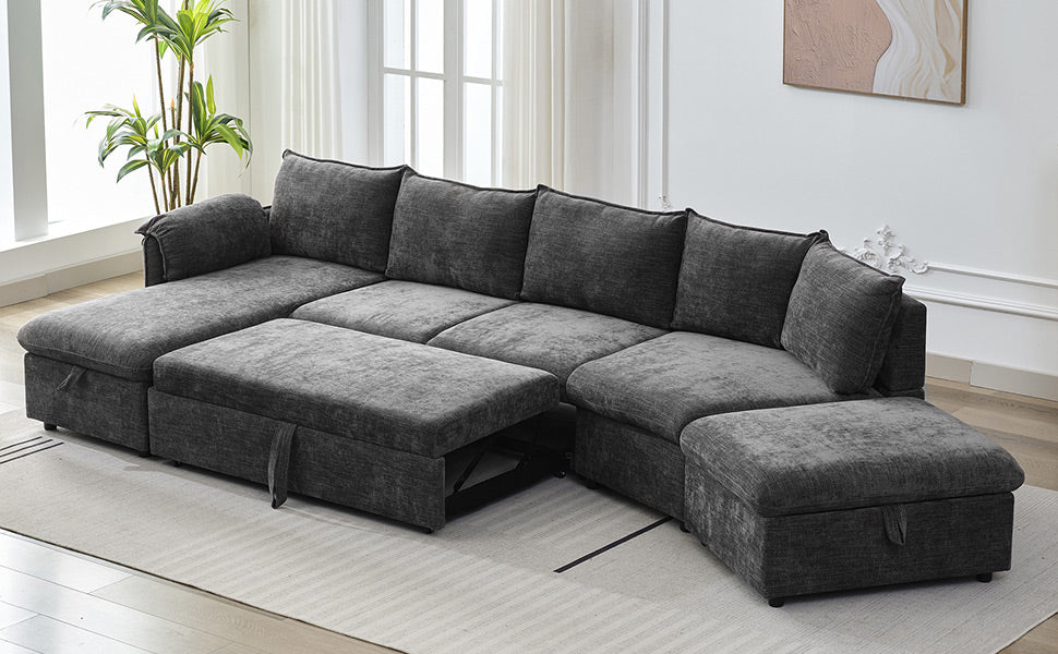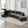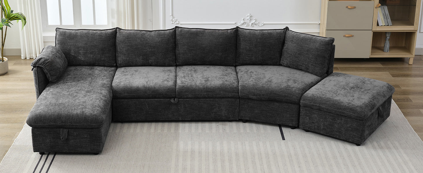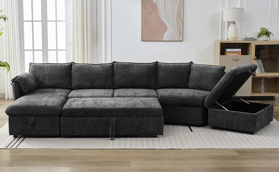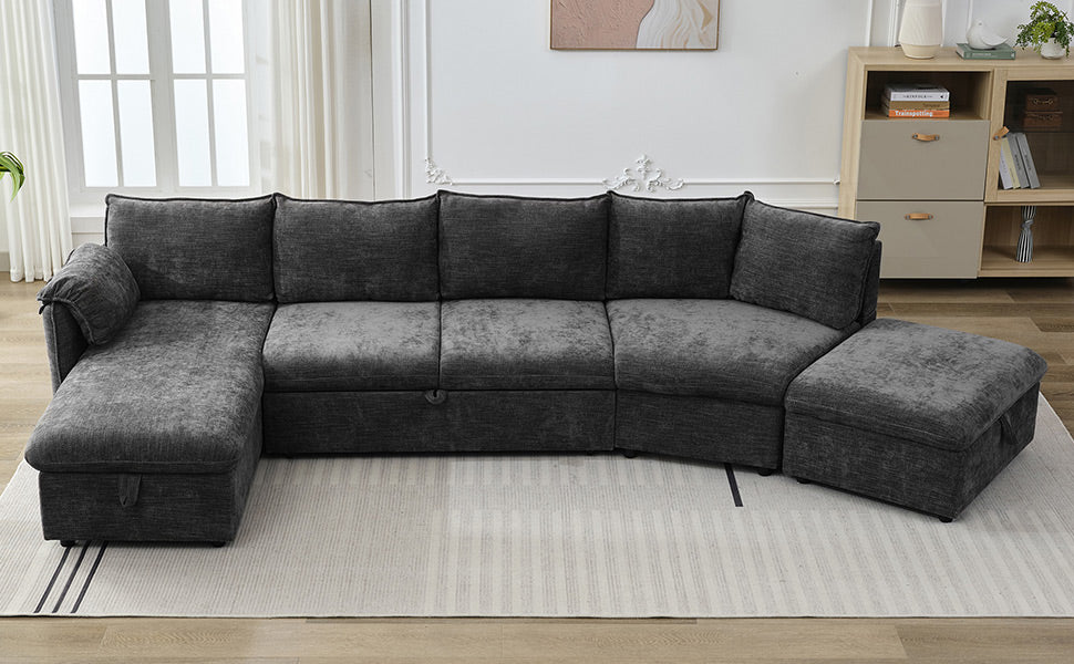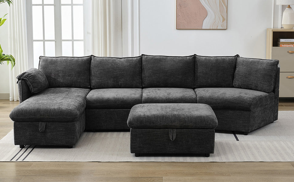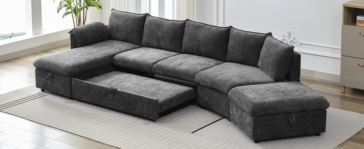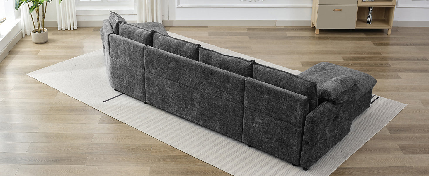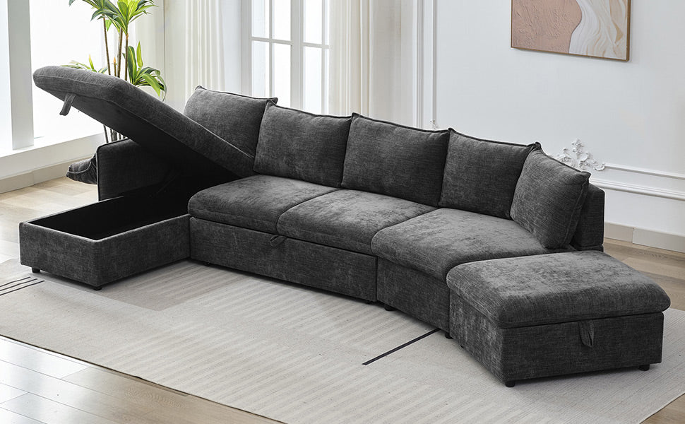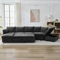 146.9" L Shaped Sofa Sectional Sofa Couch Pull Out Sofa Bed With A Movable Storage Ottoman, A Storage Chaise Lounge And Two Usb Ports For Living Room, Grey Grey Foam Linen 5 Seat
