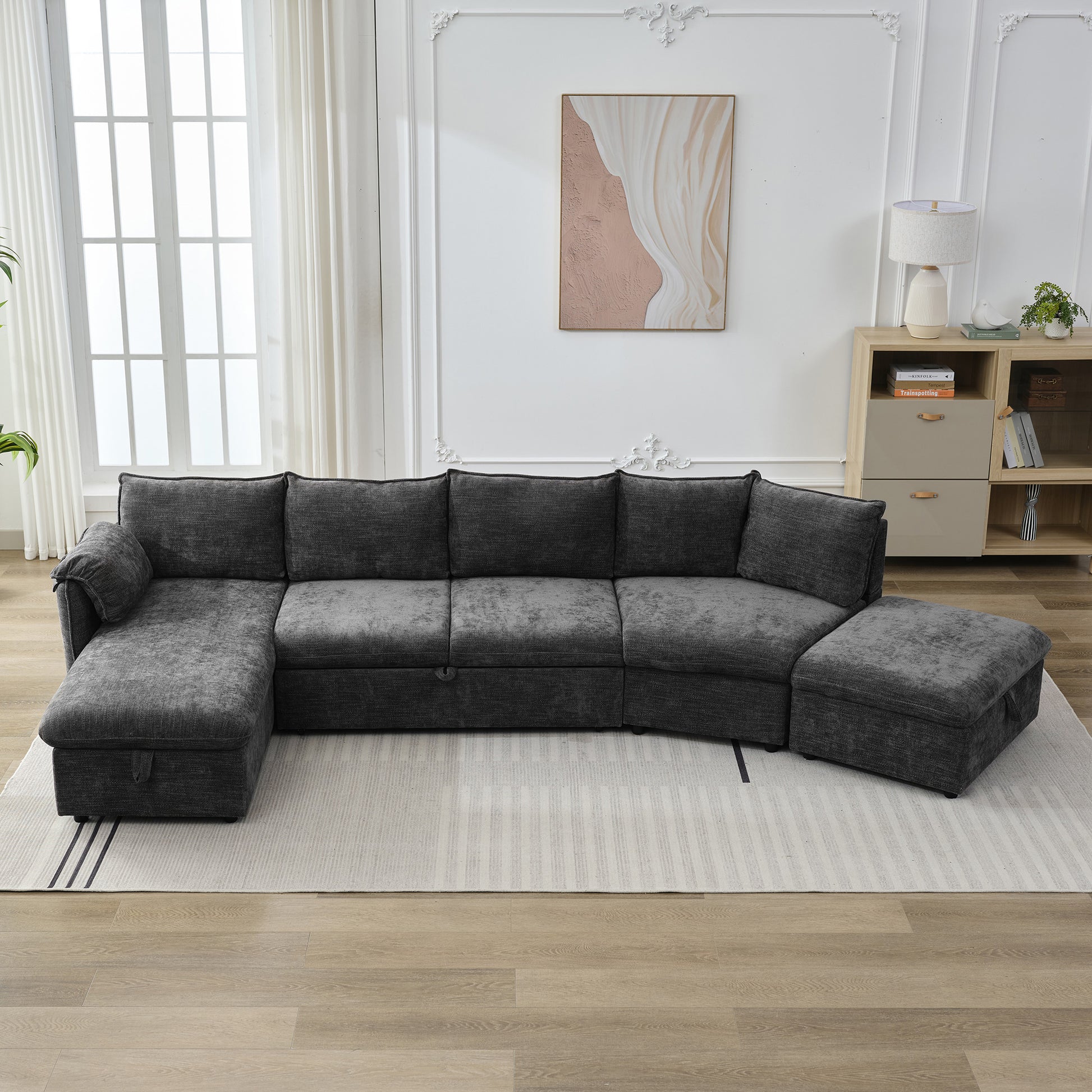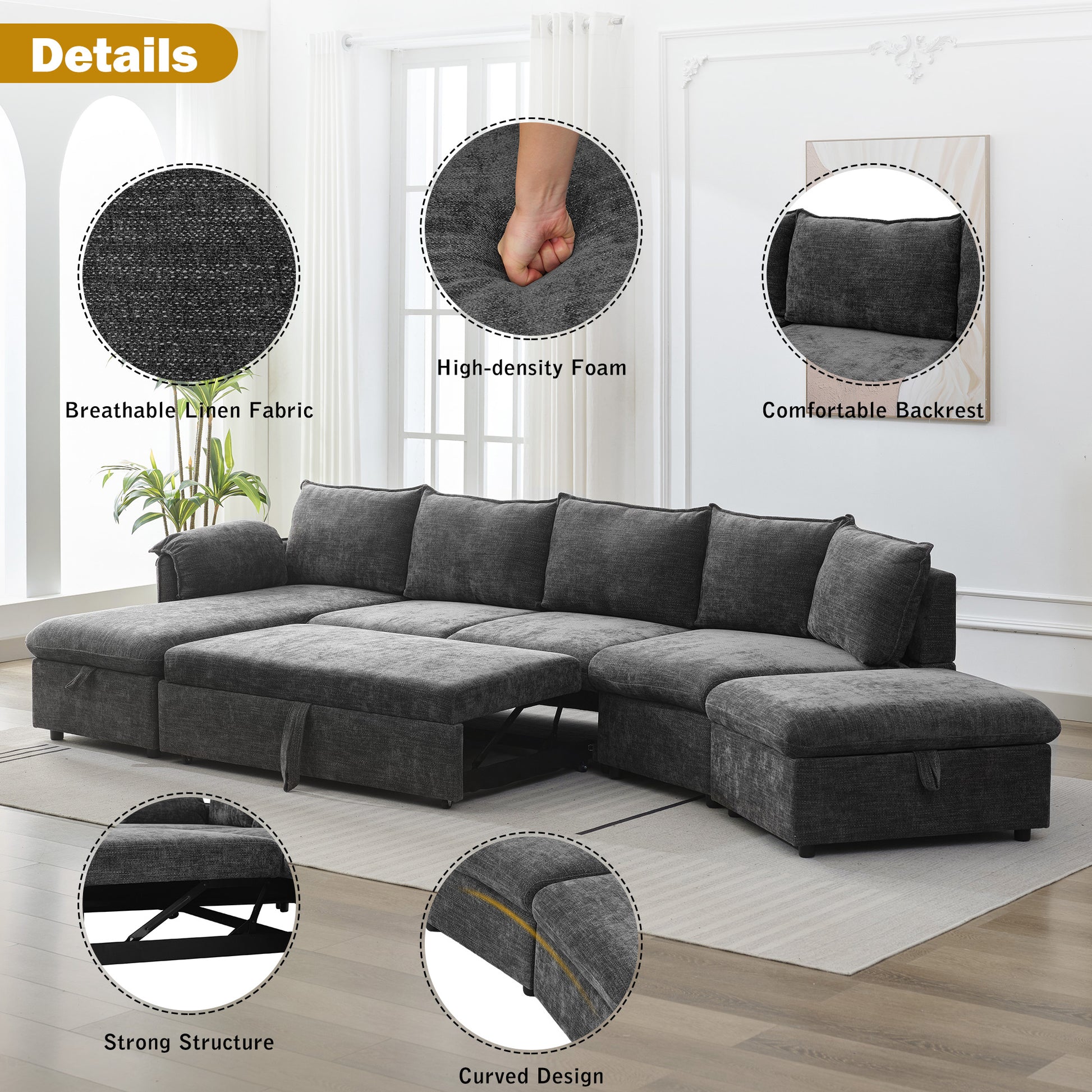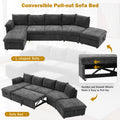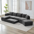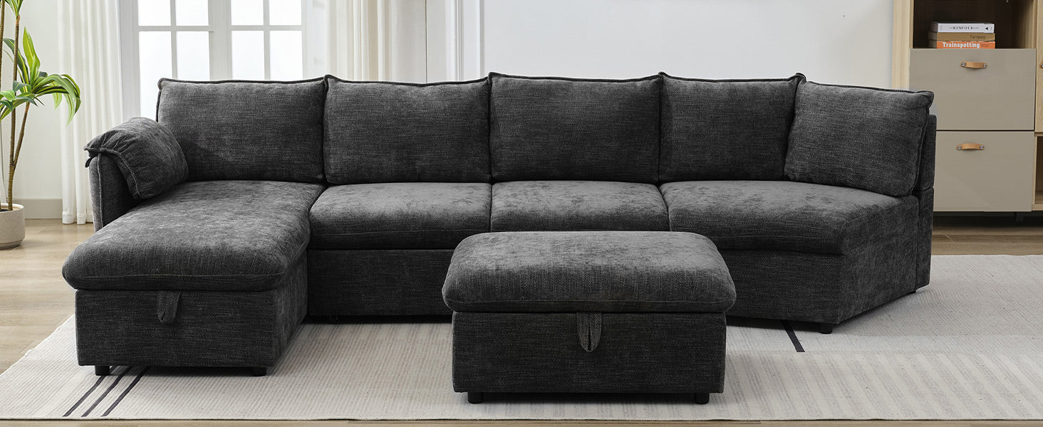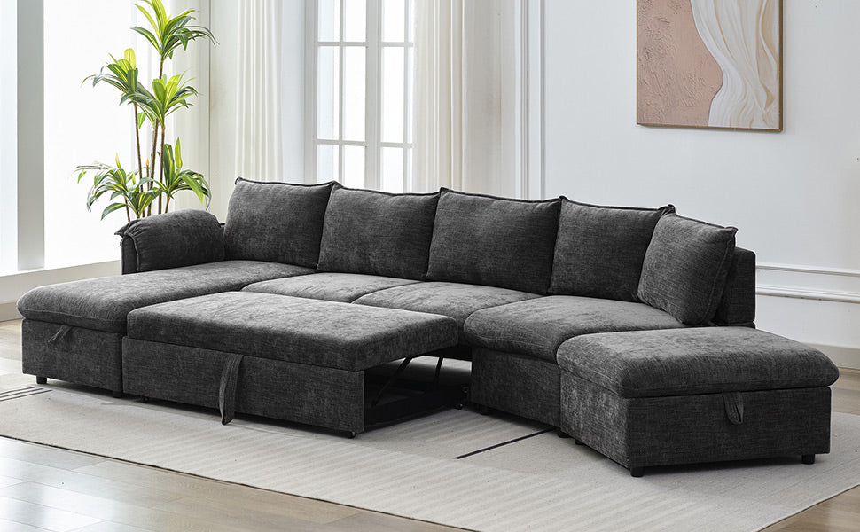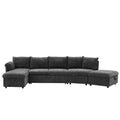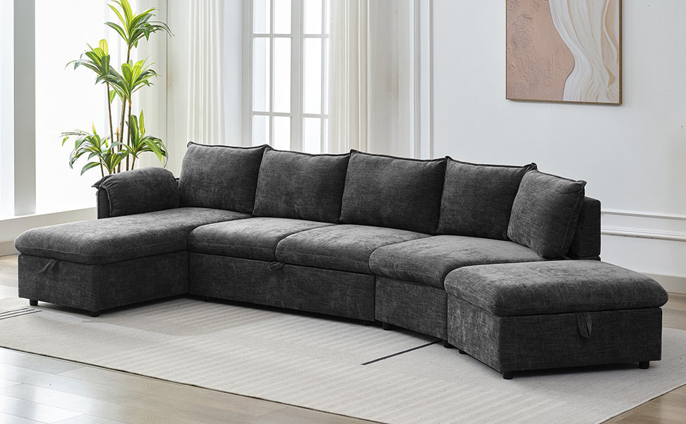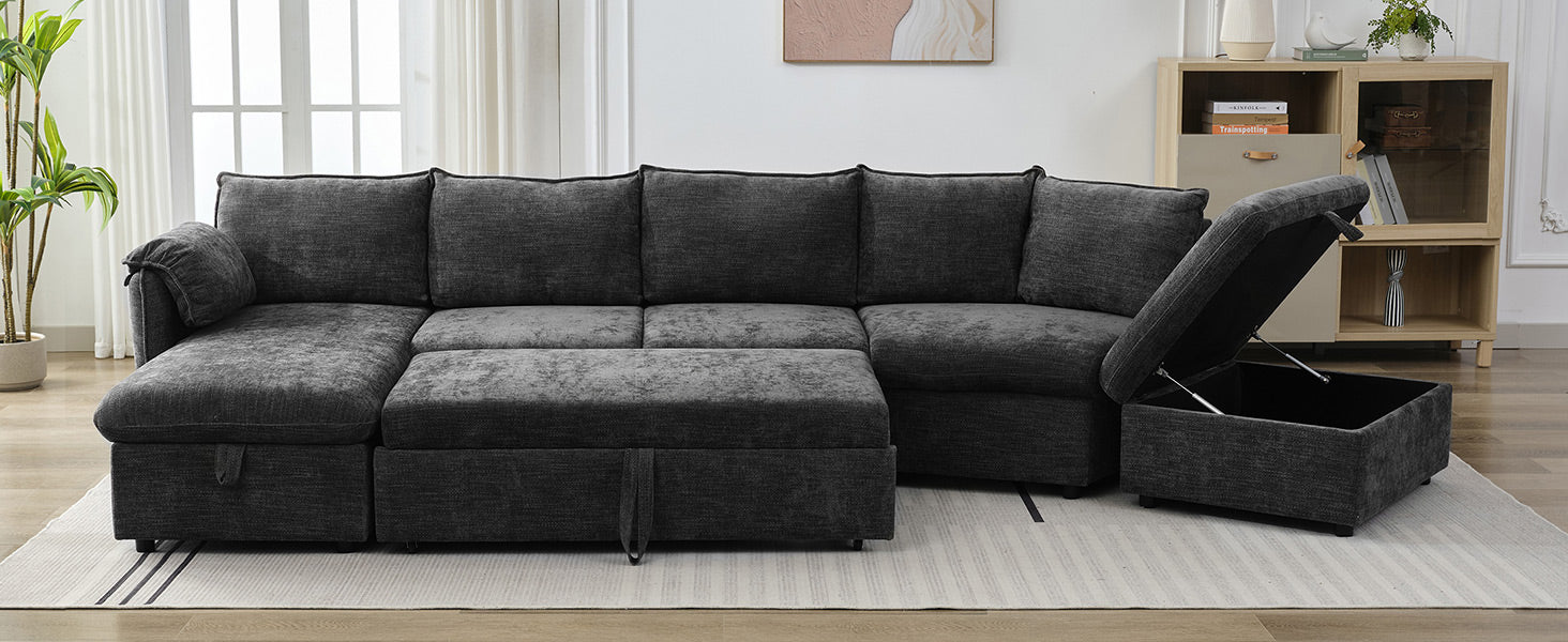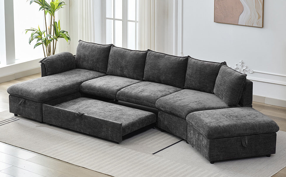 146.9" L Shaped Sofa Sectional Sofa Couch Pull Out Sofa Bed With A Movable Storage Ottoman, A Storage Chaise Lounge And Two Usb Ports For Living Room, Grey Grey Foam Linen 5 Seat