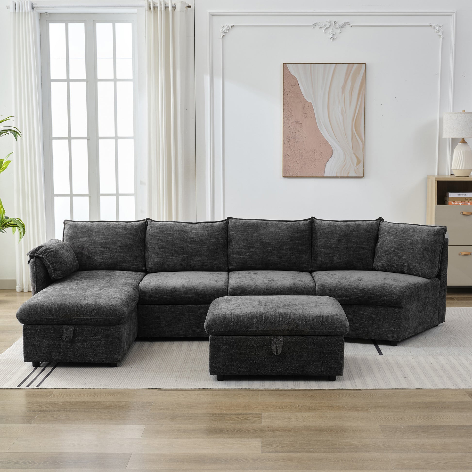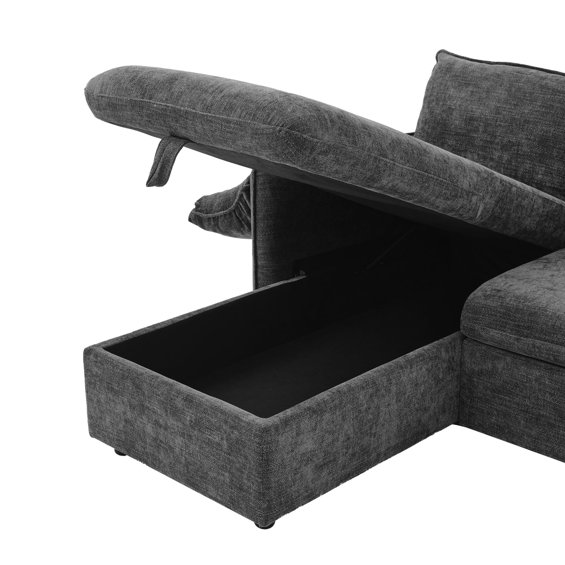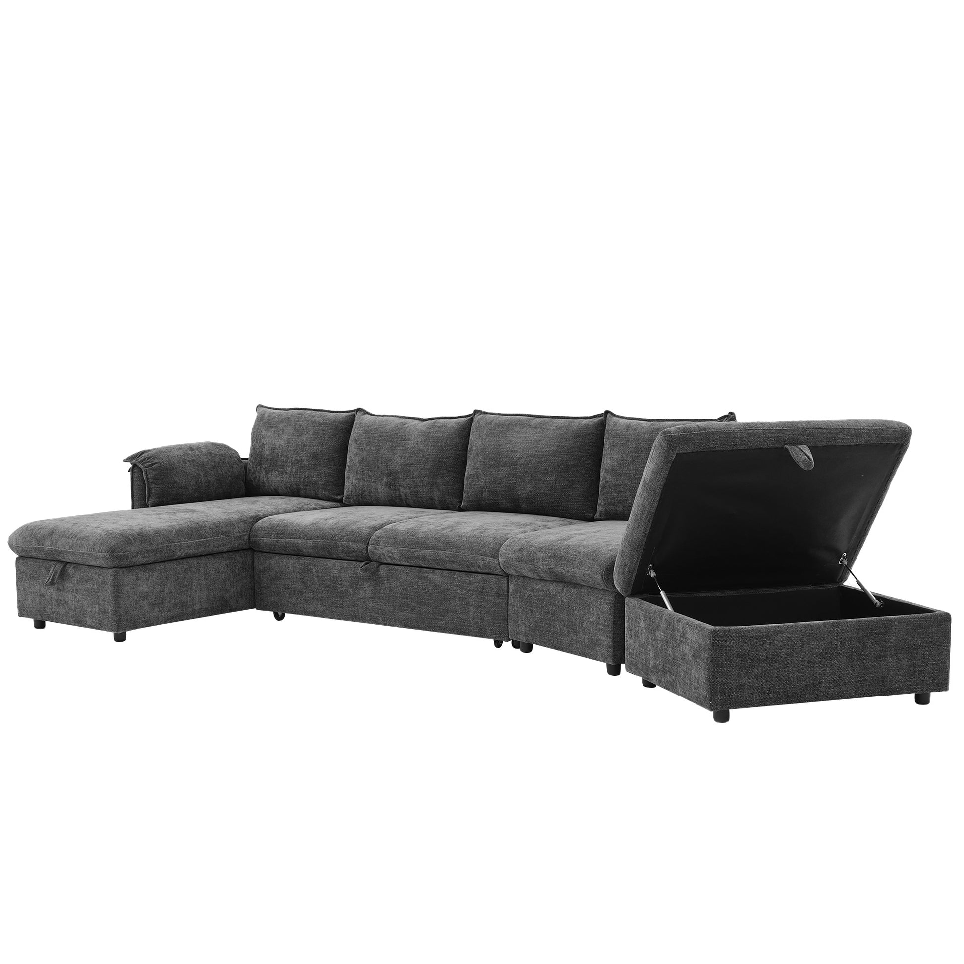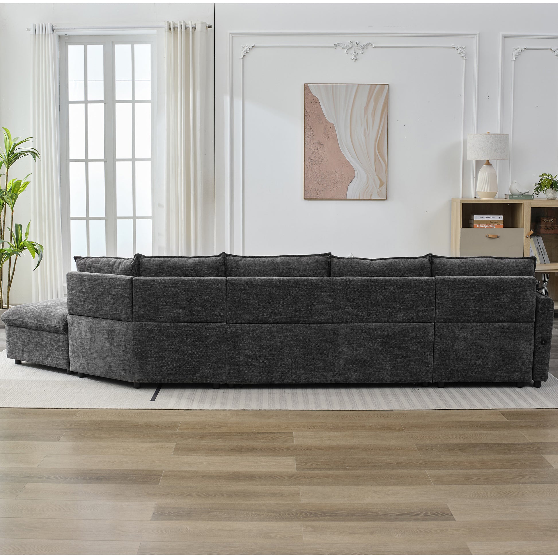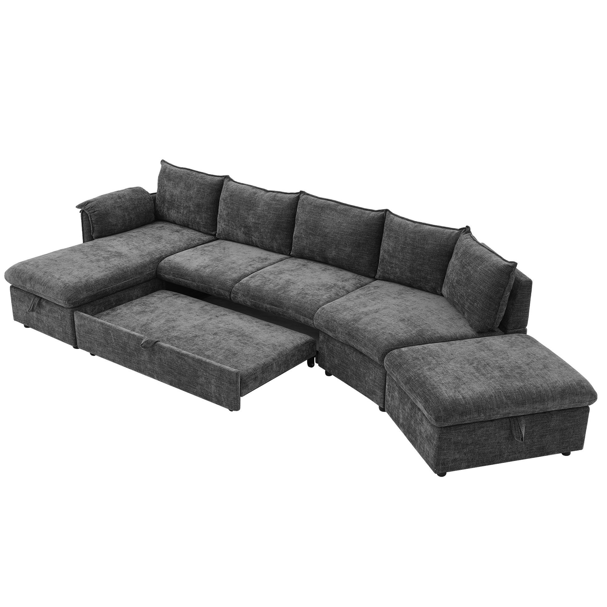 146.9" L Shaped Sofa Sectional Sofa Couch Pull Out Sofa Bed With A Movable Storage Ottoman, A Storage Chaise Lounge And Two Usb Ports For Living Room, Grey Grey Foam Linen 5 Seat
