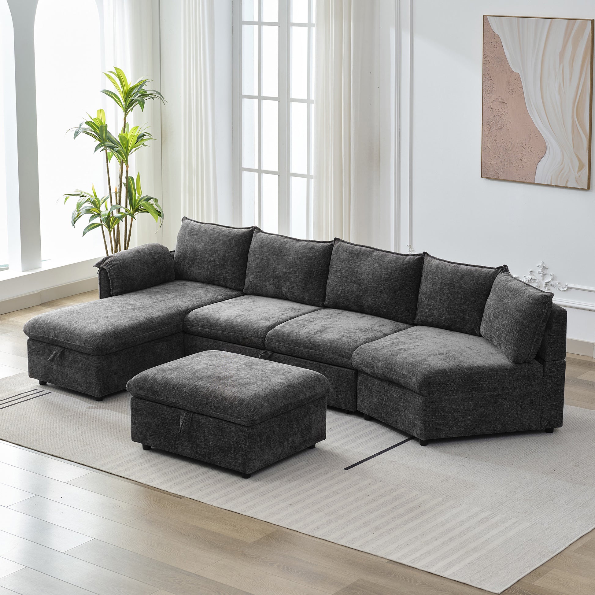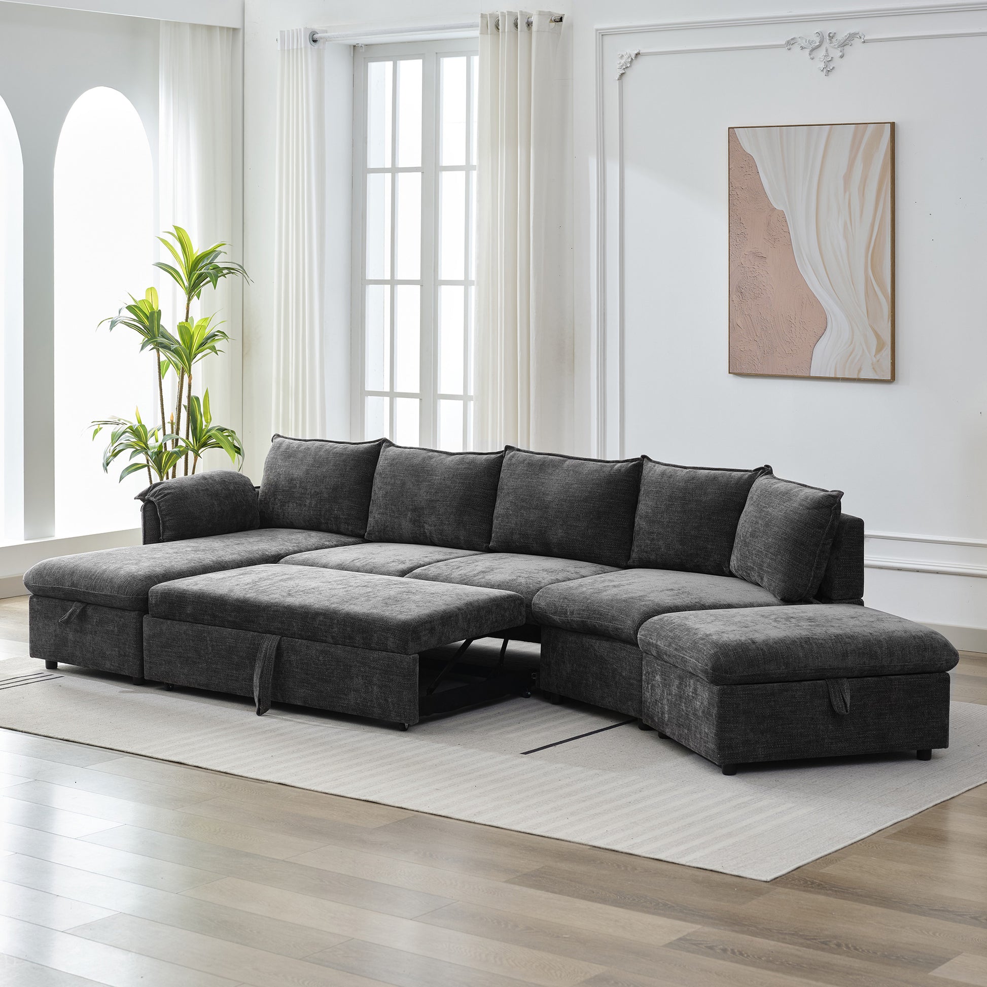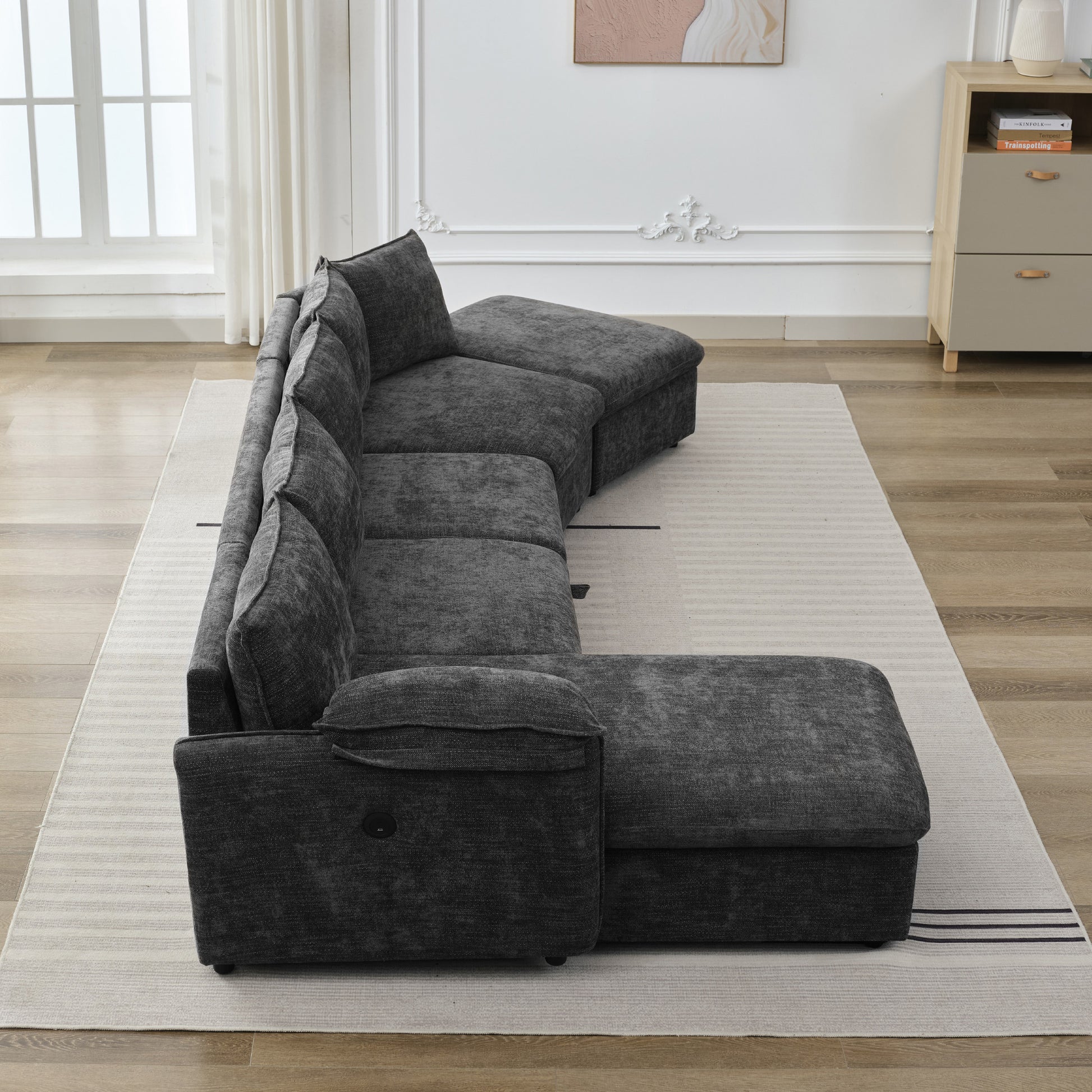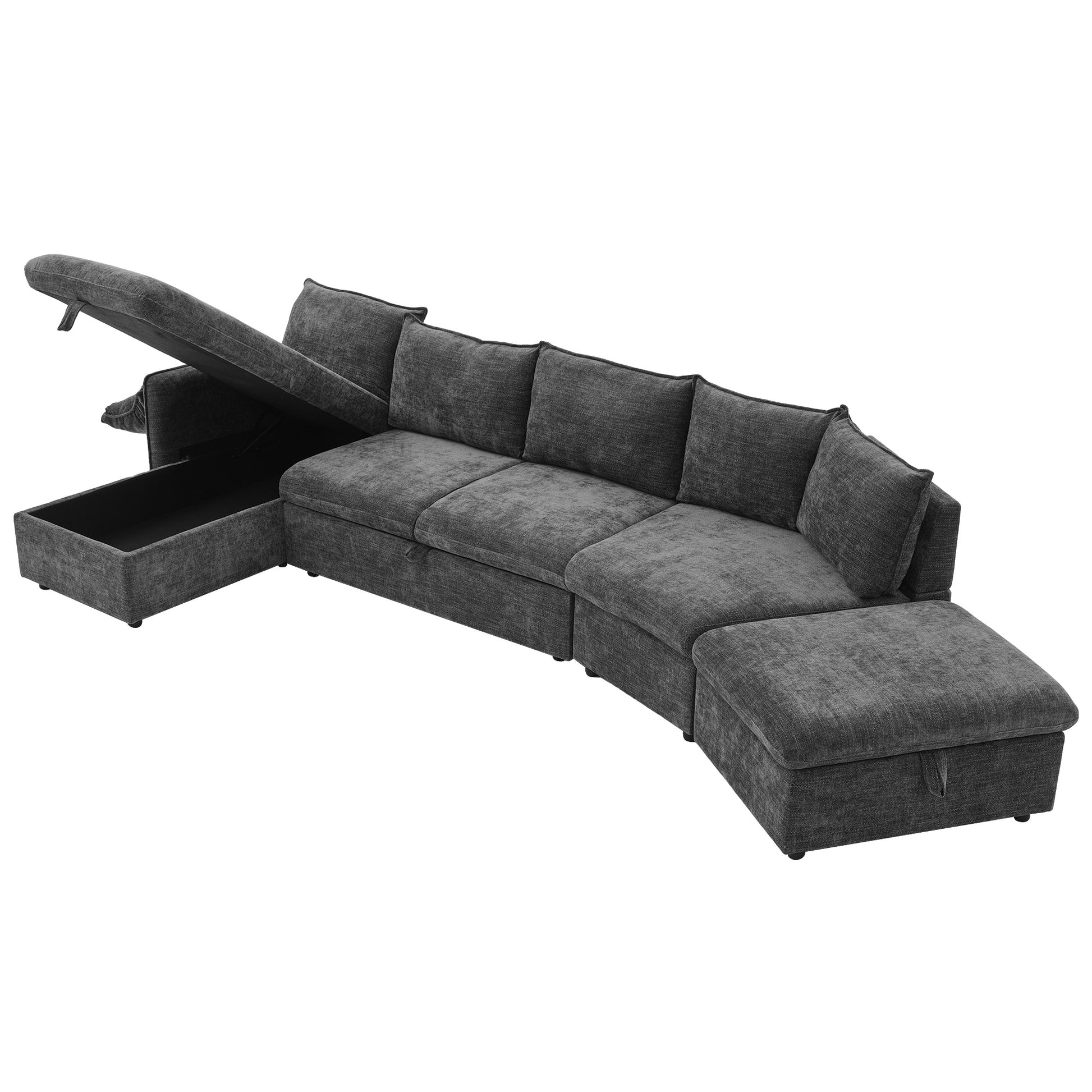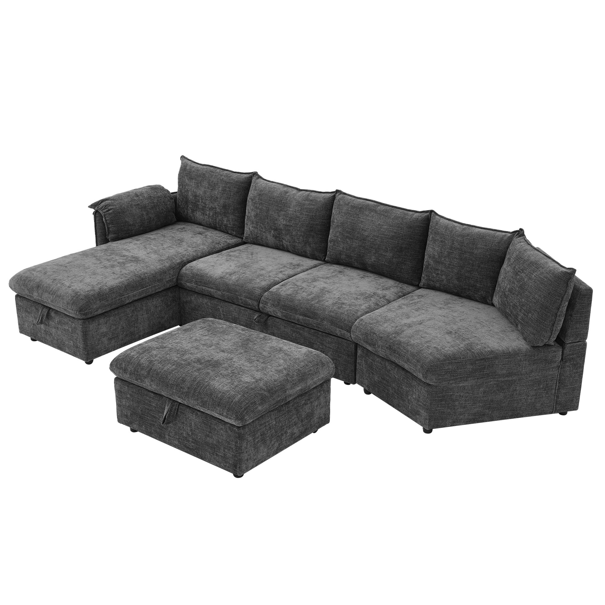 146.9" L Shaped Sofa Sectional Sofa Couch Pull Out Sofa Bed With A Movable Storage Ottoman, A Storage Chaise Lounge And Two Usb Ports For Living Room, Grey Grey Foam Linen 5 Seat