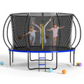 14Ft Outdoor Big Trampoline With Inner Safety Enclosure Net, Ladder, Pvc Spring Cover Padding, For Kids, Black&Blue Color Black Blue Metal