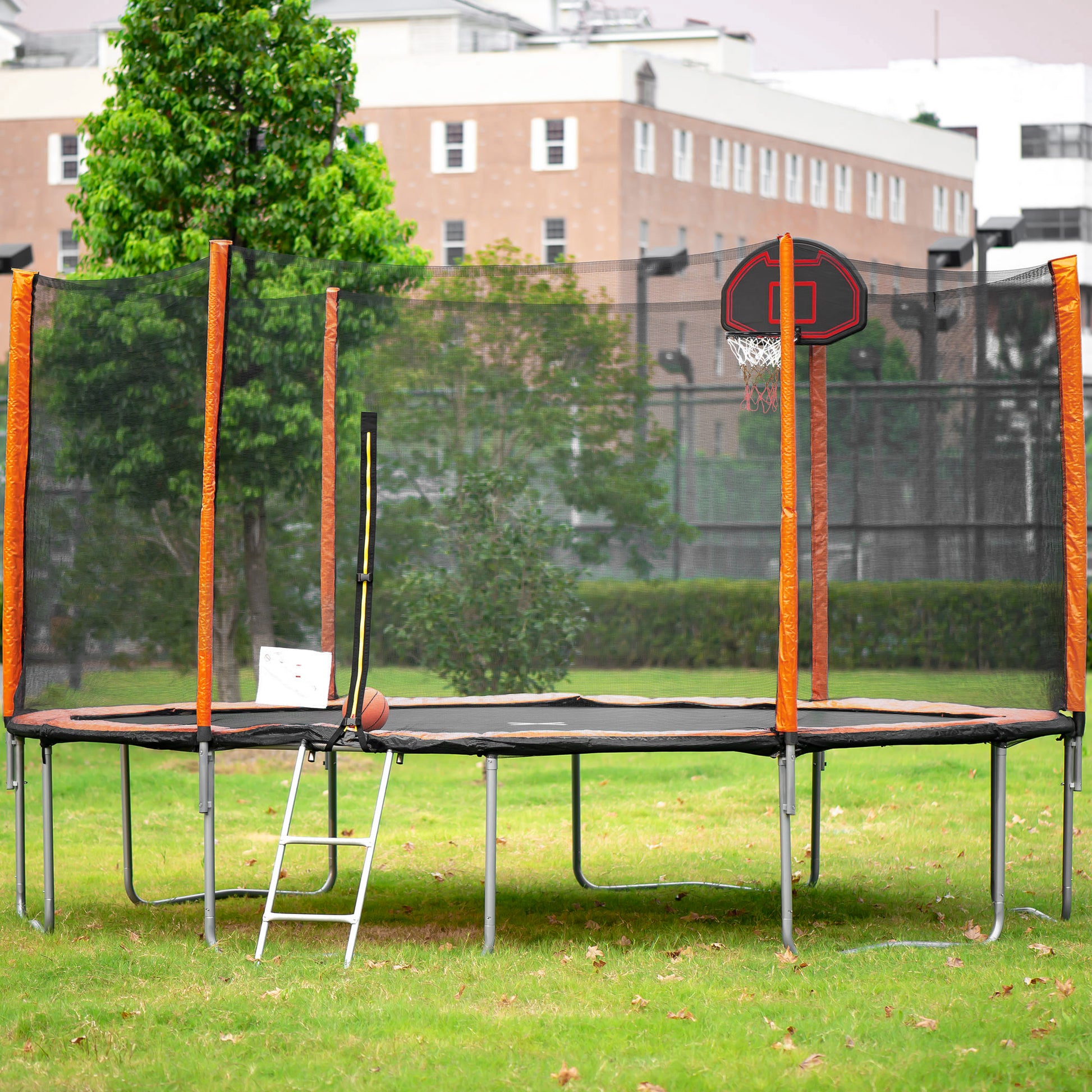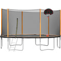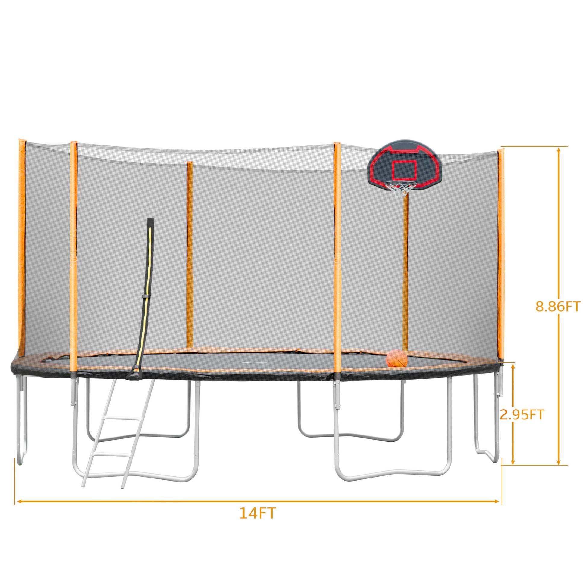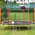 14Ft Powder Coated Advanced Trampoline With Basketball Hoop Inflator And Ladder Outer Safety Enclosure Orange Orange Steel