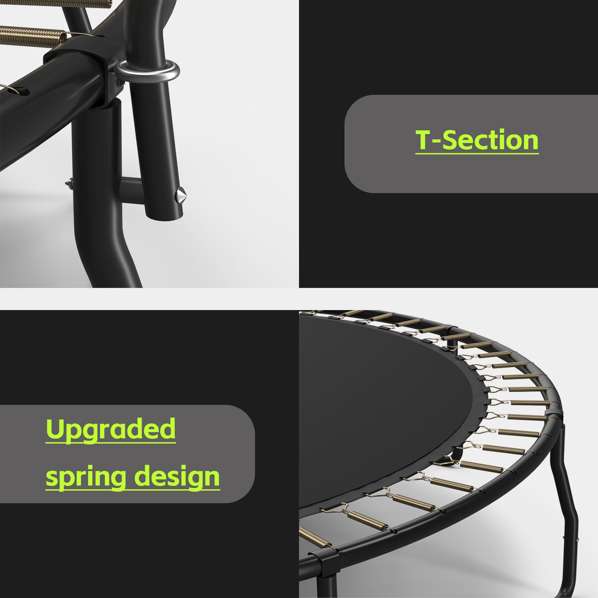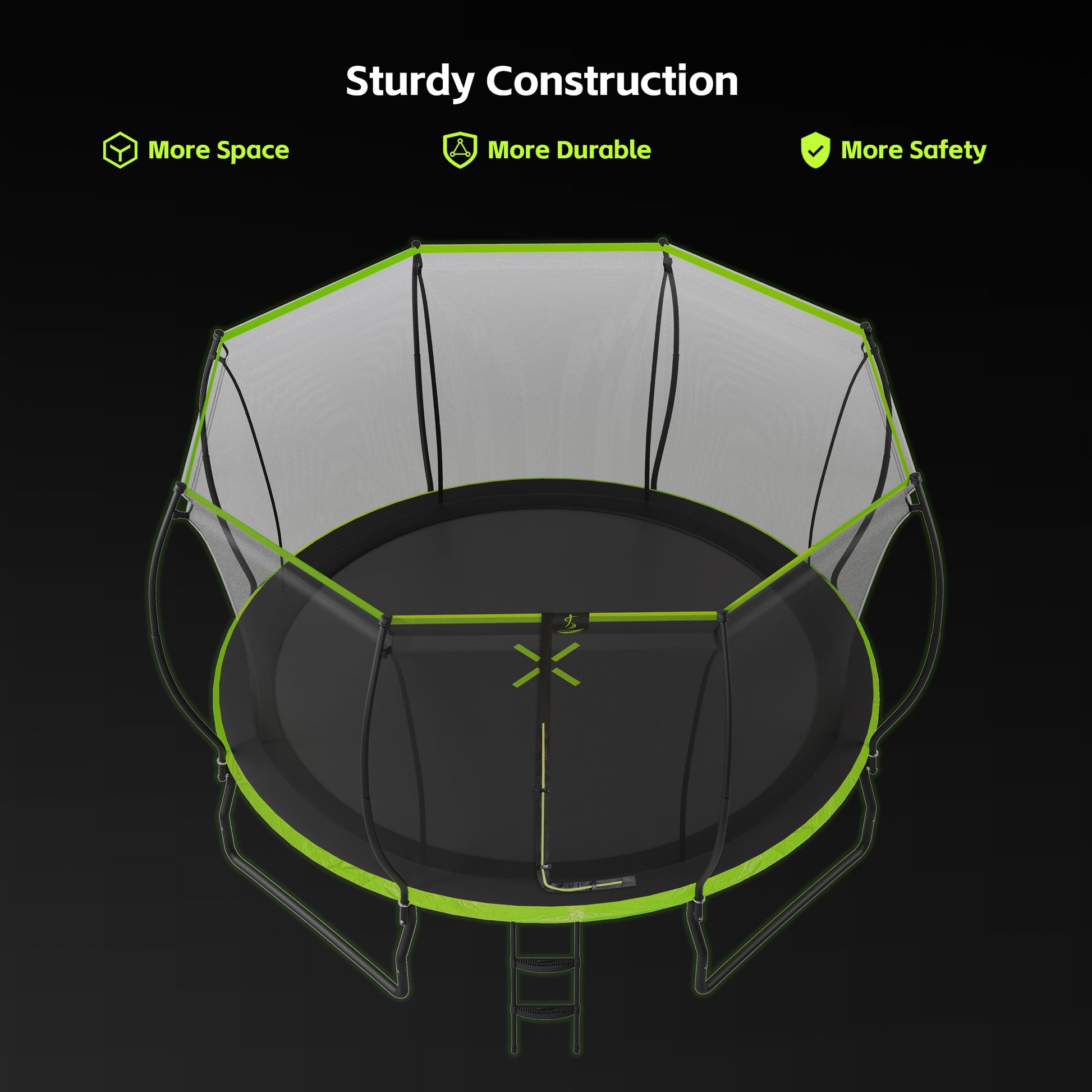 14Ft Trampoline For Kids With Upgraded Arc Composite Pole And Safety Enclosure Net, Ladder And 8 Wind Stakes, Round Outdoor Recreational Playset Balanced Physical Training Trampoline Green Metal