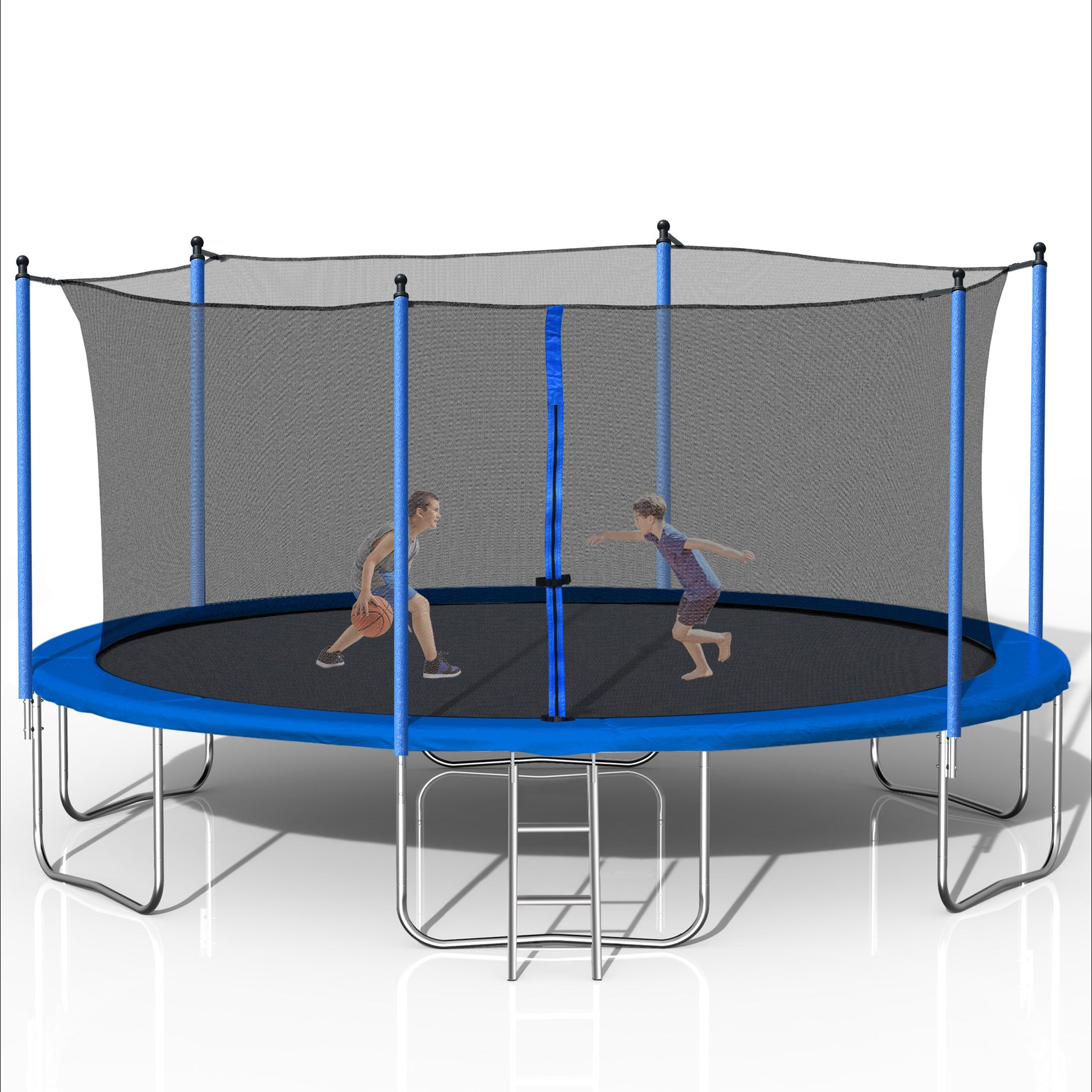 14Ft Trampoline With Safety Enclosure Net,Heavy Duty Jumping Mat And Spring Cover Padding For Kids And Adults, Ladder Blue Foam Iron Plastic