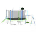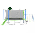 14Ft Trampoline With Slide And Swings, Astm Approved Large Recreational Trampoline With Basketball Hoop And Ladder,Outdoor Backyard Trampoline With Net, Capacity For Kids And Adults Green Metal
