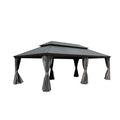 14X22Ft Hardtop Gazebo, Outdoor Gazebo With Galvanized Steel Double Roof, Aluminum Frame, Built In Gutter System, Curtain And Netting, Metal Gazebo Pavilion For Patio Deck Garden, Grey Grey Aluminum