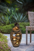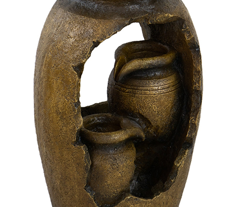 15.4X11.8X32.7" Traditional Rustic Decorative 3 Tier Brown Water Fountain With Pot Design, With Light And Pump, For Indoor And Outdoor Brown Garden & Outdoor Farmhouse,French Country,Pastoral,Rustic,Traditional Polyresin