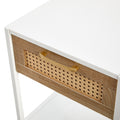 15.74" Rattan End Table With Drawer, Modern Nightstand, Metal Legs,Side Table For Living Room, Bedroom,White 1 Pc White Mdf Metal