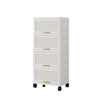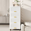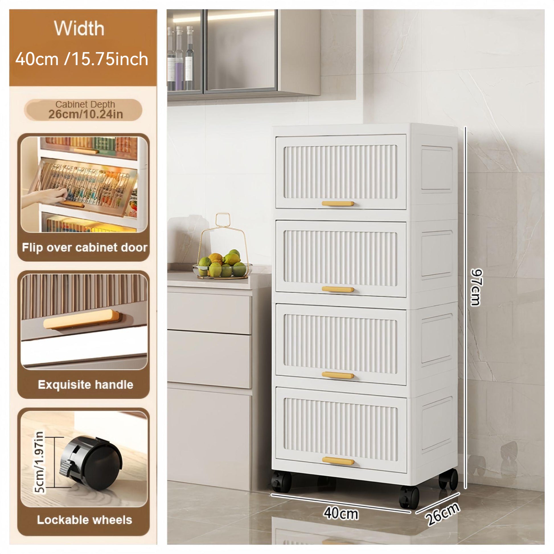 15.75" Side Wide 4 Layers Flip Open Storage Box With Wheels, Movable Storage Cabinet, Kitchen Shelf, Movable Storage Island, Home Organization, Wardrobe Storage Box White Plastic