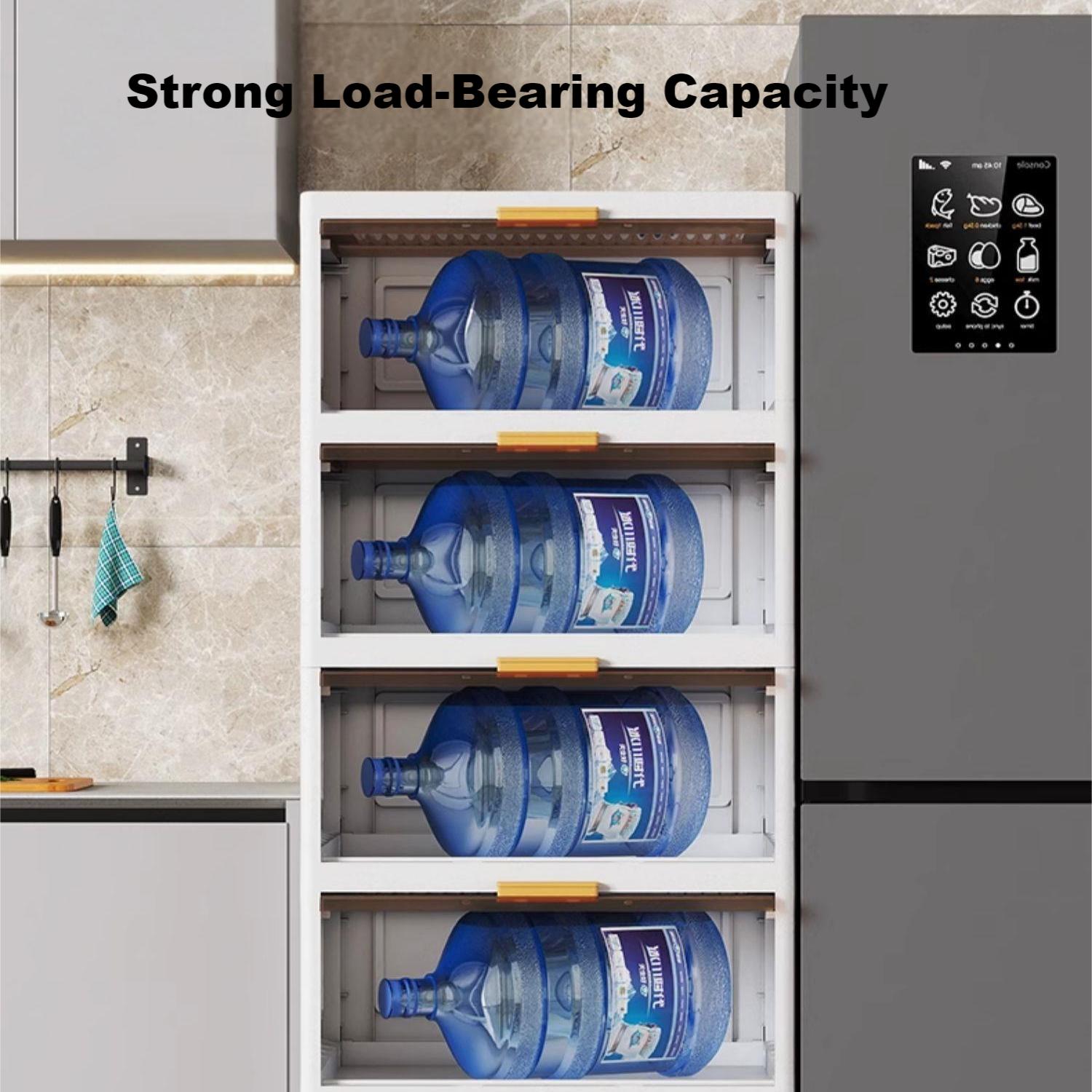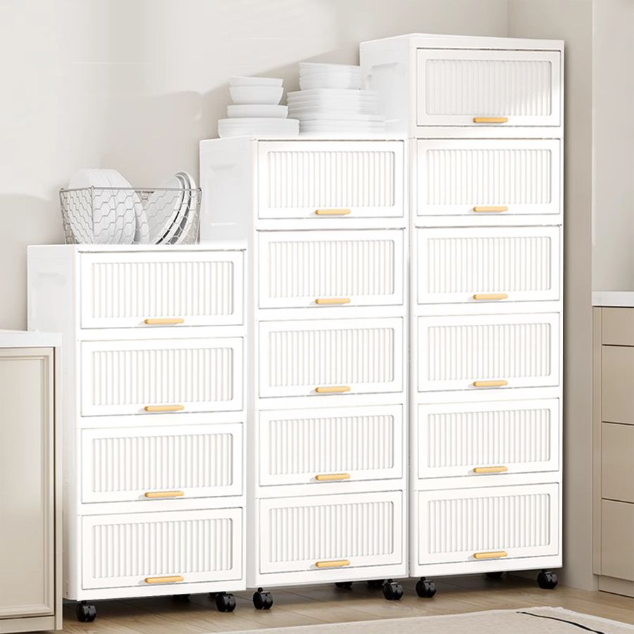 15.75" Side Wide 5 Layers Flip Open Storage Box With Wheels, Movable Storage Cabinet, Kitchen Shelf, Movable Storage Island, Home Organization, Wardrobe Storage Box White Plastic