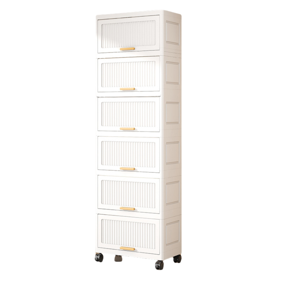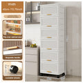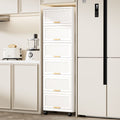 15.75" Side Wide 6 Layers Flip Open Storage Box With Wheels, Movable Storage Cabinet, Kitchen Shelf, Movable Storage Island, Home Organization, Wardrobe Storage Box White Plastic