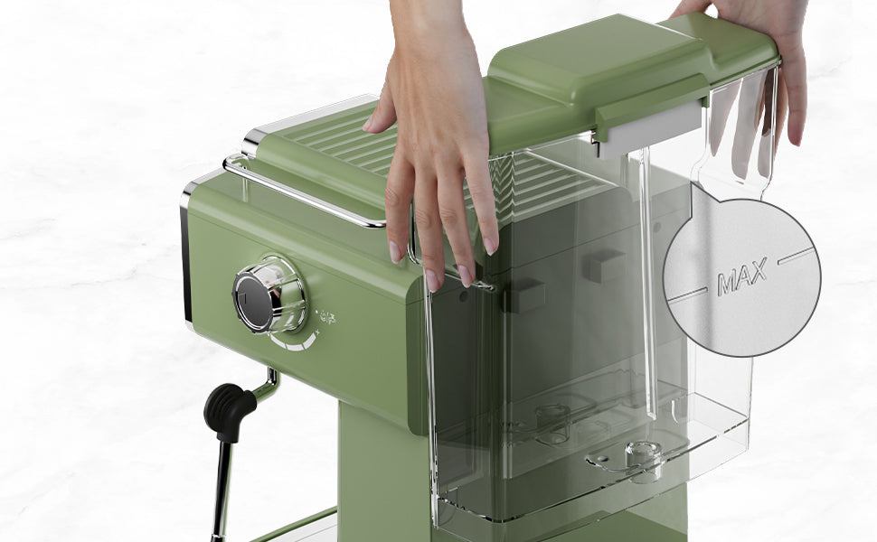 15 Bar Espresso Coffee Machine With Milk Frother Steam Wand, 1350W Professional Coffee Maker, 54 Oz Removable Water Tank Espresso Maker Cappuccino, Latte, Machiato, Green, For Home Barista Green Plastic