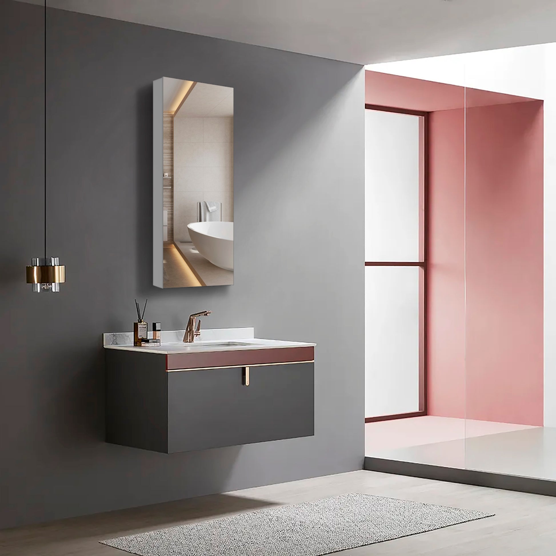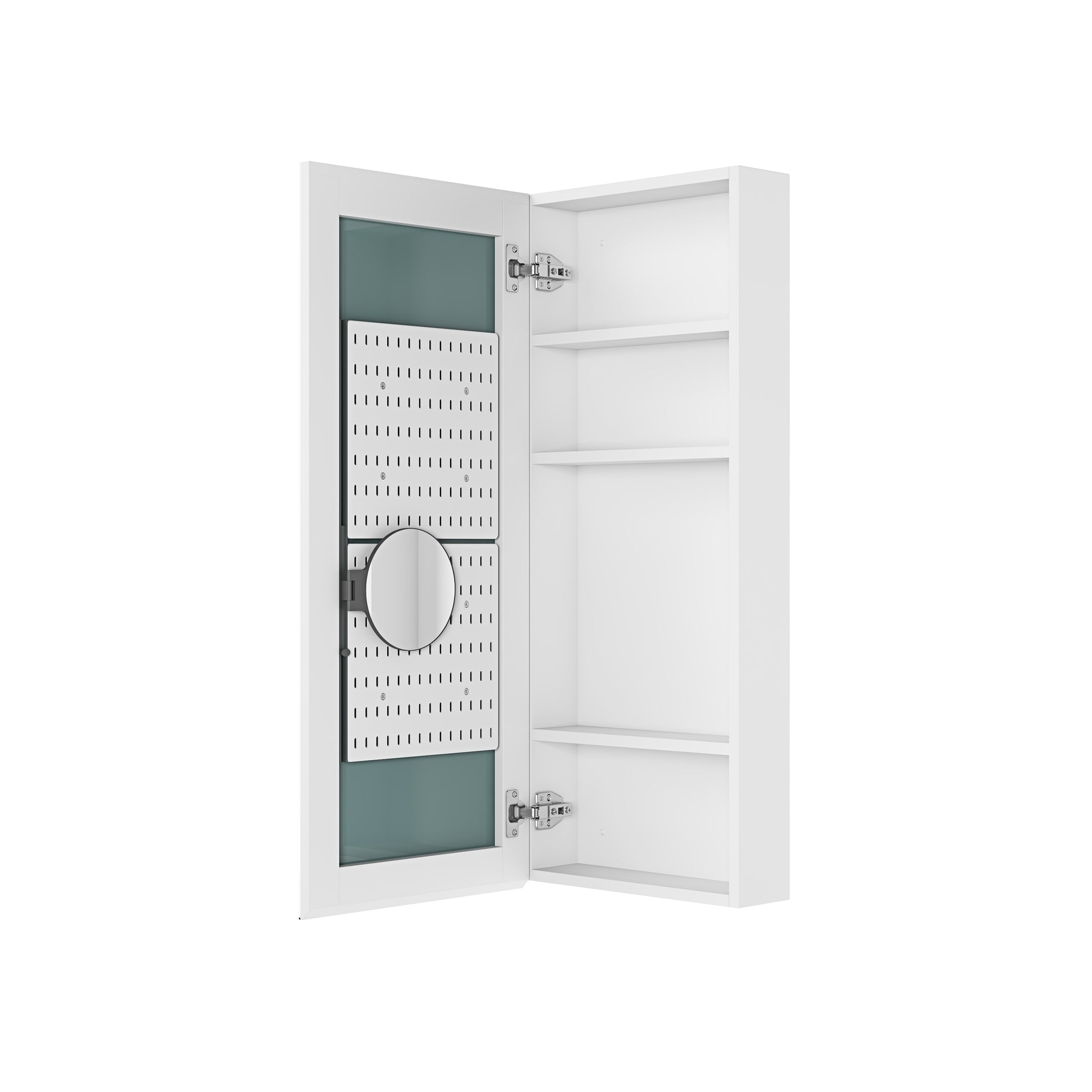 15" W X 36" H Single Door Bathroom Medicine Cabinet With Mirror, Recessed Or Surface Mount Bathroom Wall Cabinet, Beveled Edges,Silver White Engineered Wood