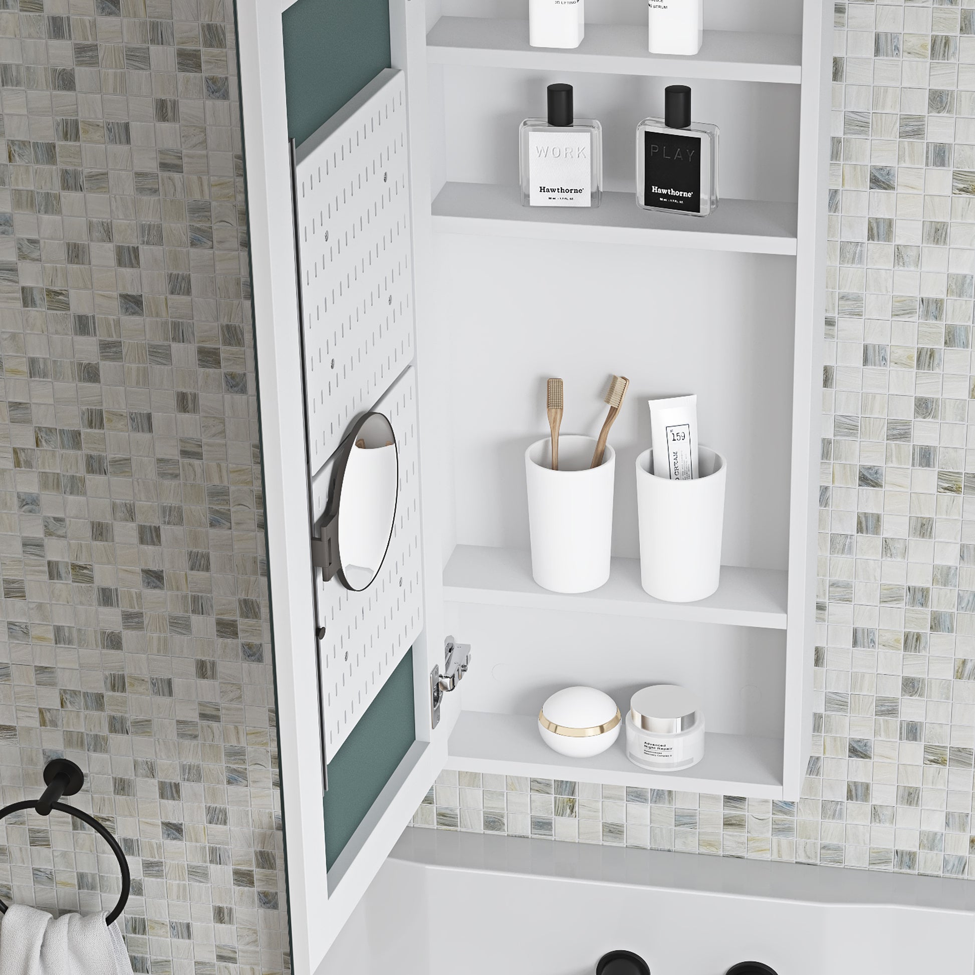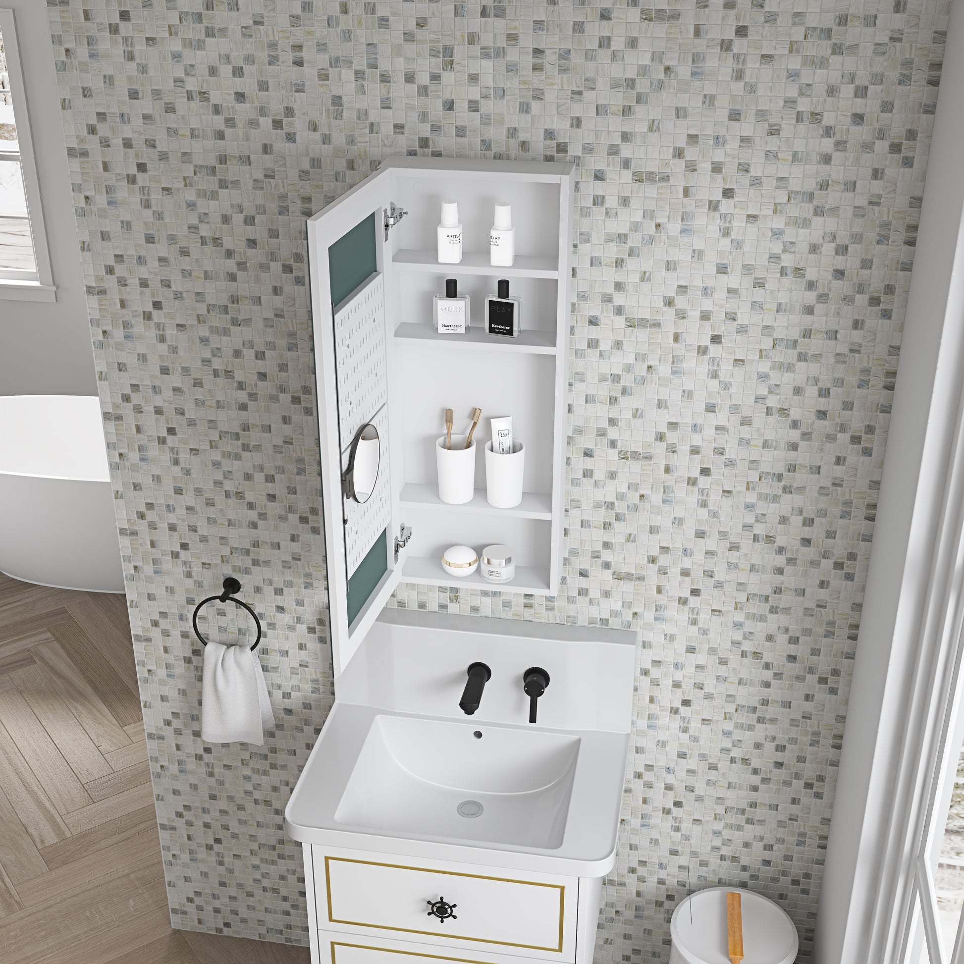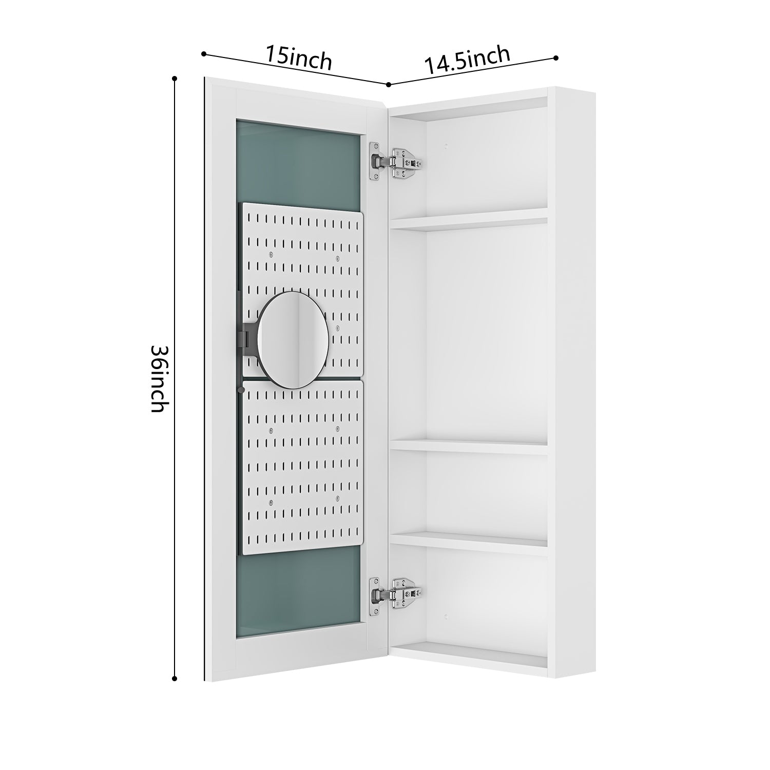 15'' W X 36'' H Surface Frameless Mirror Bathroom Medicine Cabinet, Left Opening Door White Engineered Wood