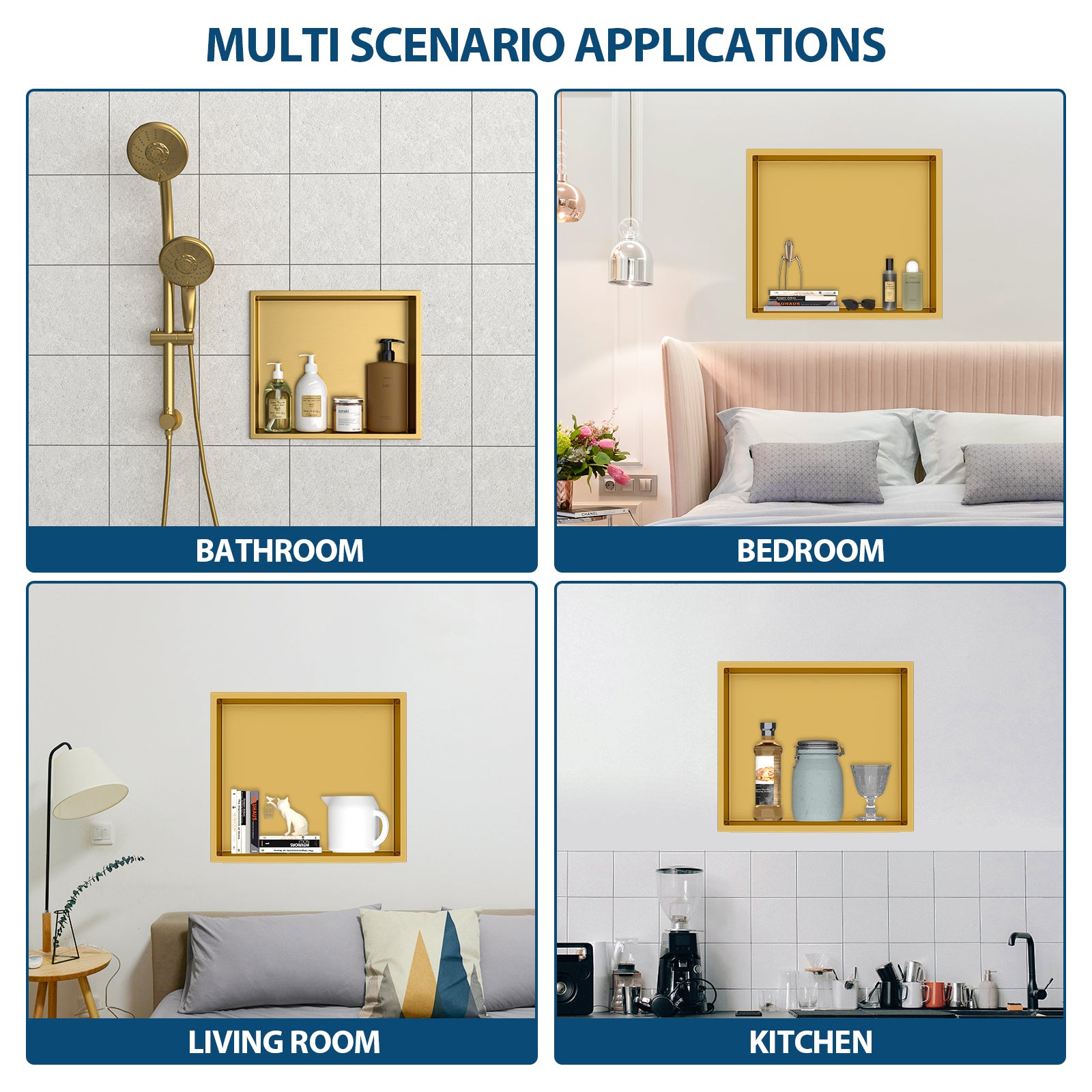 15" X 13" Stainless Steel Shower Niche, Gold Gold Stainless Steel