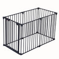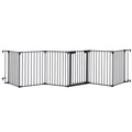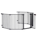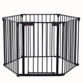 150" Adjustable Safety Gate 6 Panels Play Yard Metal Doorways Fireplace Fence Christmas Tree Fence Gate For House Stairs Gate Prohibited Area Fence Black Steel