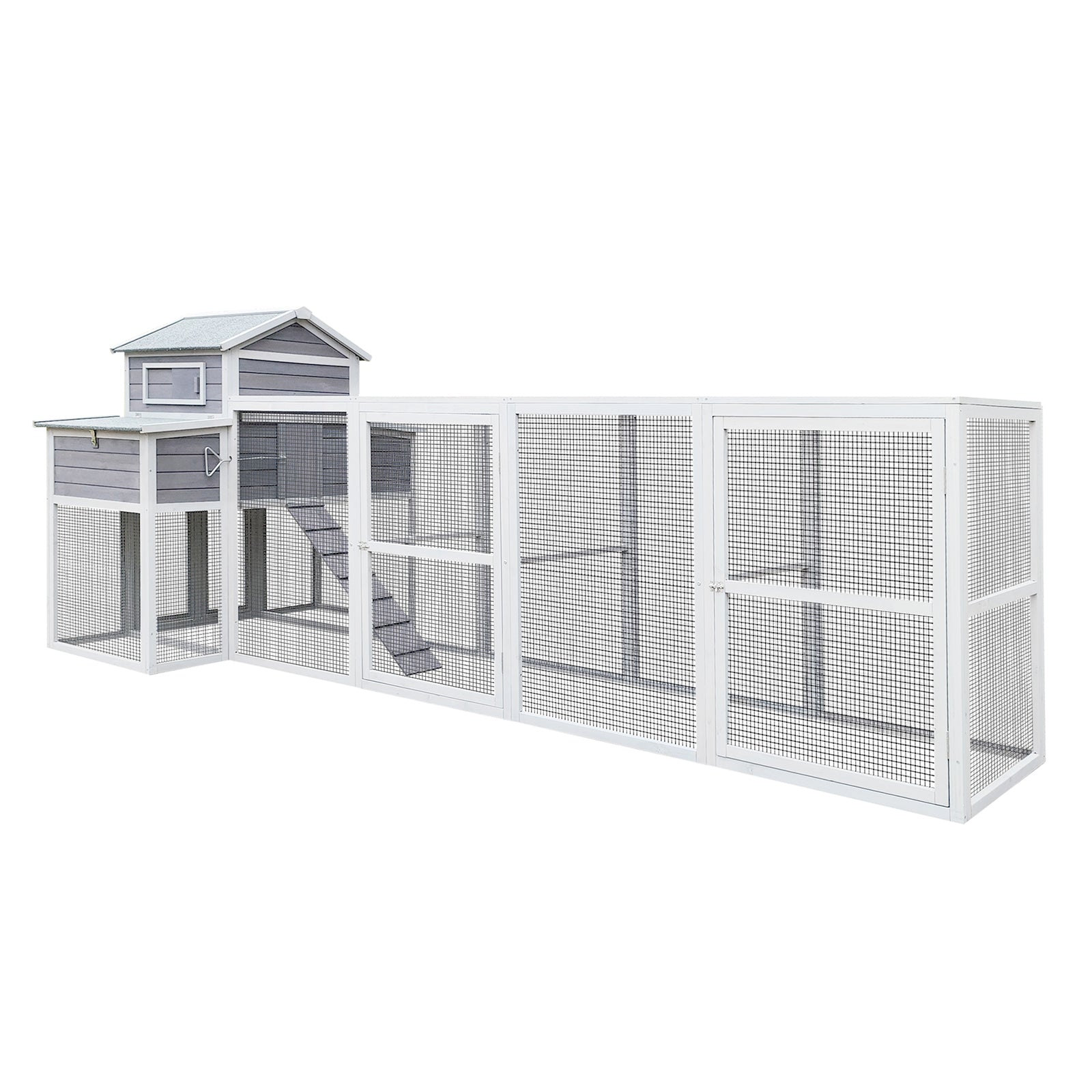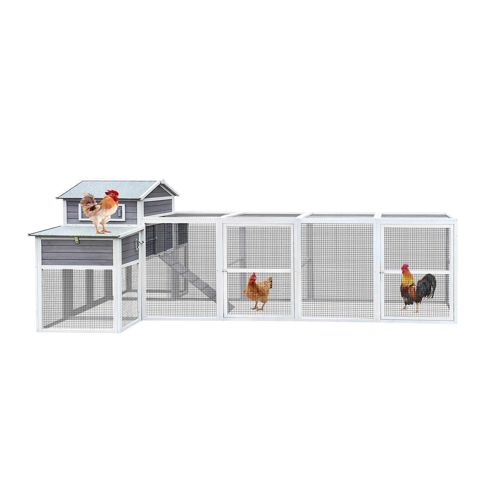 150 Chicken Coop Extra Large Chicken House, Wooden Hen House Black Rust Proof Metal Wire Poultry Cage With Two Nesting Boxes, 5 Perches Gray Wood