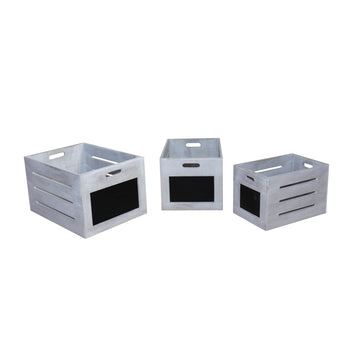 16, 14, 13 Inch Wood Box, Chalkboard Inserts, Set Of 3, White And Black Black Gray Wood