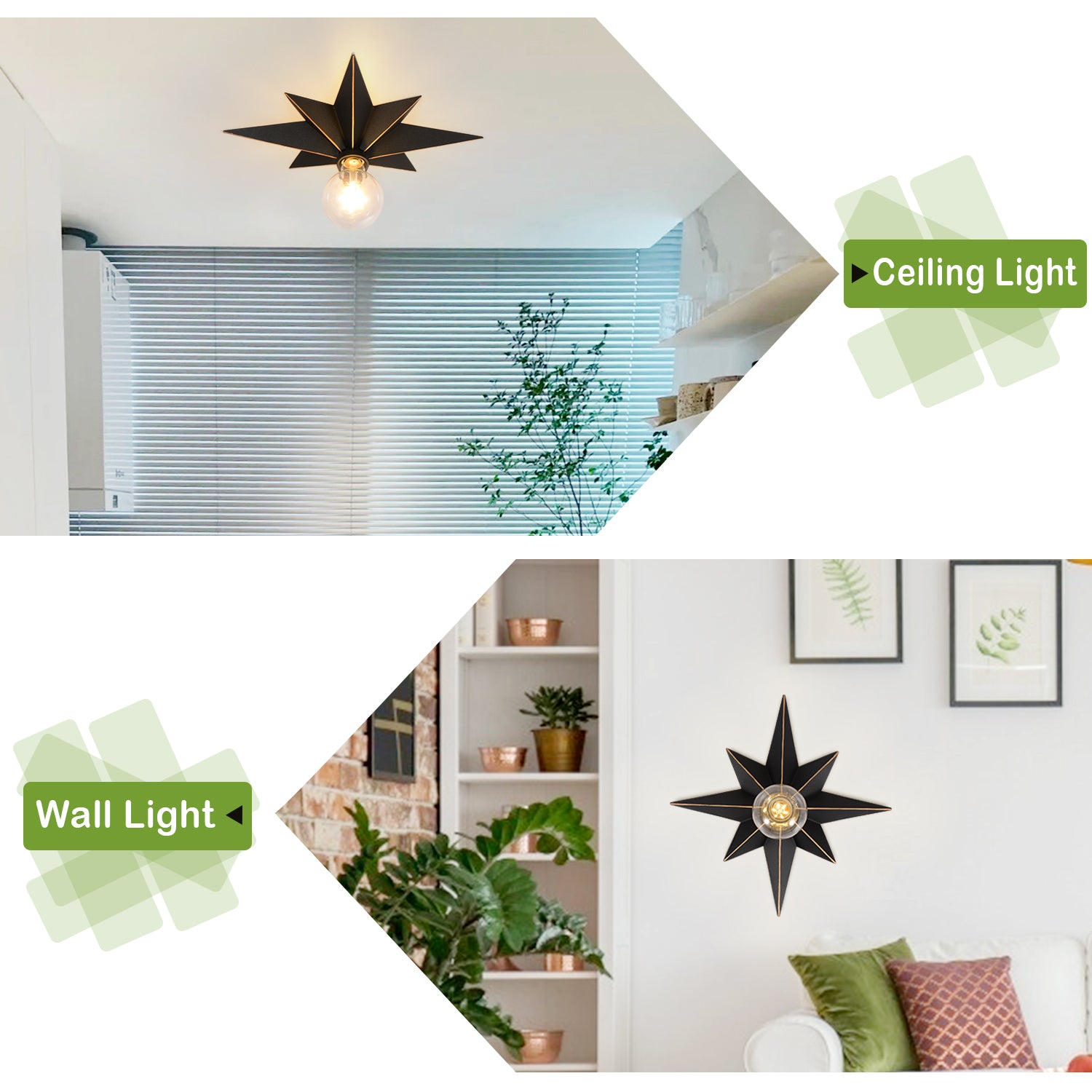 16 Inch Flush Mount Ceiling Light, Industrial Black Metal Star Ceiling Lights Black Metal