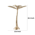 16 Inch Tall Artisan Candle Holder Inspired By A Palm Tree, Iron, Gold Gold Iron