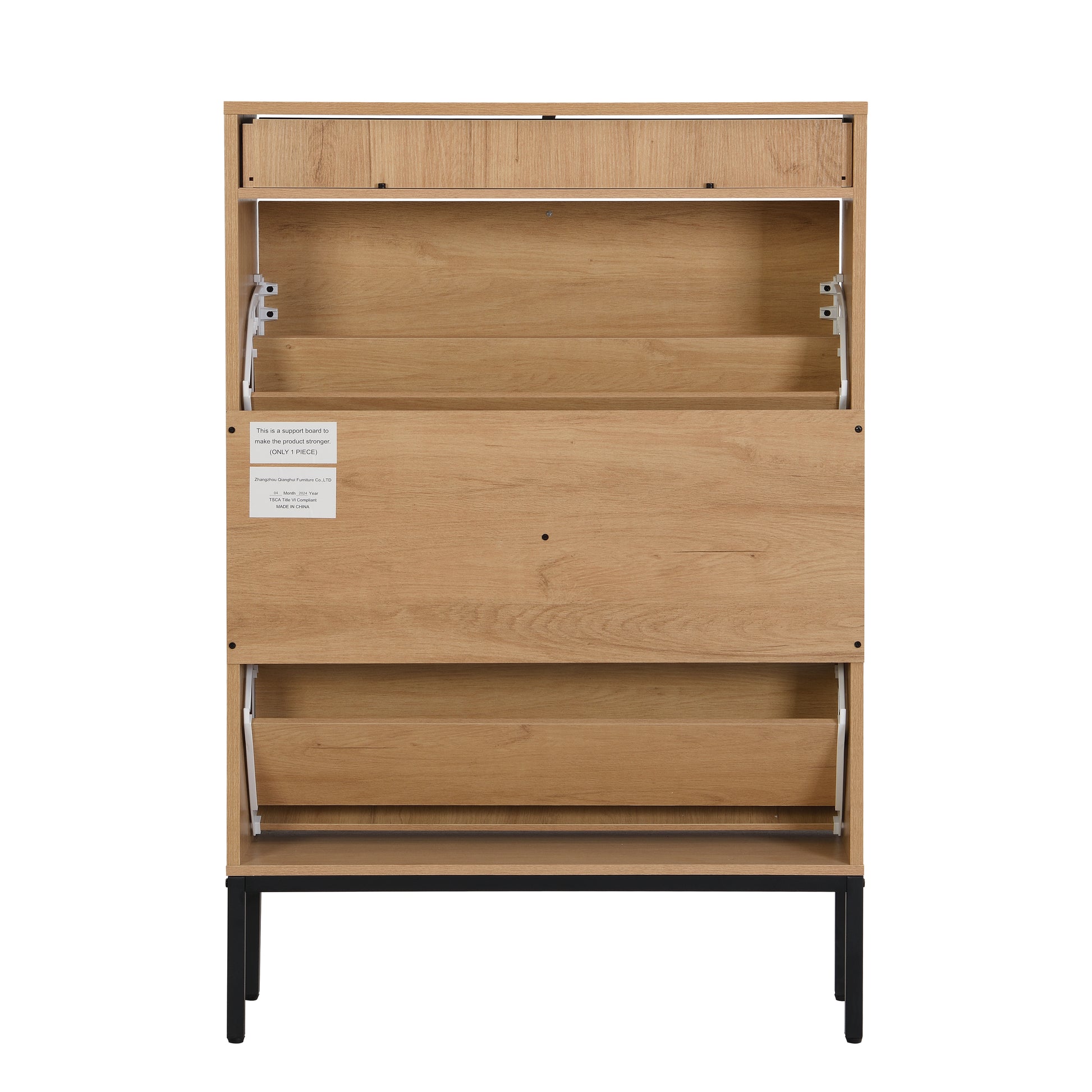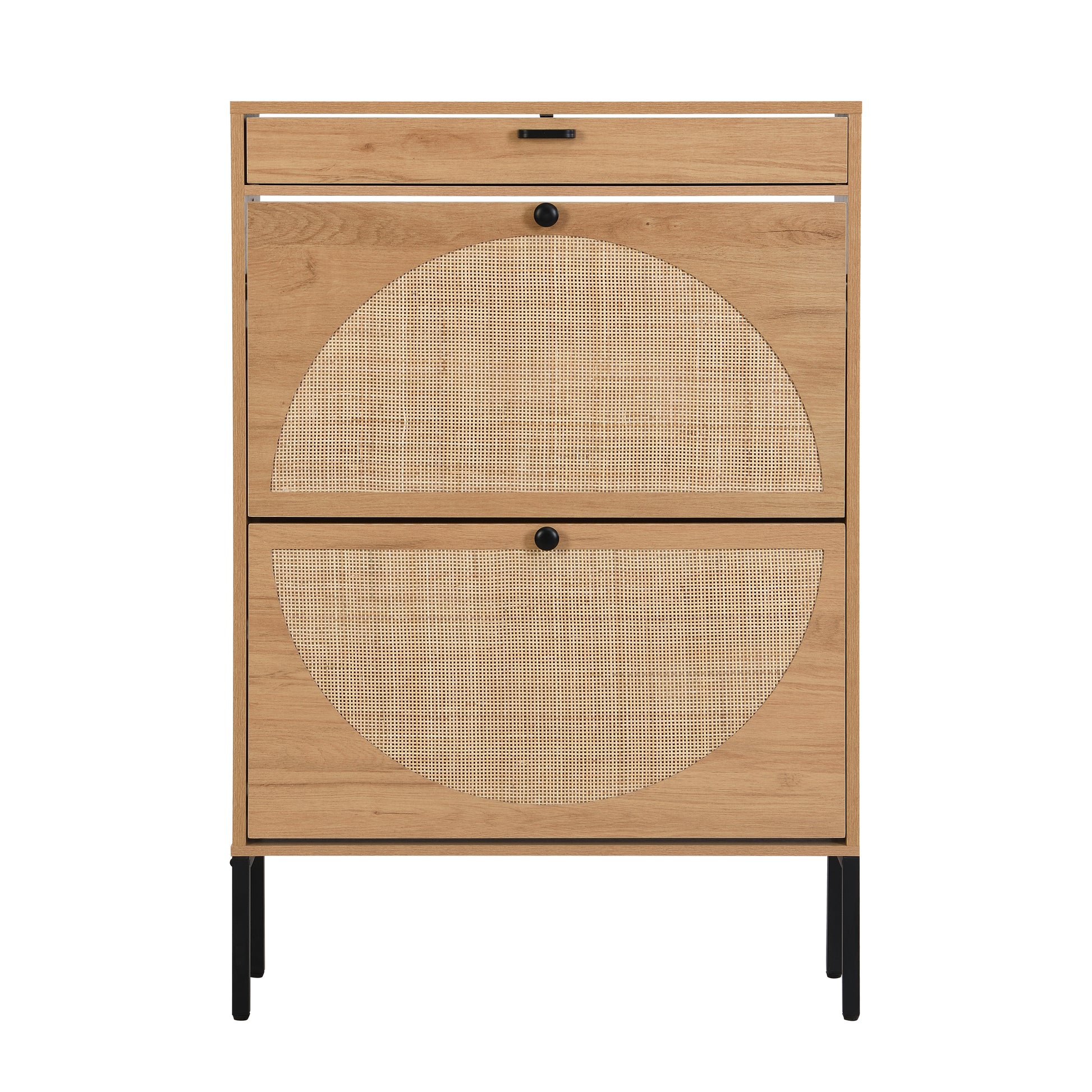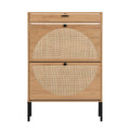 16 Pair Large Shoe Storage Cabinet Nature Rattan Drawer Brown Oak Mdf Metal