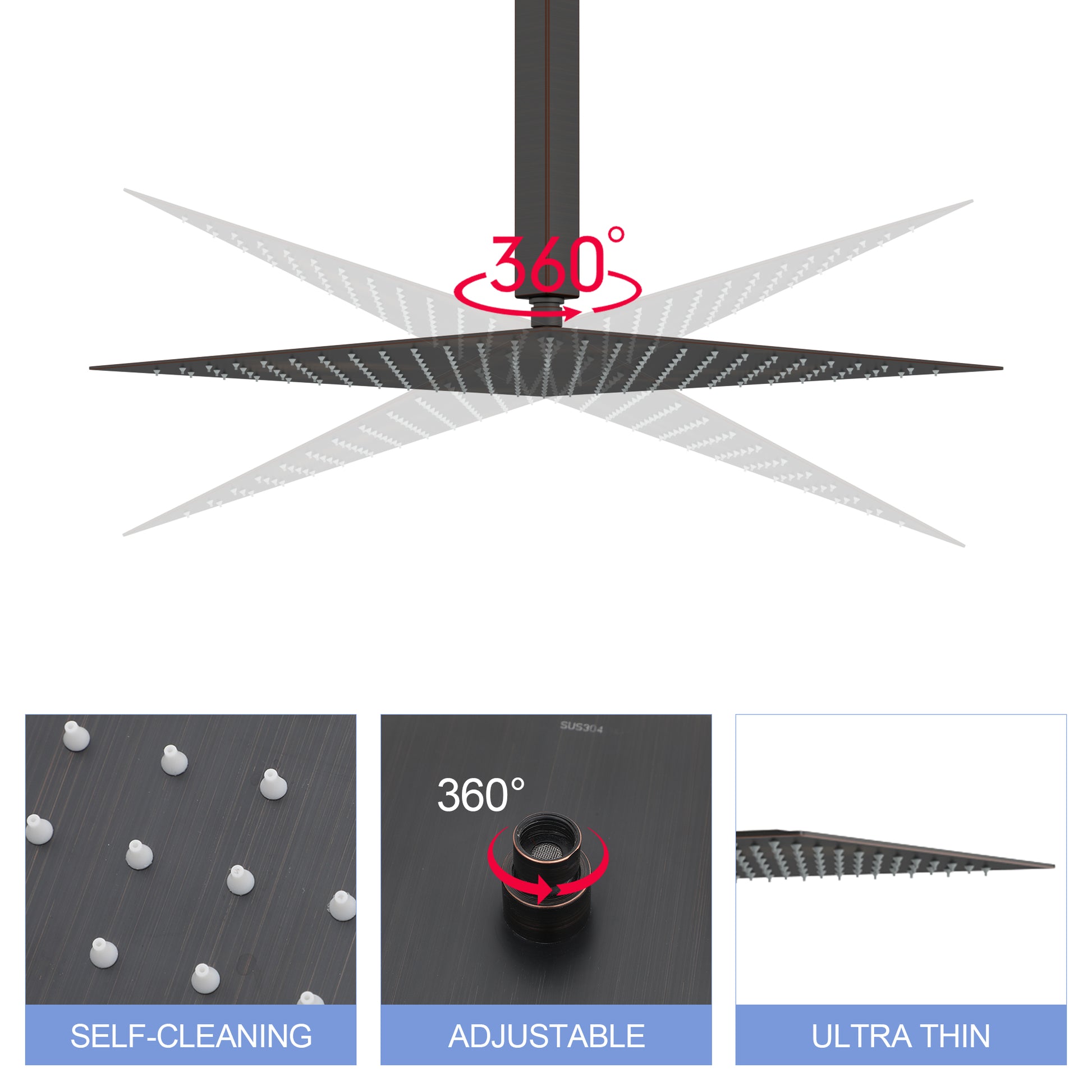 16" Square Rainfall Shower Head, Wall Ceiling Mounted, Oil Rubbed Bronze Oil Rubbed Bronze Stainless Steel