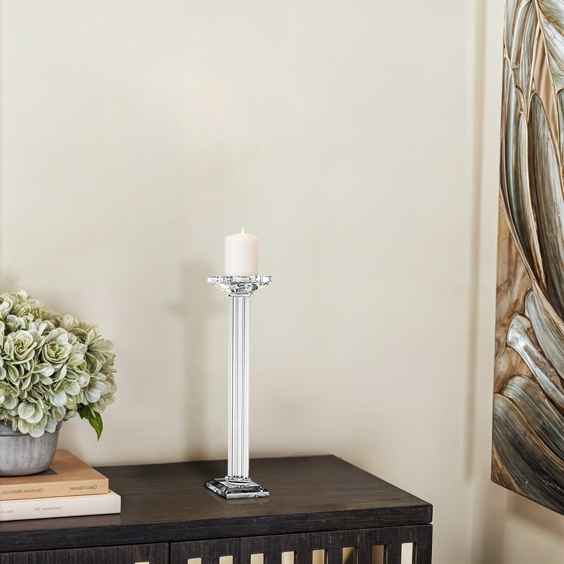 17 Inch Tall Pillar Candle Holder, Glass, Classic Clean Lined Finish, Clear Clear Glass