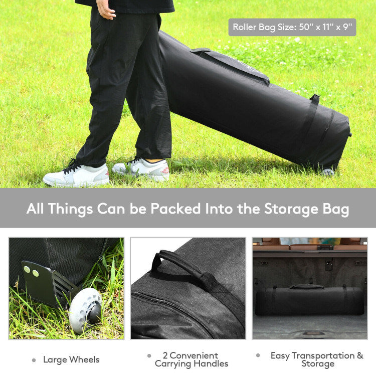 17 X 10 Feet Foldable Pop Up Canopy With Adjustable Dual Awnings White Oxford Fabric