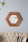 18.5" X 18.5" Hexagon Mirror With Natural Wood Frame, Wall Decor For Living Room Bathroom Hallway Natural Wood Glass