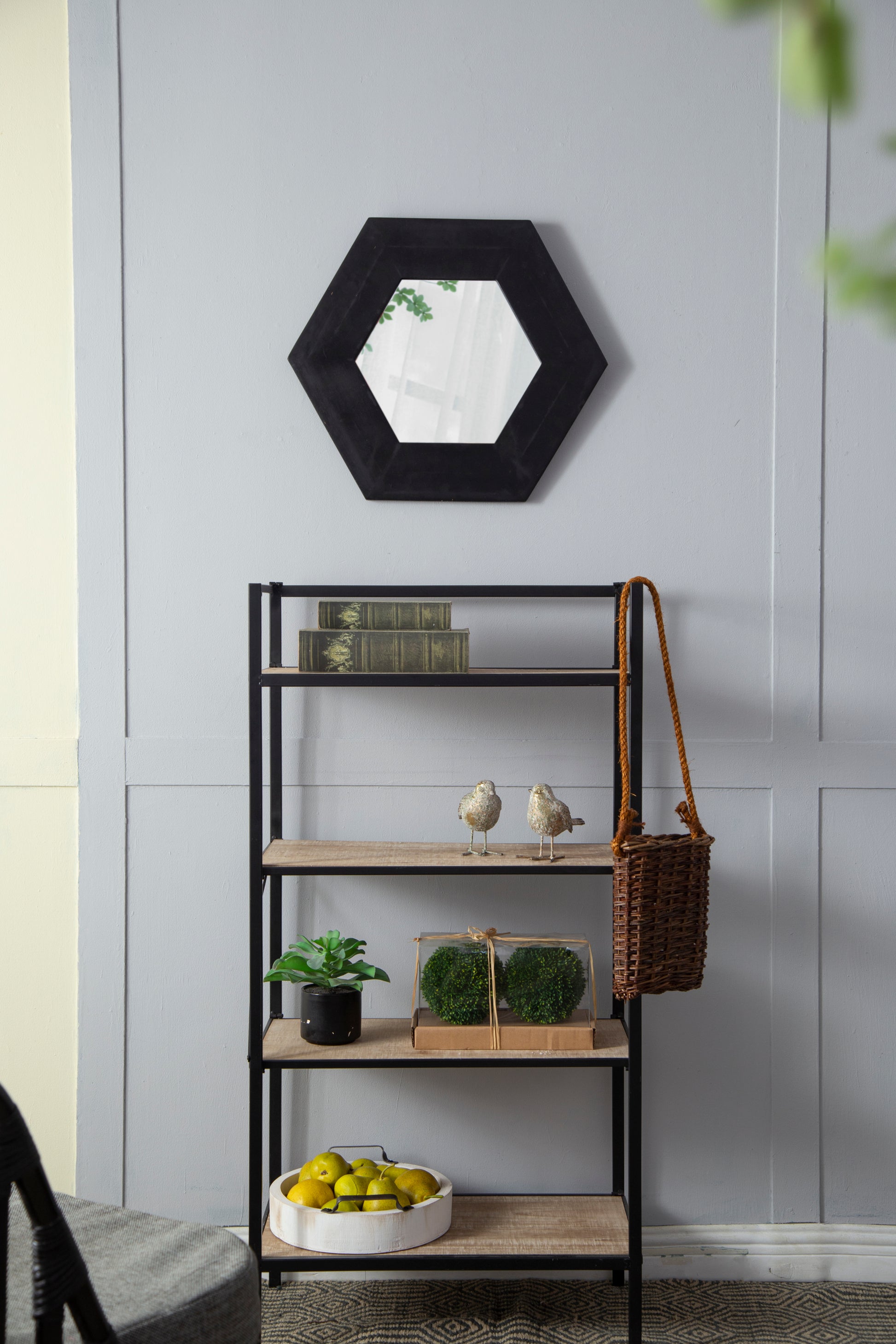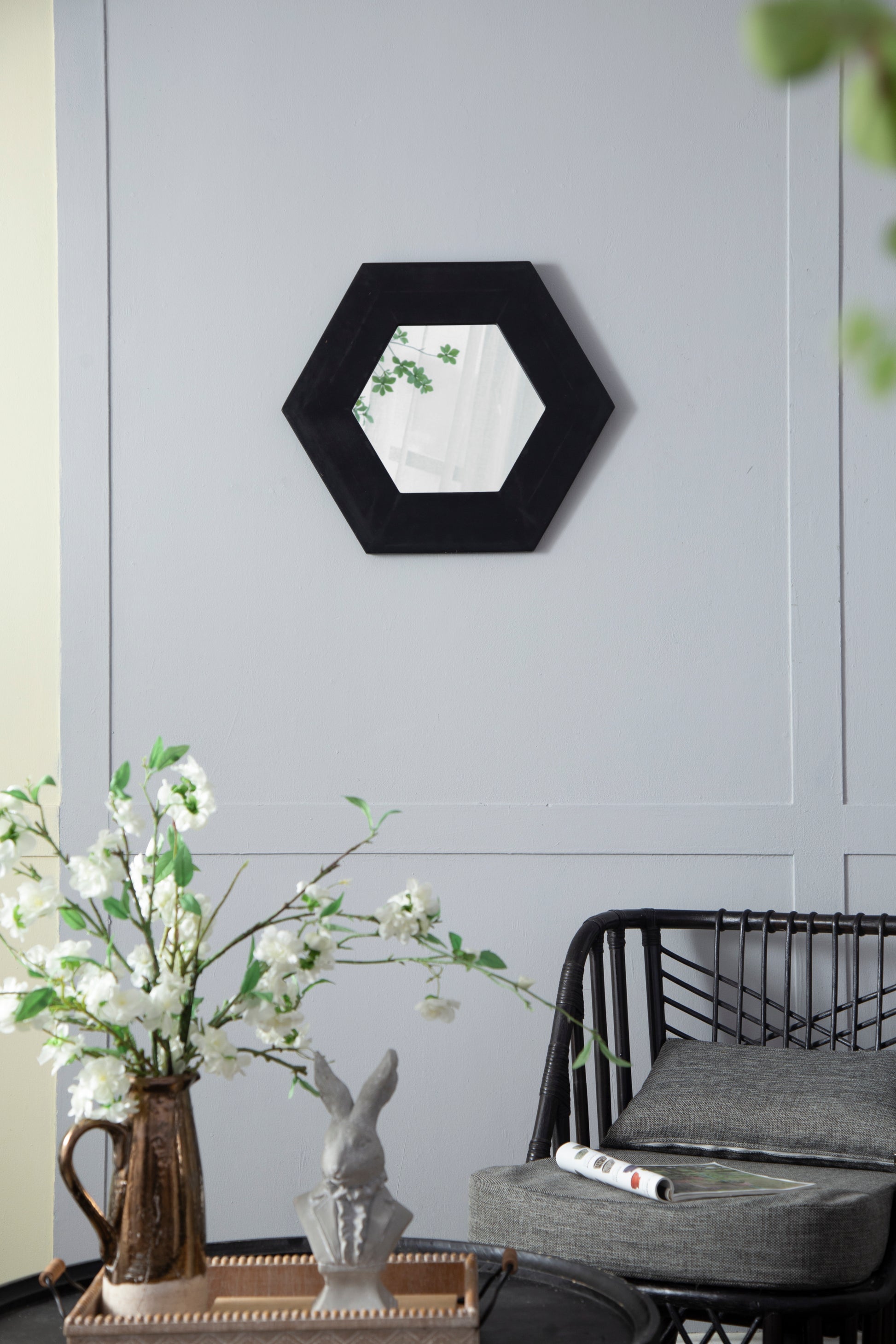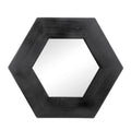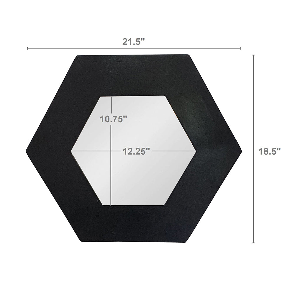 18.5" X 18.5" Hexagon Mirror With Solid Wood Frame, Wall Decor For Living Room Bathroom Hallway, Black Black Wood Glass